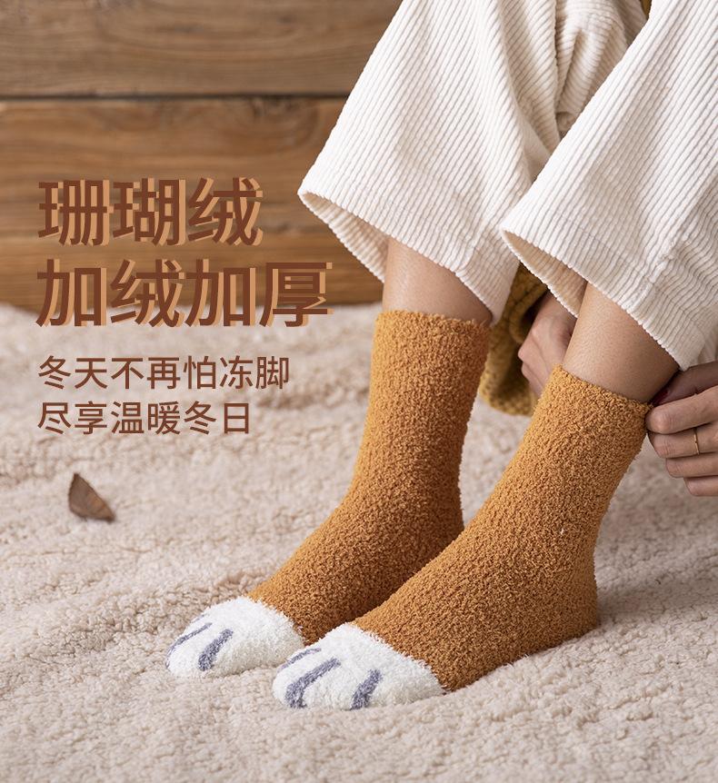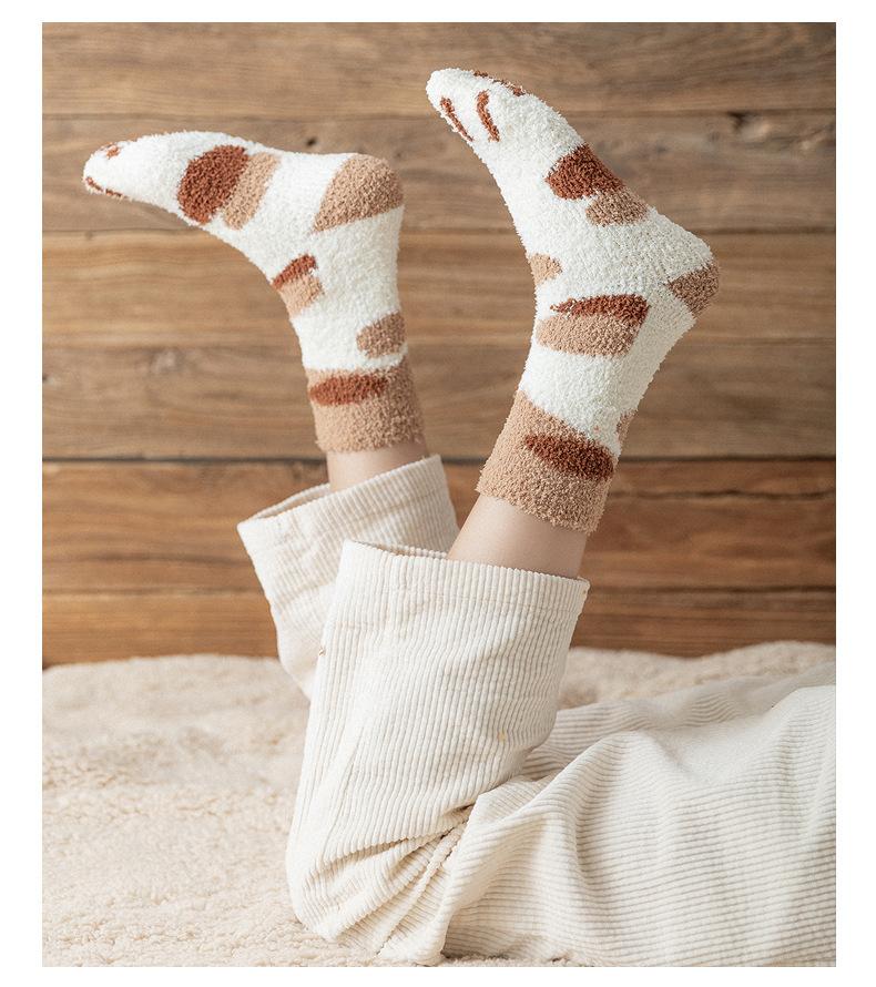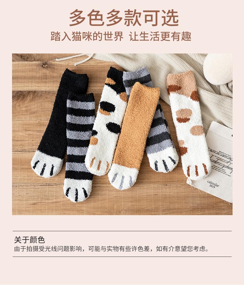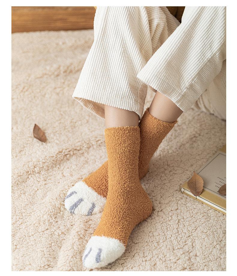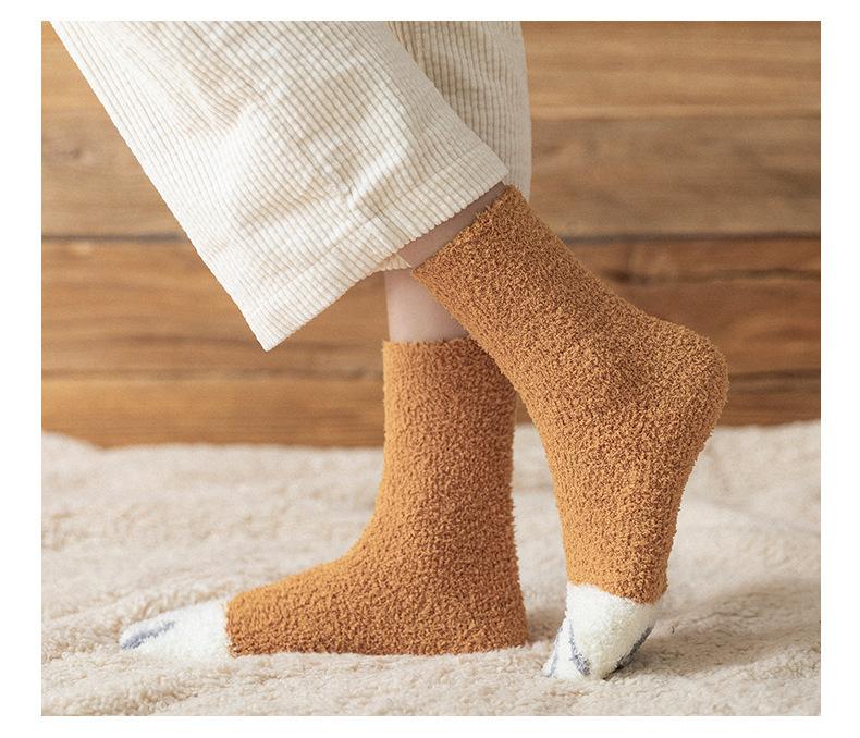 Calcetines de mujer de otoño e invierno con bonitos gatos, calcetines de lana coral, calcetines de luna, calcetines cálidos y gruesos para el suelo, calcetines de felpa para dormir en casa.