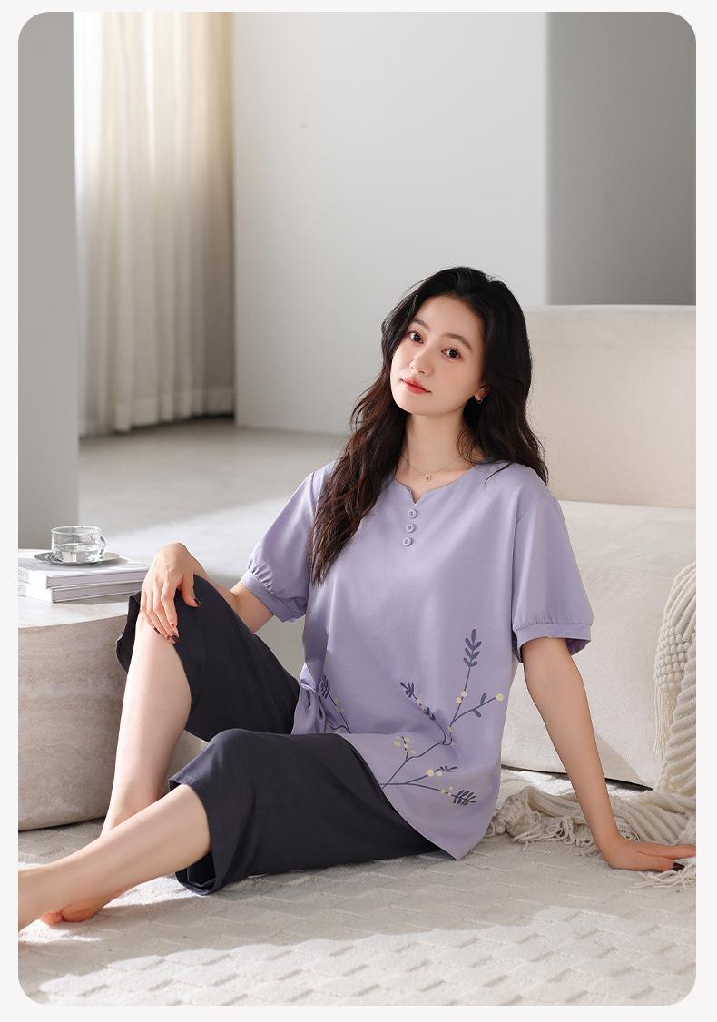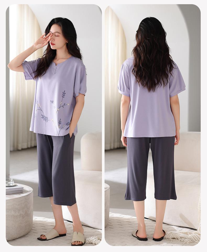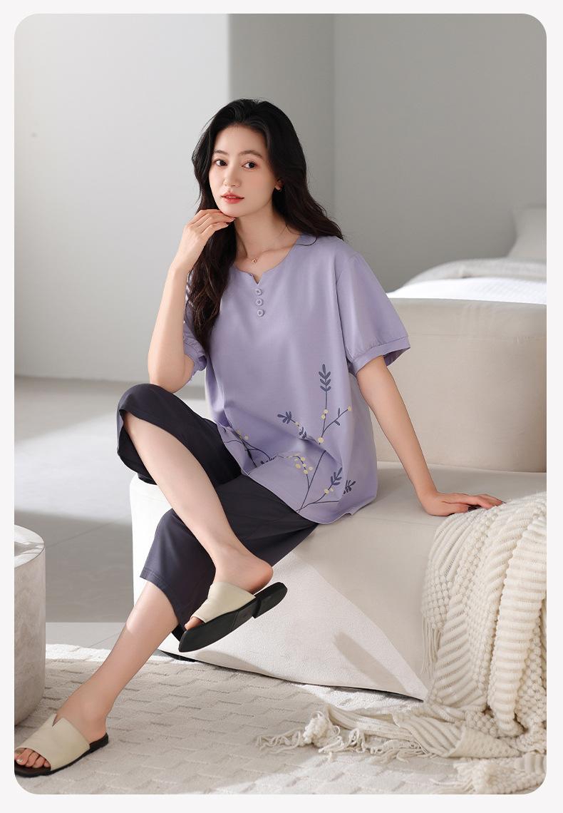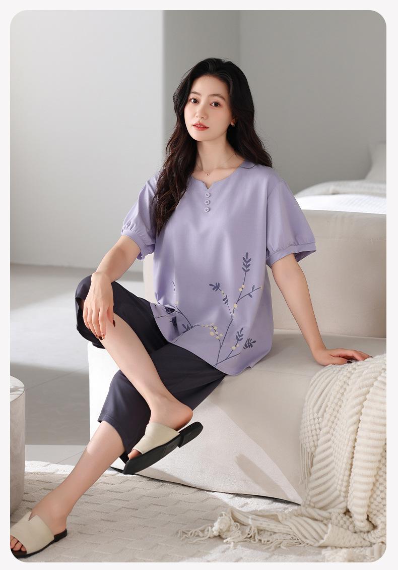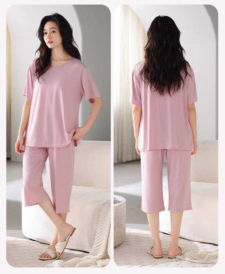 Pijama de Verano para Mujer Modal Manga Corta Pantalón Capri Traje Moda Casual Fresco Holgado Ropa para el Hogar con Almohadilla en el Pecho