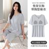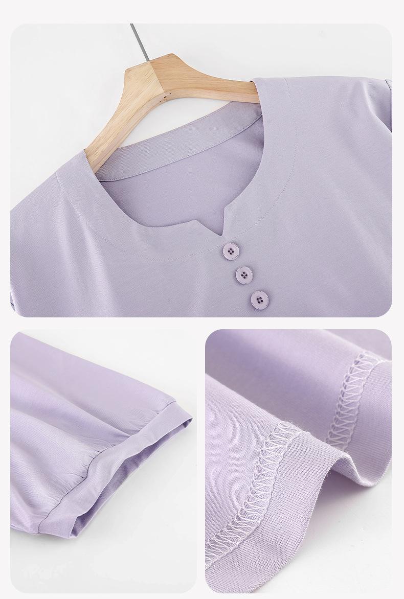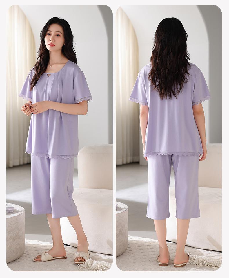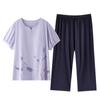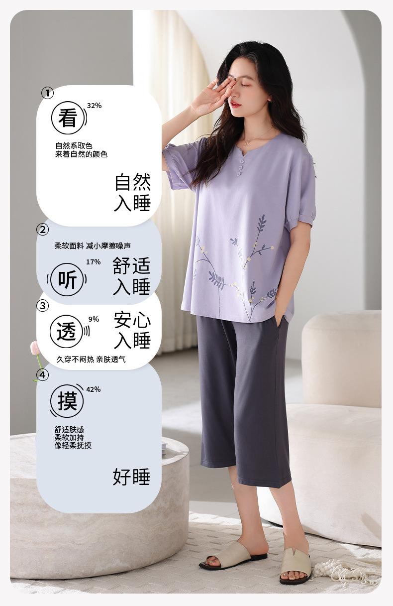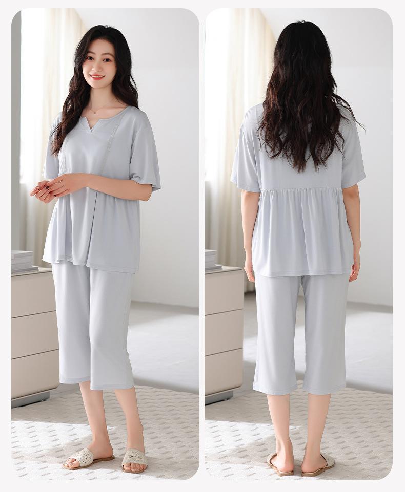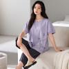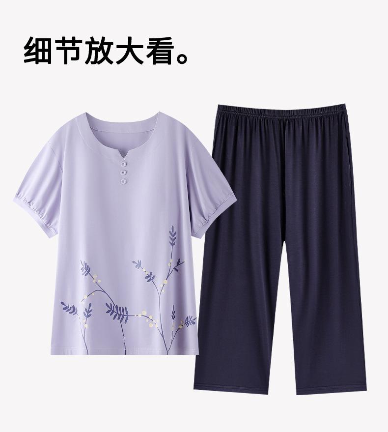 Pijama de Verano para Mujer Modal Manga Corta Pantalón Capri Traje Moda Casual Fresco Holgado Ropa para el Hogar con Almohadilla en el Pecho