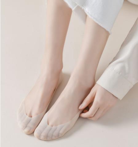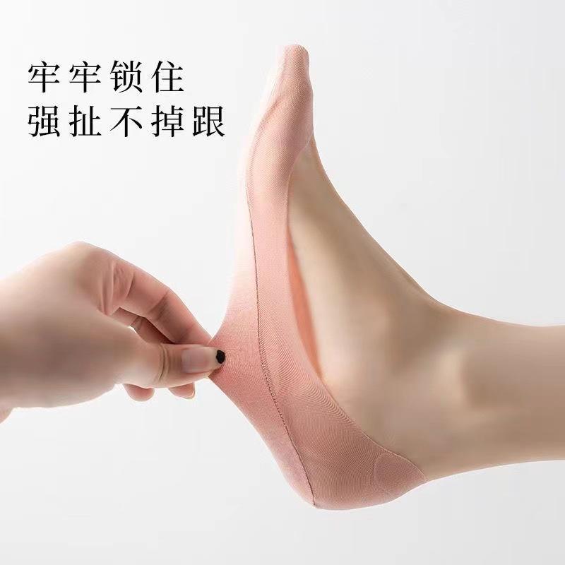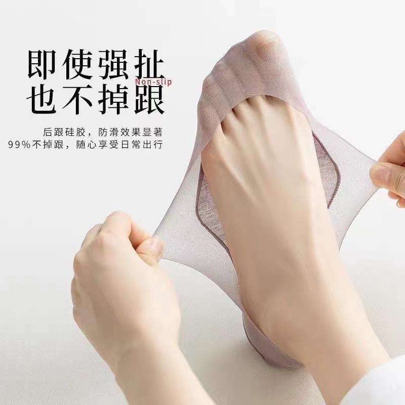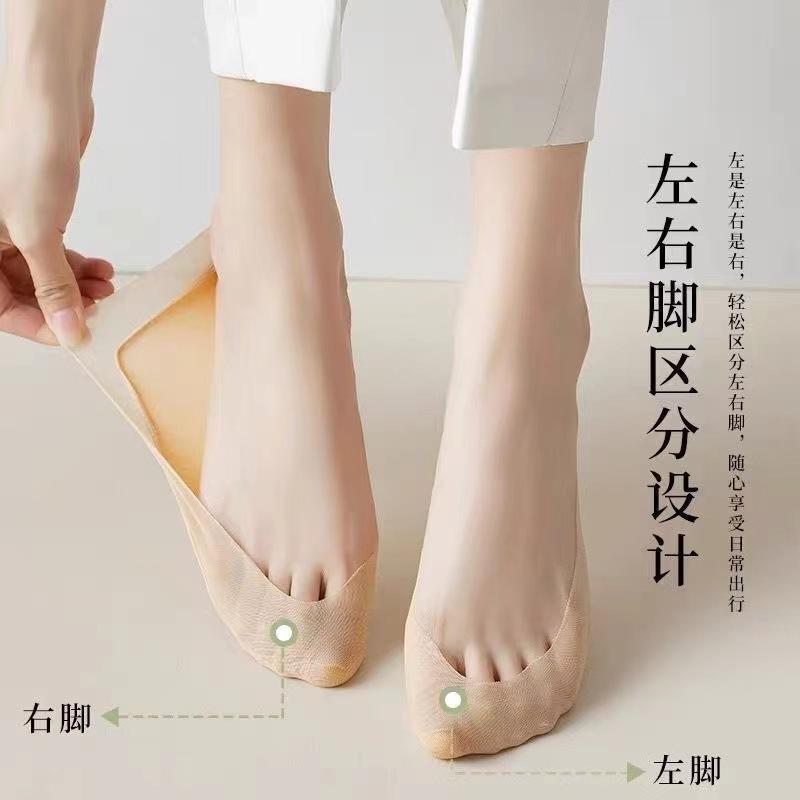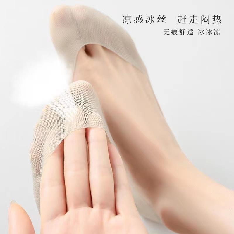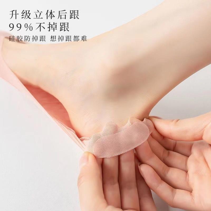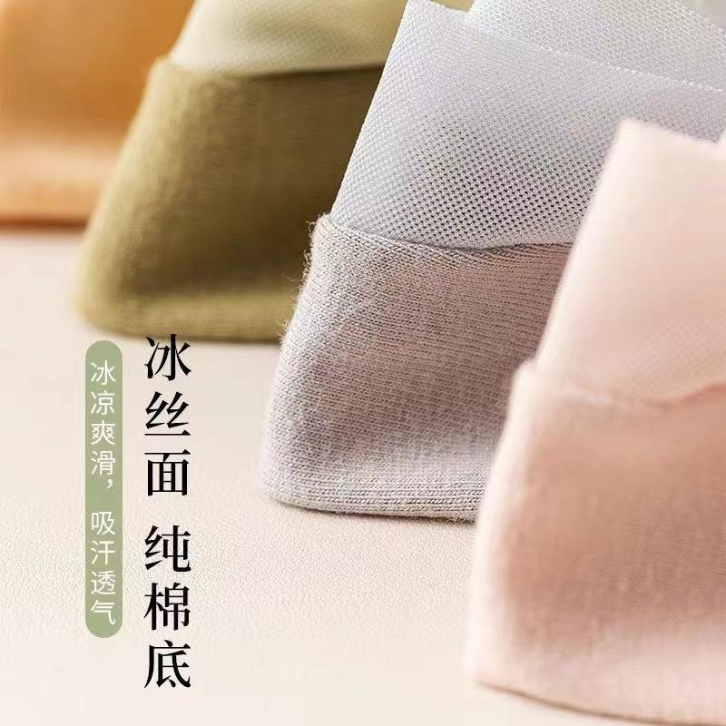 Calcetines Barco de Seda de Hielo para Mujer Verano Delgados Antideslizantes Algodón Fondo Tacones Altos Calcetines Invisibles Verano Malla Boca Baja Calcetines Cortos