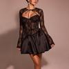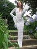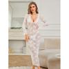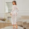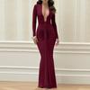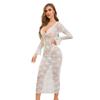 Amazon Europeo y Americano Nuevo Sexy Escote en V Profundo Patrón de Encaje Perspectiva Ajustado Manga Larga Estilo Urbano Vestido Largo Mujeres