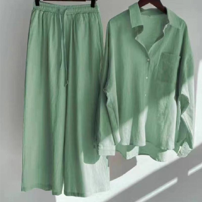 Compra 2025 Transfronterizo Amazon Mujer Vintage talla grande Algodón y Lino Camisa Pantalones Holgados Traje de dos piezas al por mayor en Joom.pro