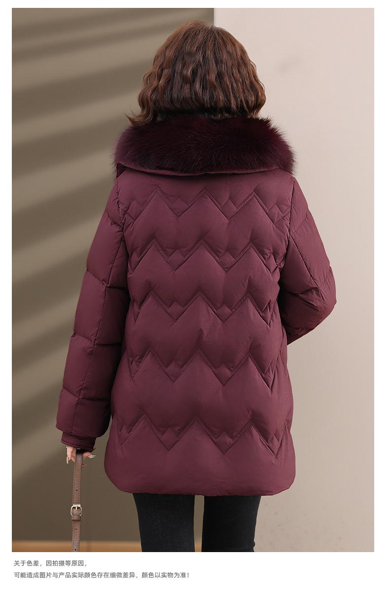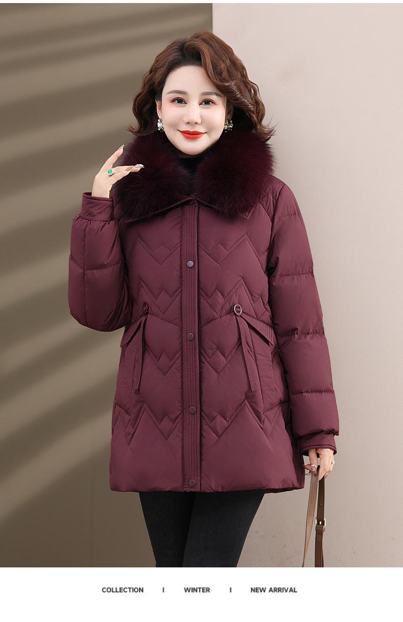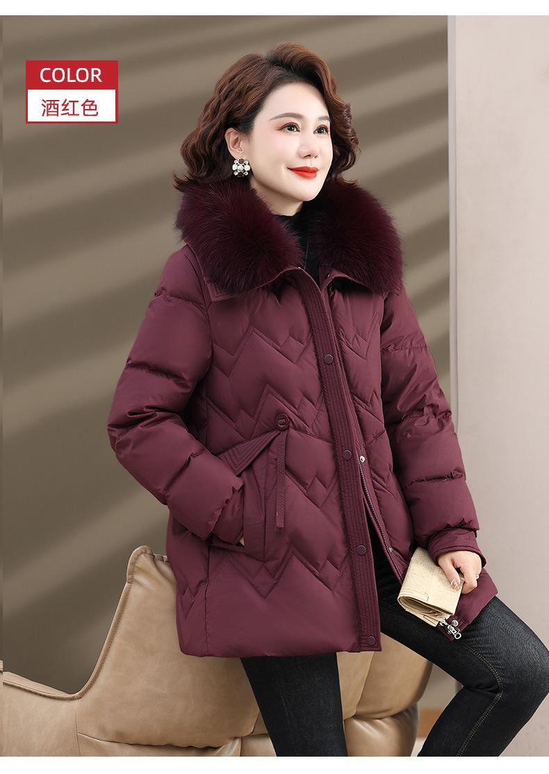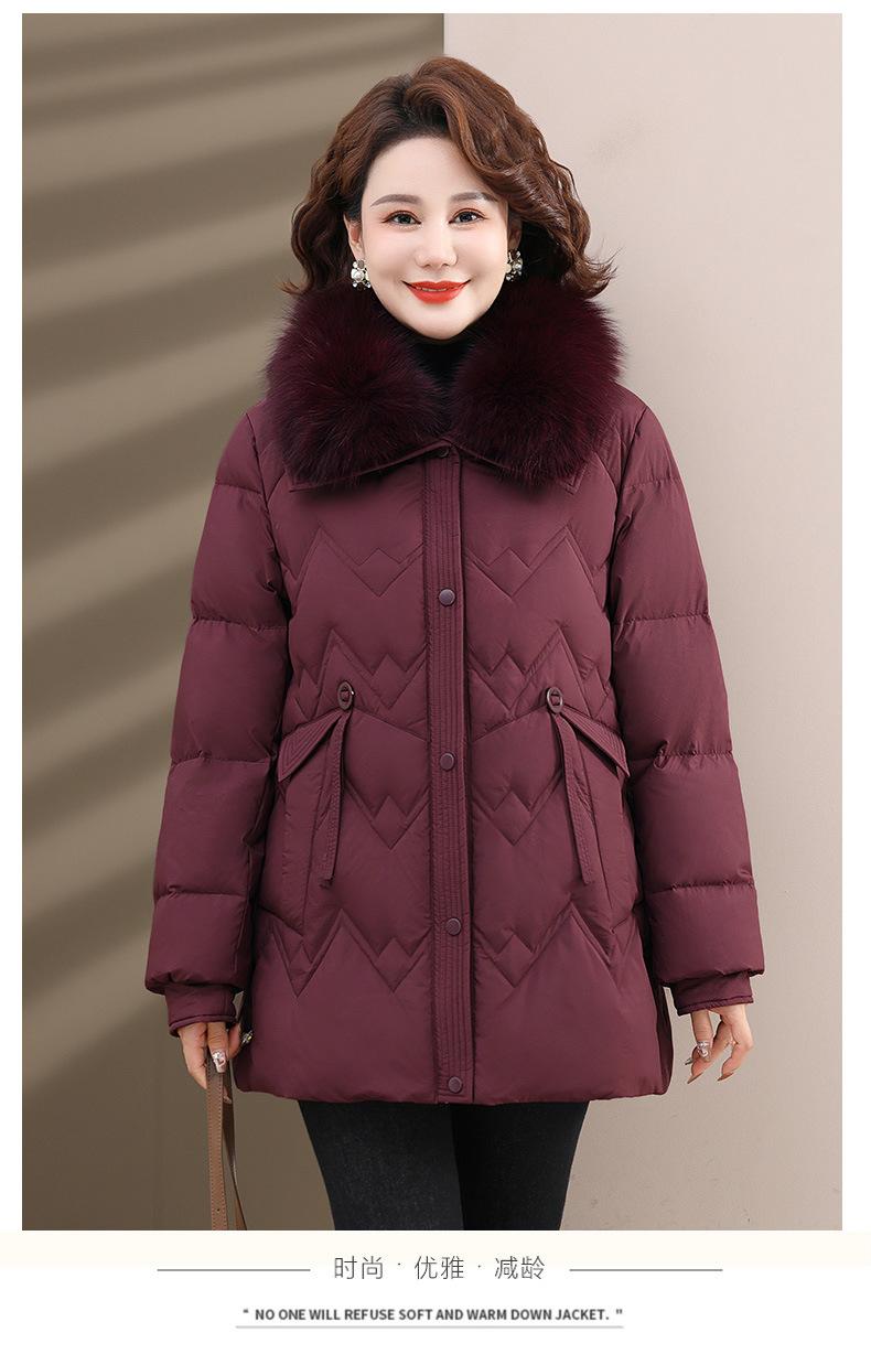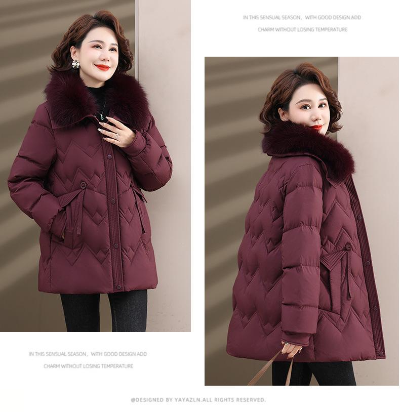 Chaqueta de plumón de invierno para madres, estilo occidental, para mujeres de mediana edad y mayores, abrigo de otoño e invierno, abrigo cálido con cuello de lana real y acolchado de algodón para mujeres.