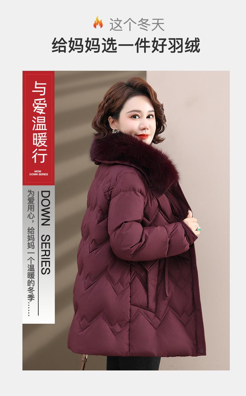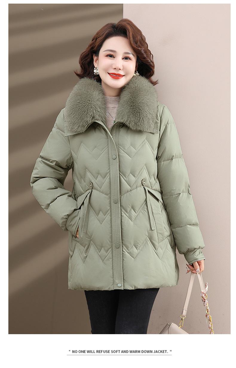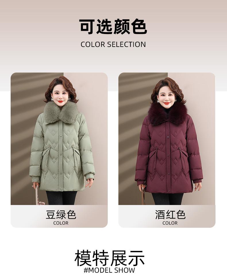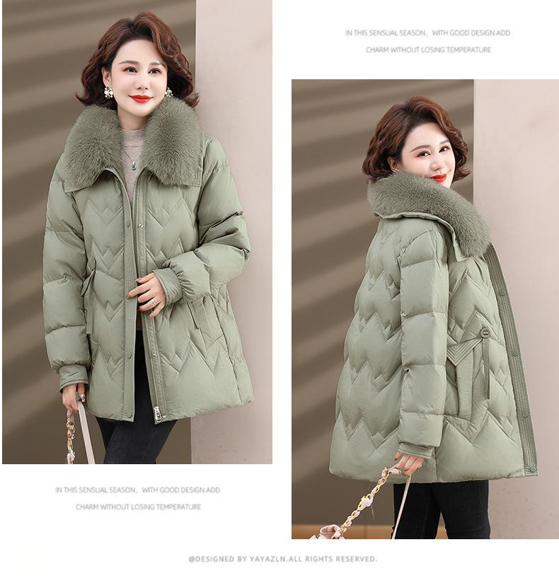 Chaqueta de plumón de invierno para madres, estilo occidental, para mujeres de mediana edad y mayores, abrigo de otoño e invierno, abrigo cálido con cuello de lana real y acolchado de algodón para mujeres.