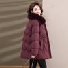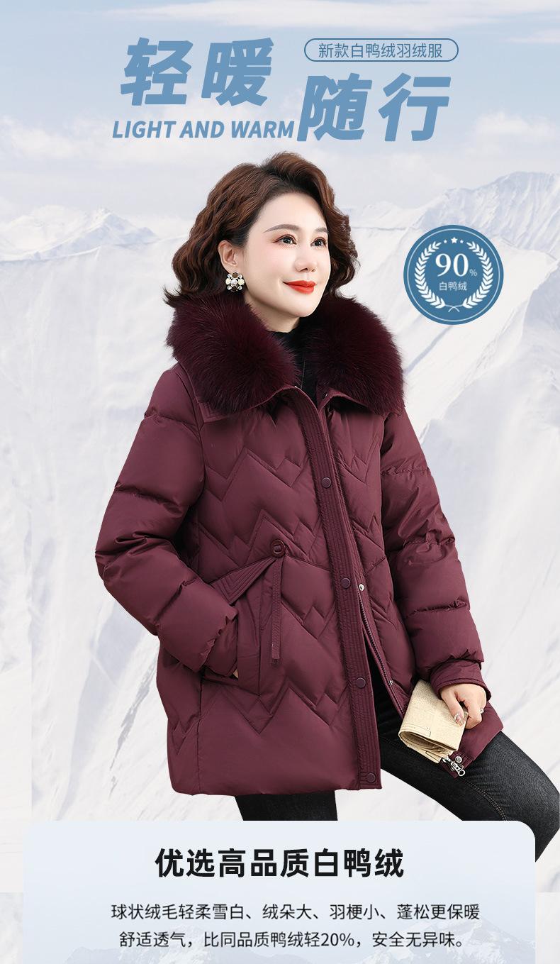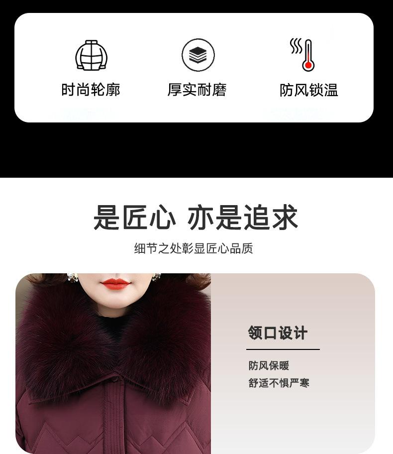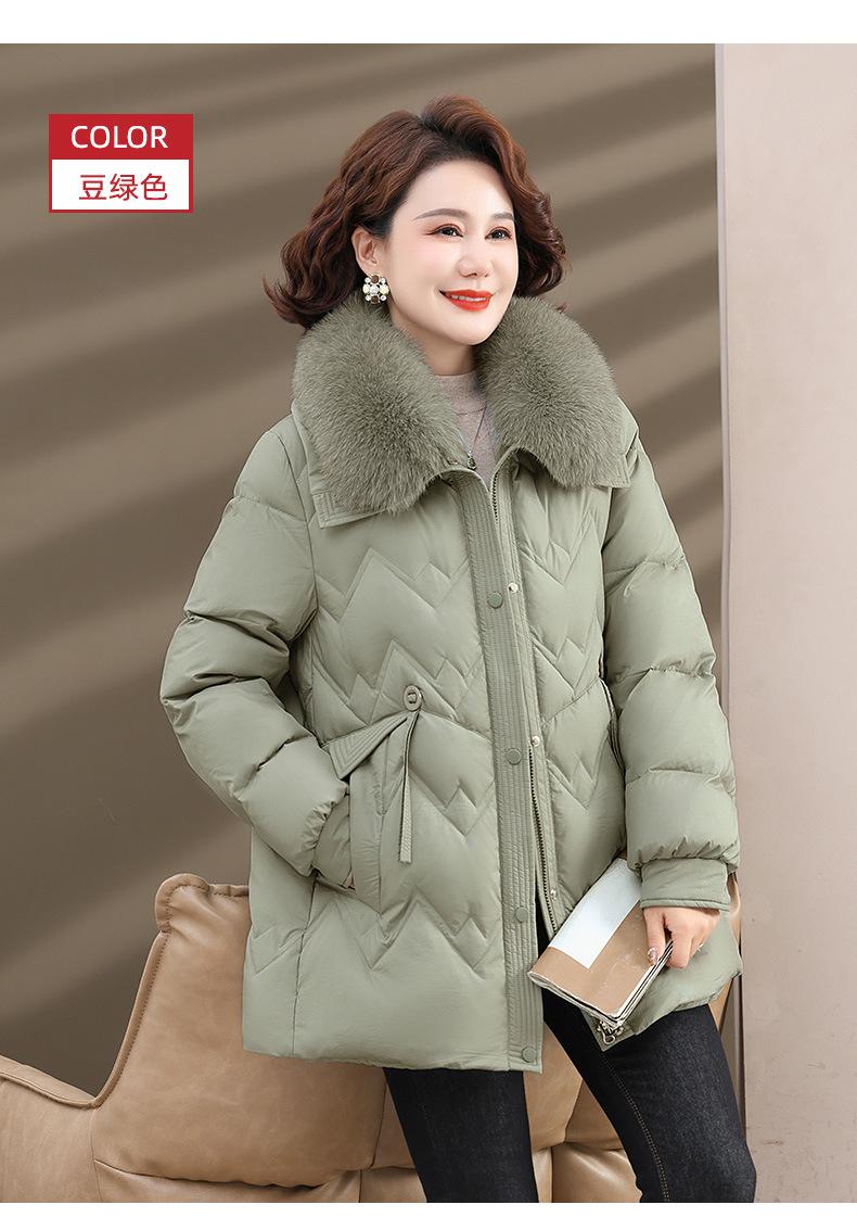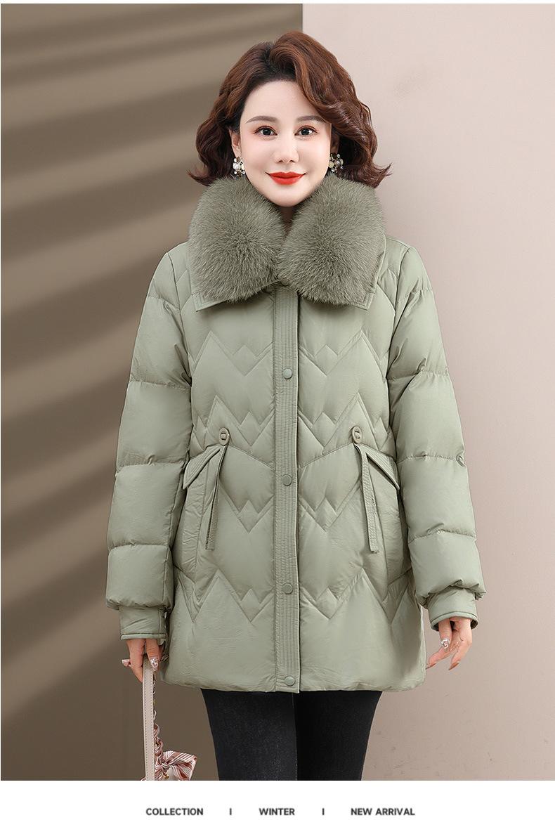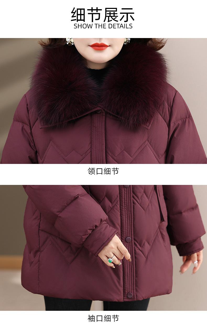 Chaqueta de plumón de invierno para madres, estilo occidental, para mujeres de mediana edad y mayores, abrigo de otoño e invierno, abrigo cálido con cuello de lana real y acolchado de algodón para mujeres.