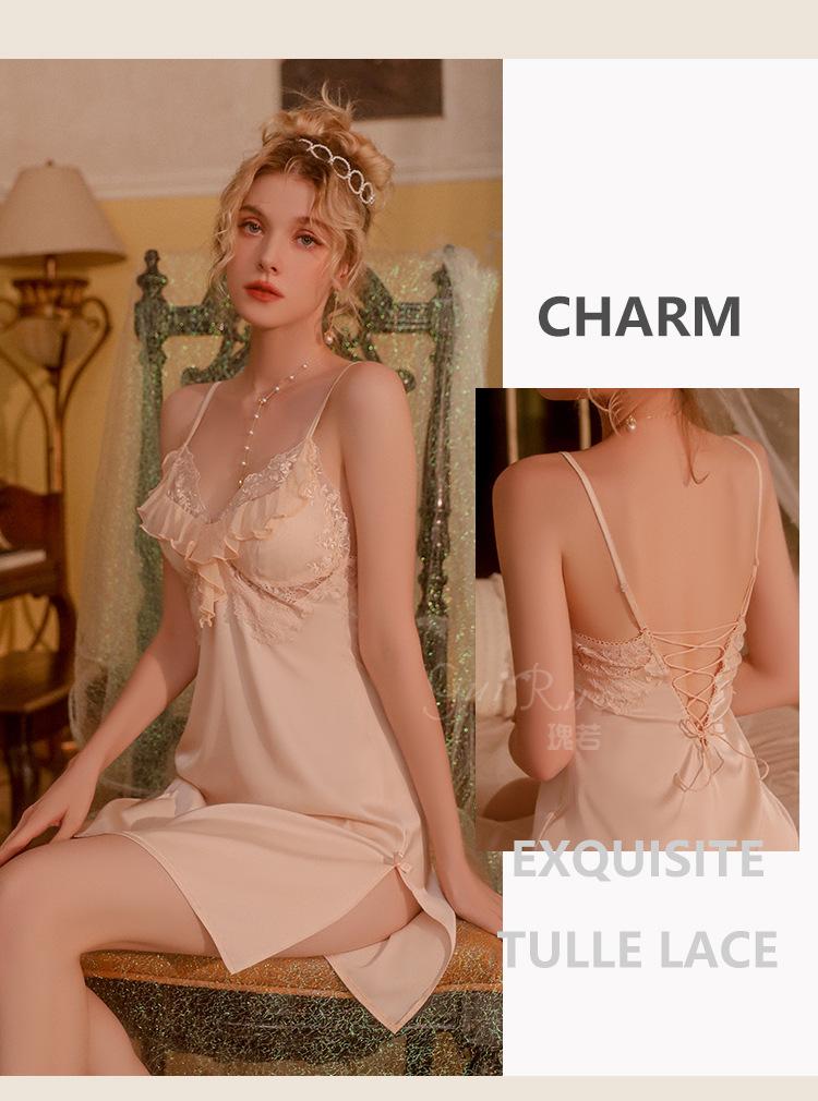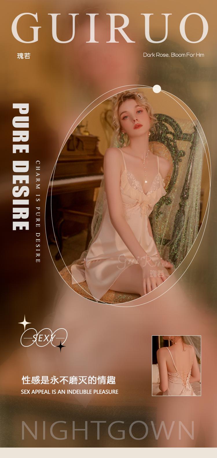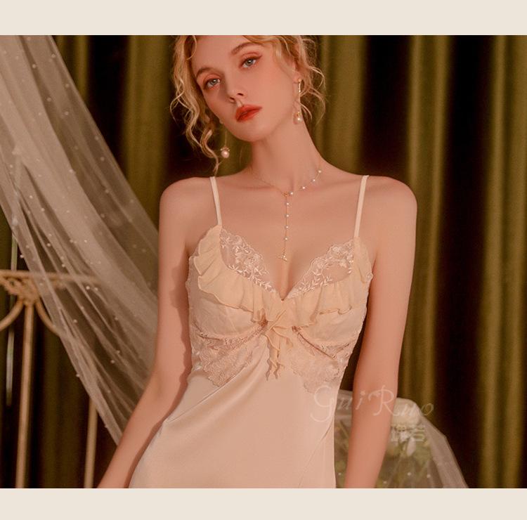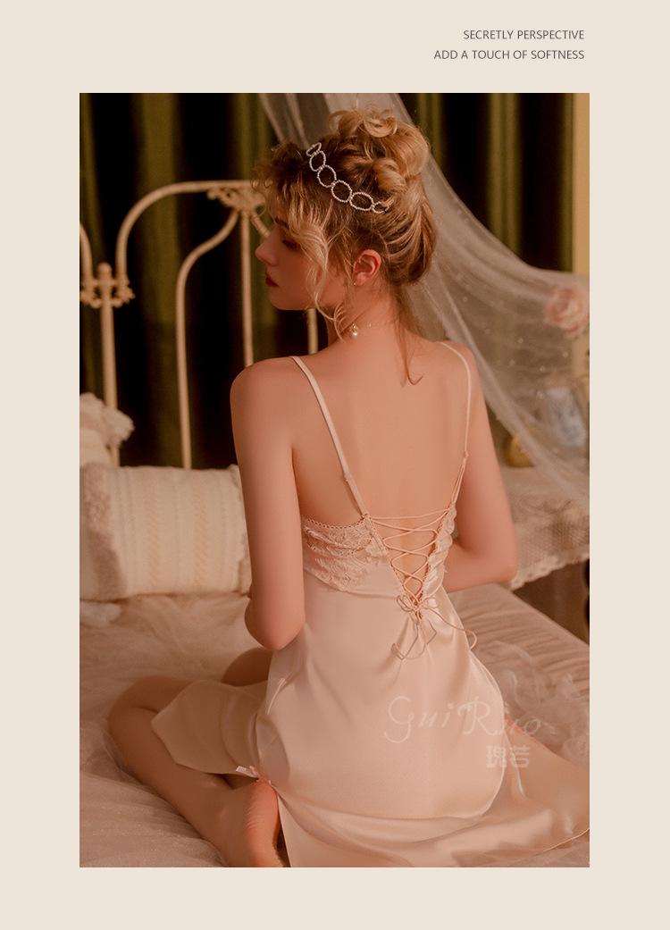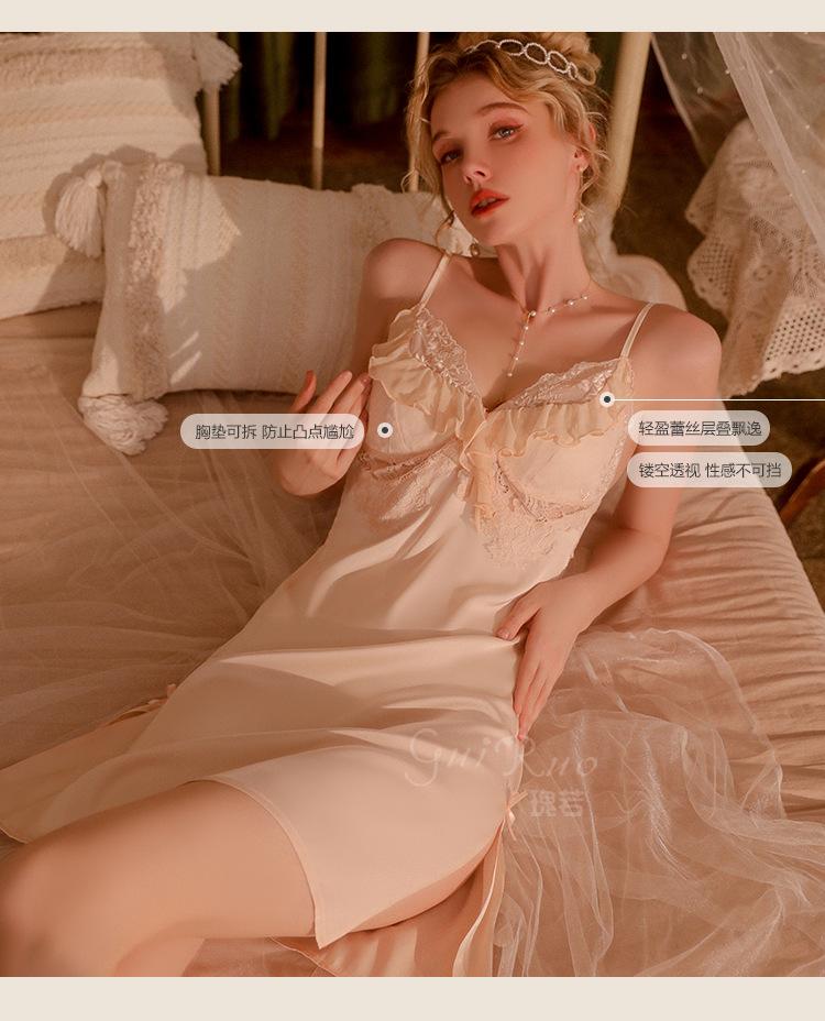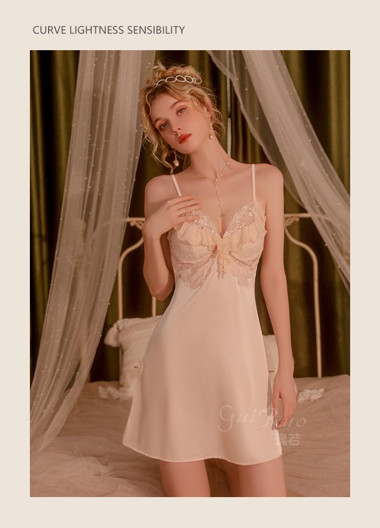 Guiruo - Camisón de satén con tirantes y escote en V profundo, con almohadillas para el pecho, estilo "Pure Desire", J2708