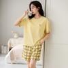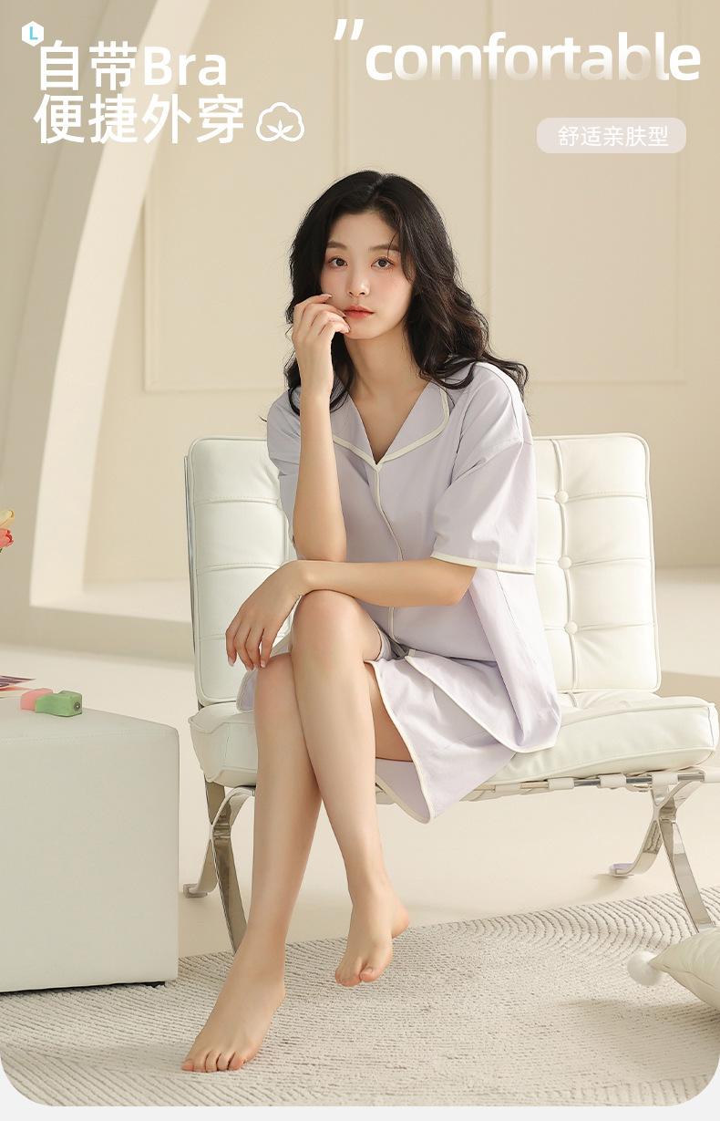 Pijamas de modal para mujer con almohadilla para el pecho, pantalones cortos de verano de manga corta, ropa para el hogar, pijamas de cuello redondo para mujer, traje informal de verano para el hogar
