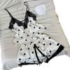 Pantalones cortos de dos piezas con escote en V y tirantes finos y bonitos de seda helada para primavera y verano.