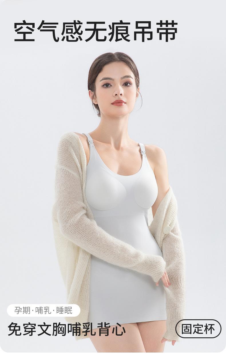 Chaleco de lactancia materna para embarazadas, talla grande, sin costuras, para lactancia posparto, tirantes largos, copa fija, ropa interior fina para lactancia.