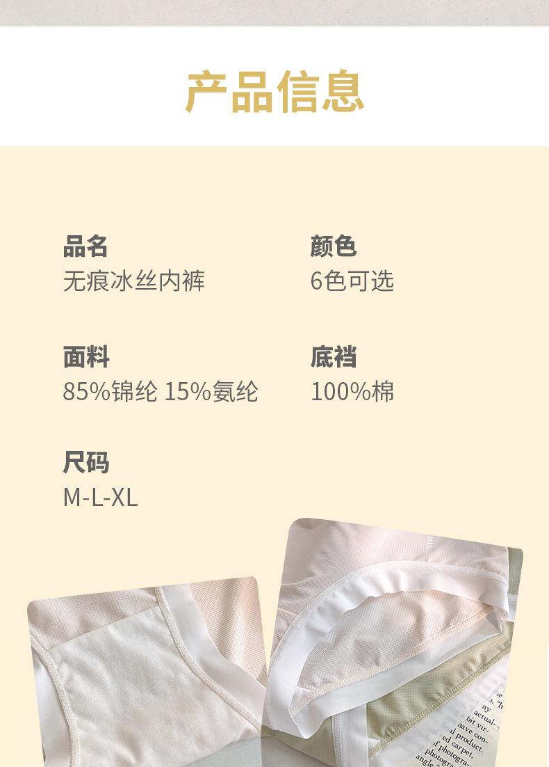 Ropa interior sin costuras de seda de hielo para niñas, ligera y nude, entrepierna de algodón puro antibacteriano 7A, cómoda, transpirable y bóxer de cintura media de alta elasticidad