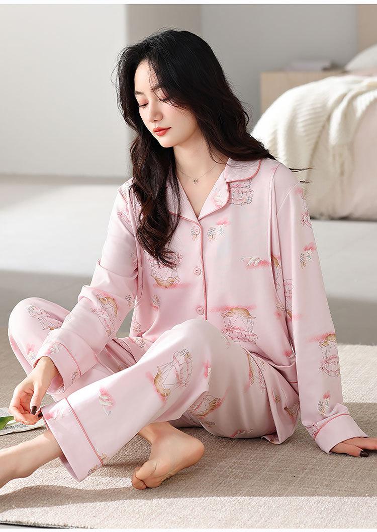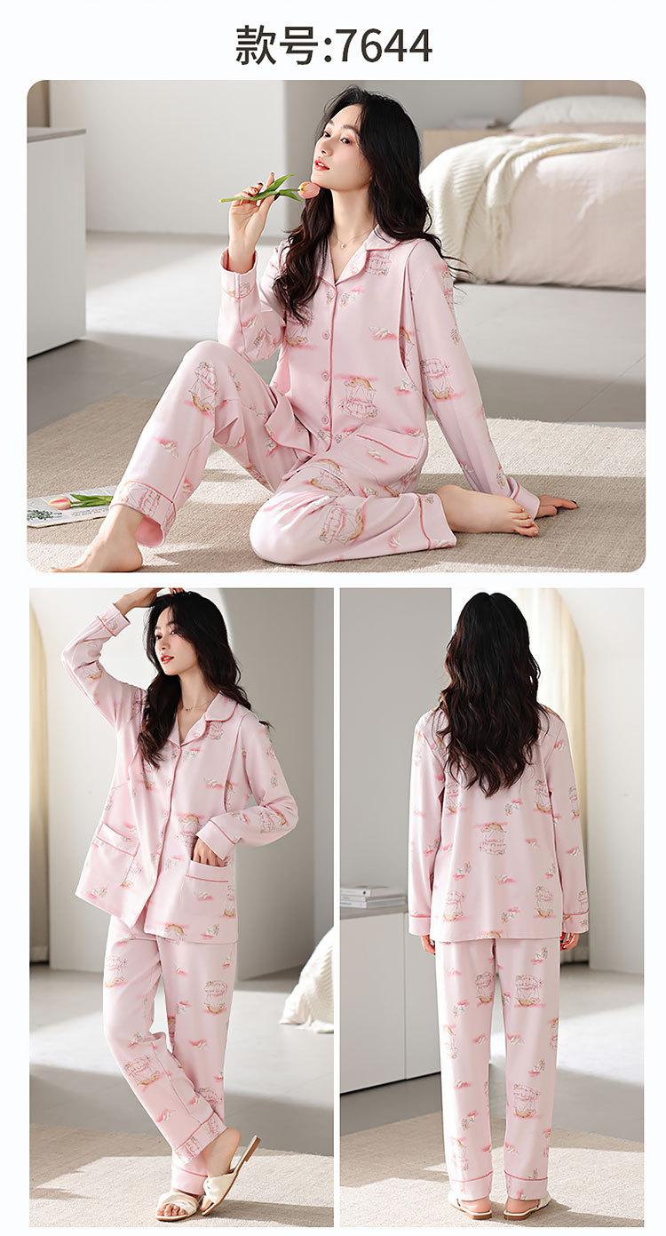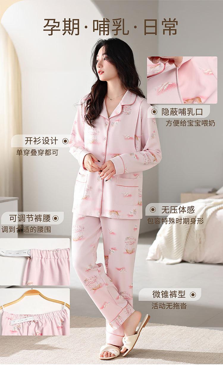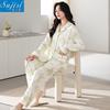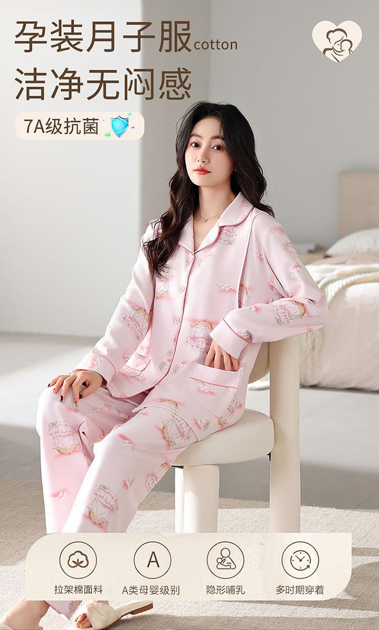 Primavera Nuevo Ropa de Verano para Mujer Luna Pijamas 7A Antibacteriano Rack Pull Cárdigan Fresco Pijamas para Lactancia Traje de Mujer