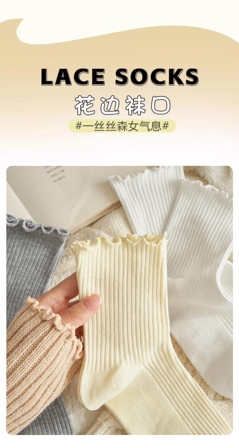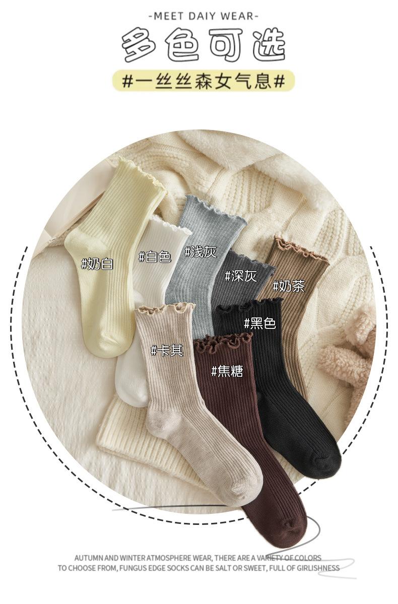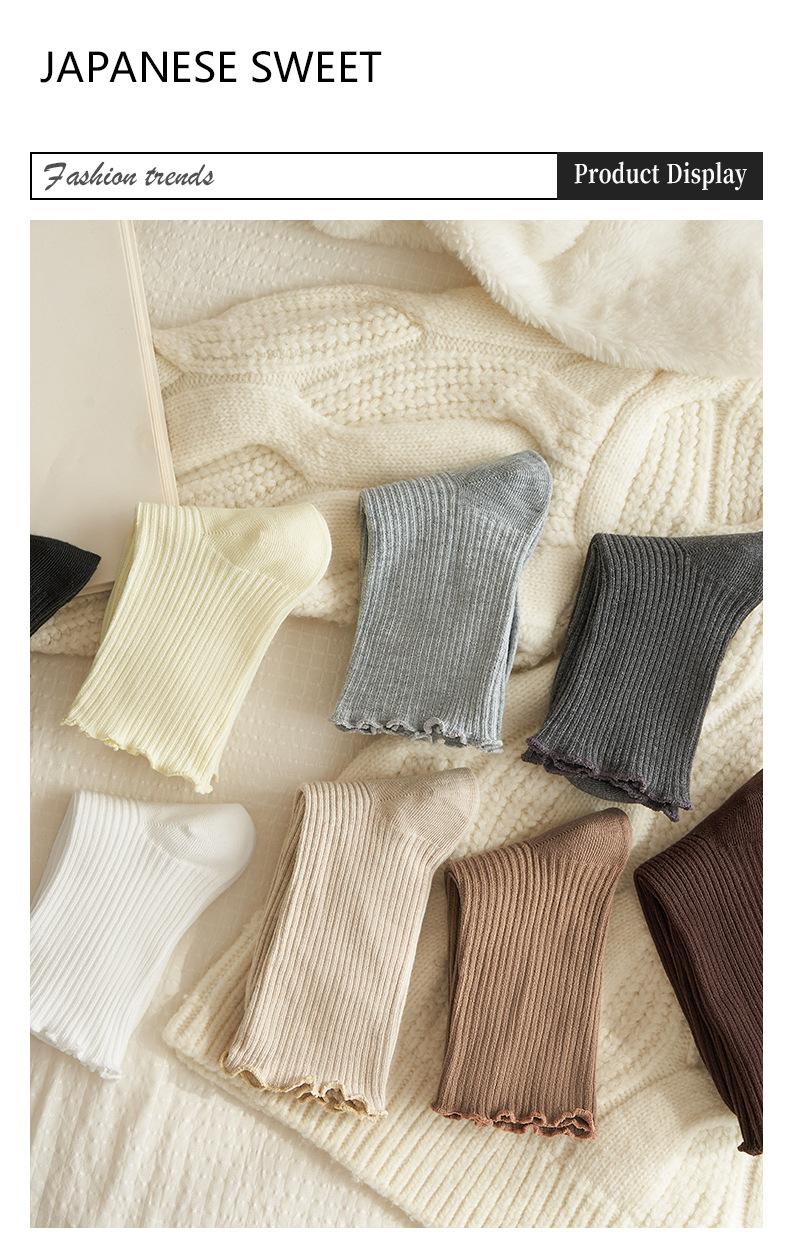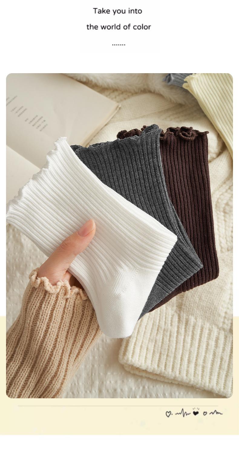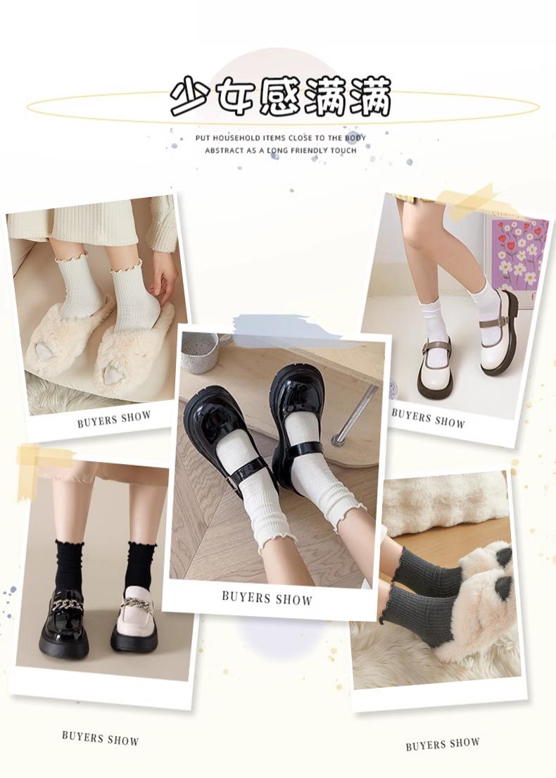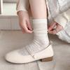 Calcetines de encaje para mujer, calcetines de tubo medio, primavera y otoño, calcetines apilados en blanco y negro con borde de oreja y zapatos pequeños de cuero, calcetines de mujer de color liso.