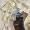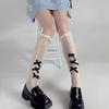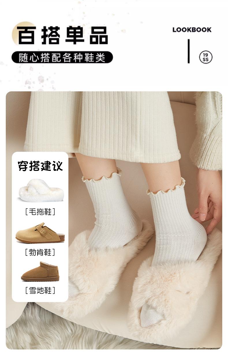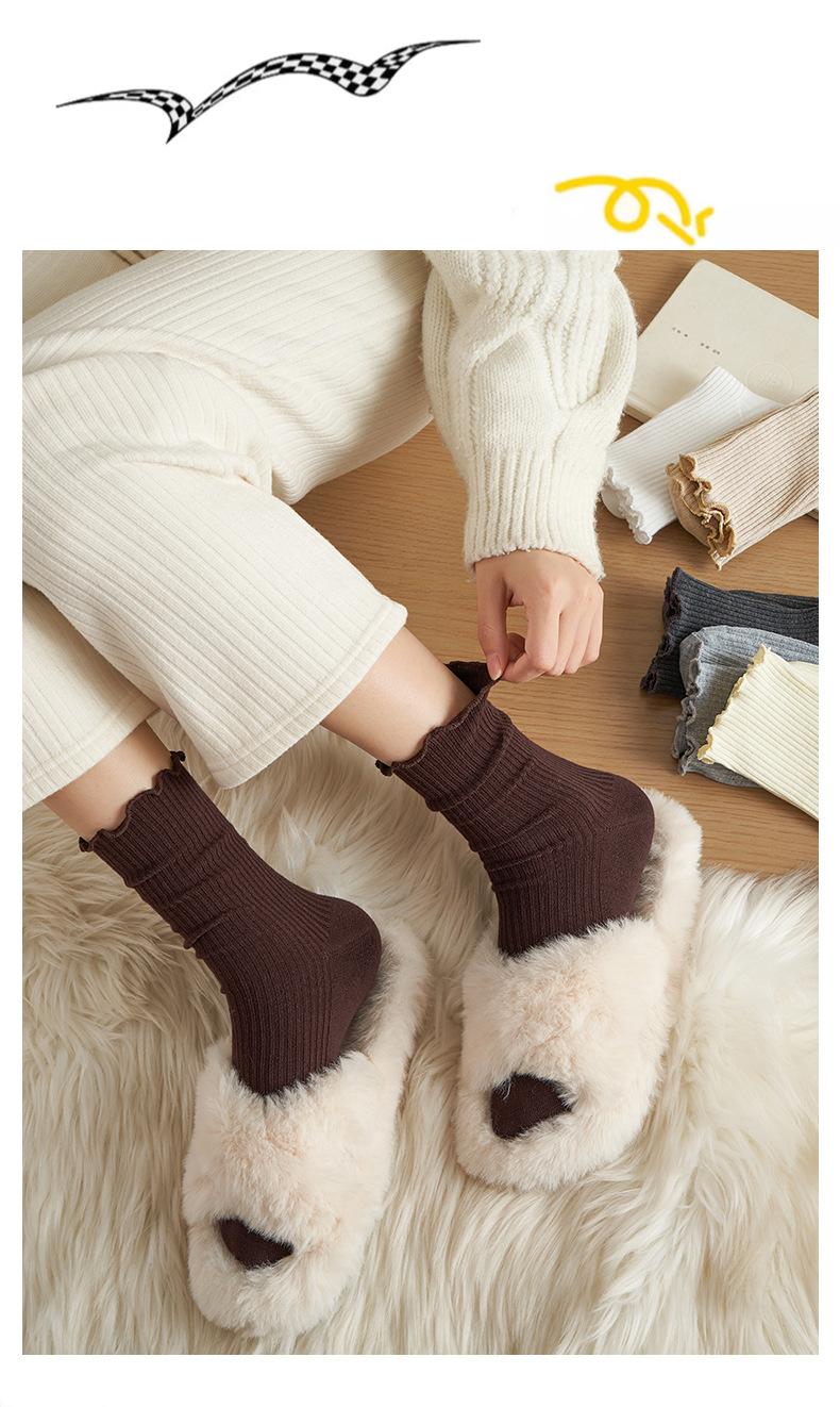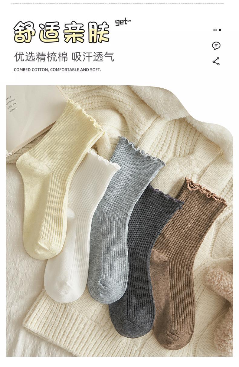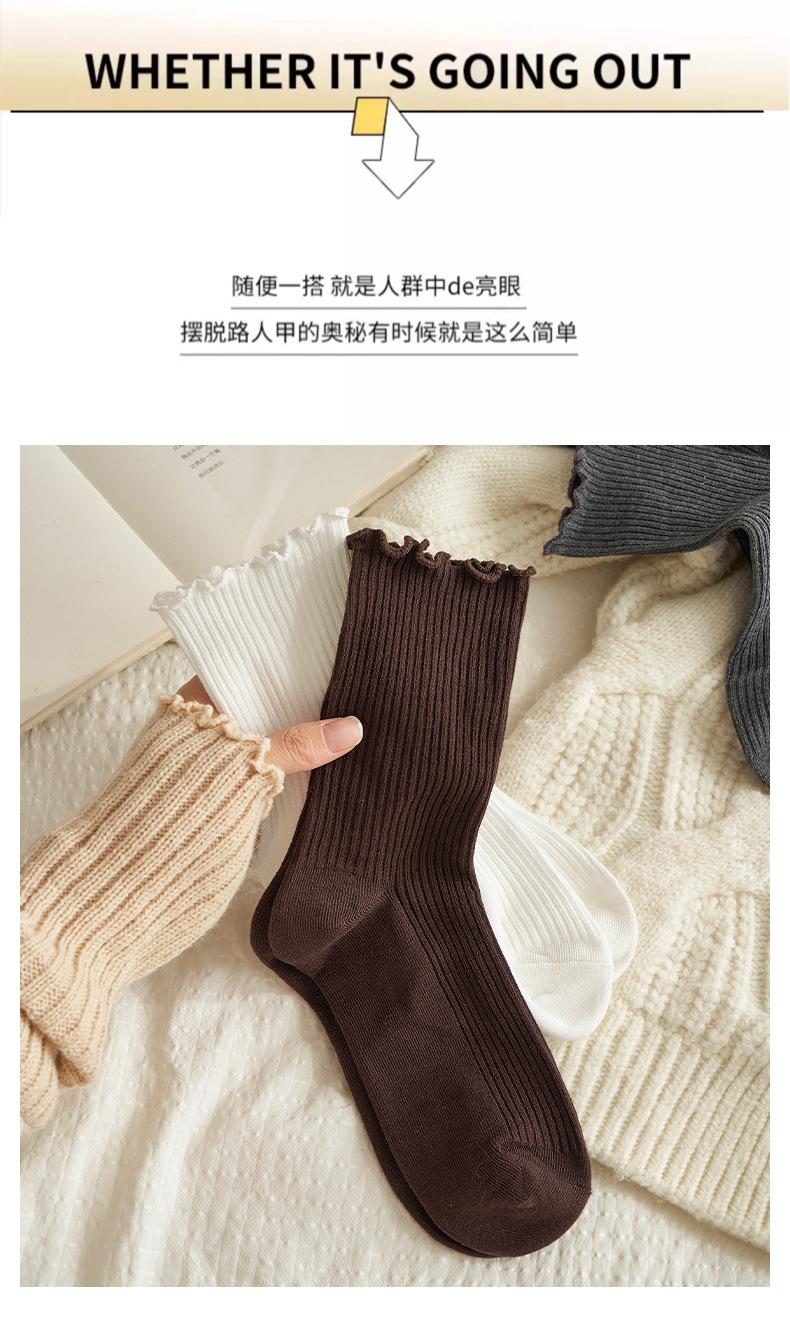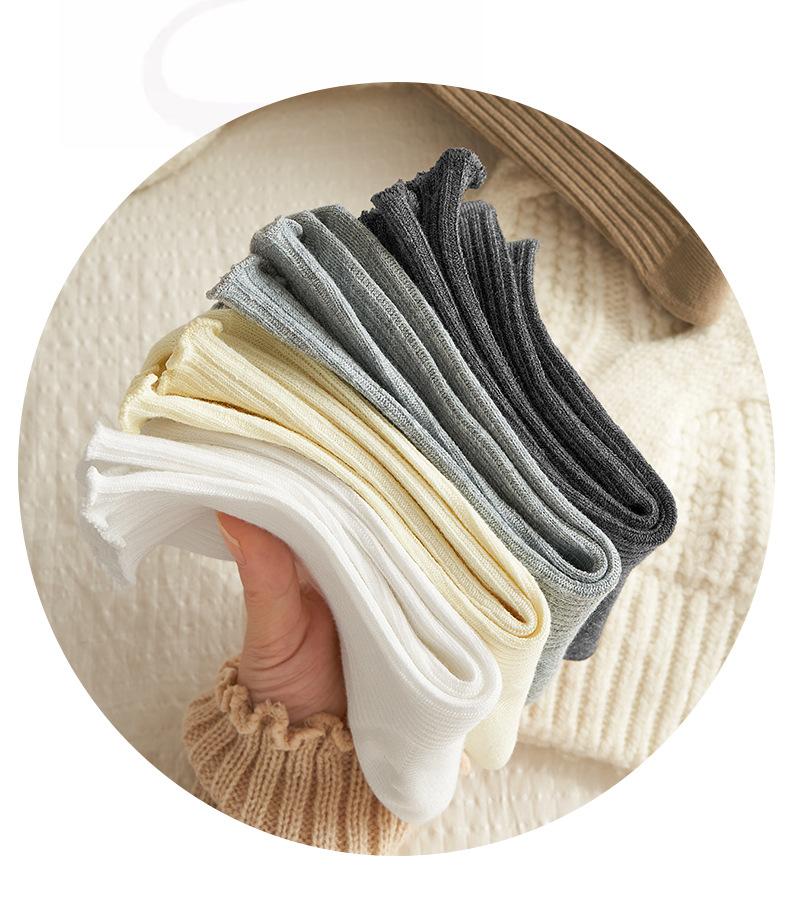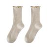 Calcetines de encaje para mujer, calcetines de tubo medio, primavera y otoño, calcetines apilados en blanco y negro con borde de oreja y zapatos pequeños de cuero, calcetines de mujer de color liso.