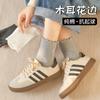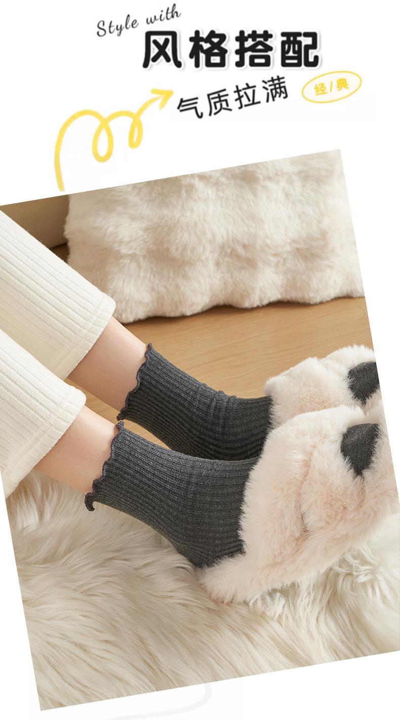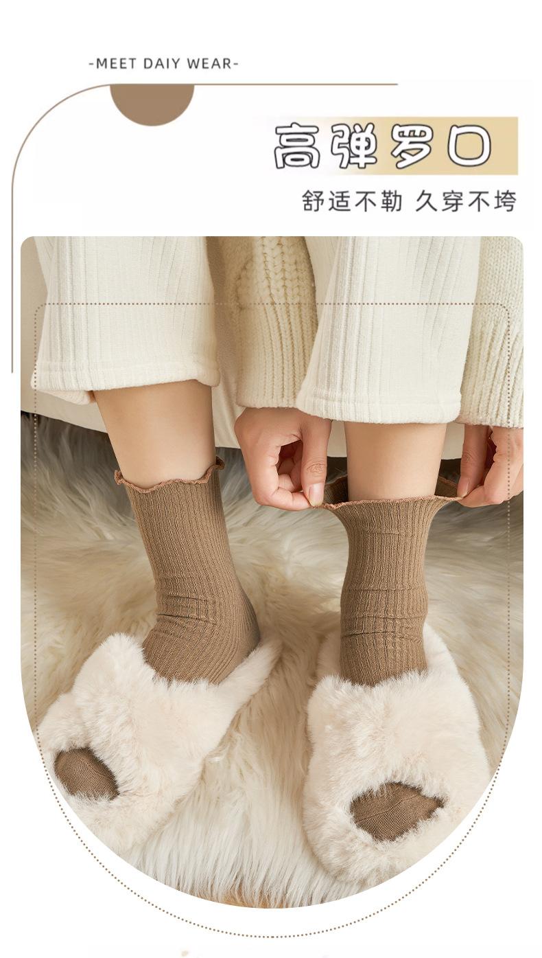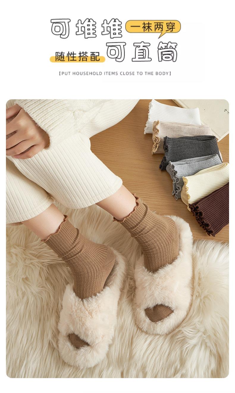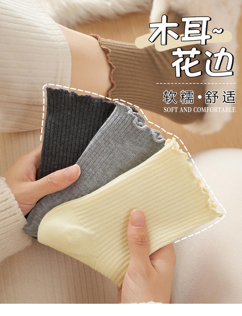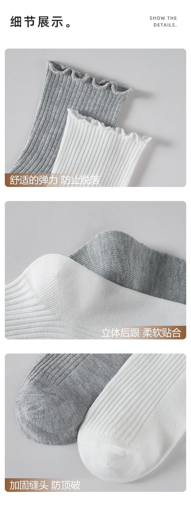 Calcetines de encaje para mujer, calcetines de tubo medio, primavera y otoño, calcetines apilados en blanco y negro con borde de oreja y zapatos pequeños de cuero, calcetines de mujer de color liso.