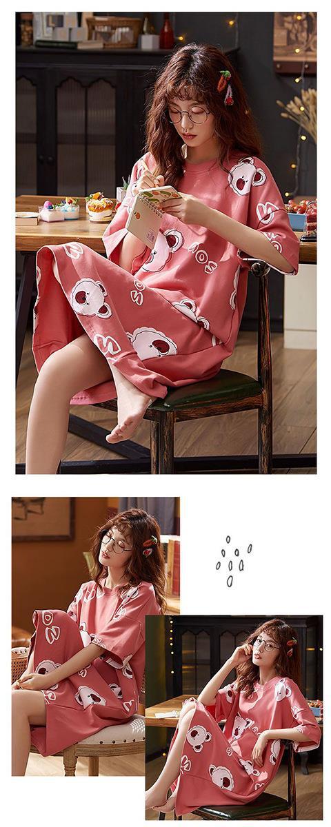 Pijama Nuevo para Mujer Verano Manga Corta Algodón Nube Estilo K Lindo Dibujo Animado Casual Ropa de Casa Conjunto para Estudiante