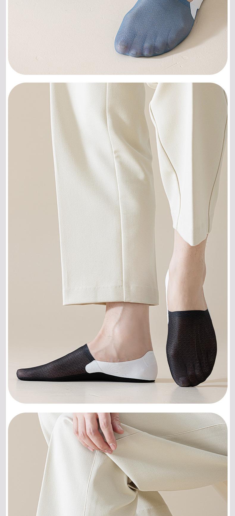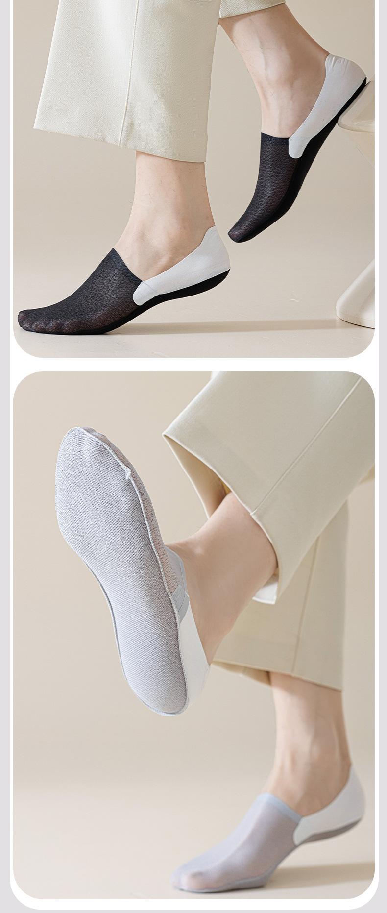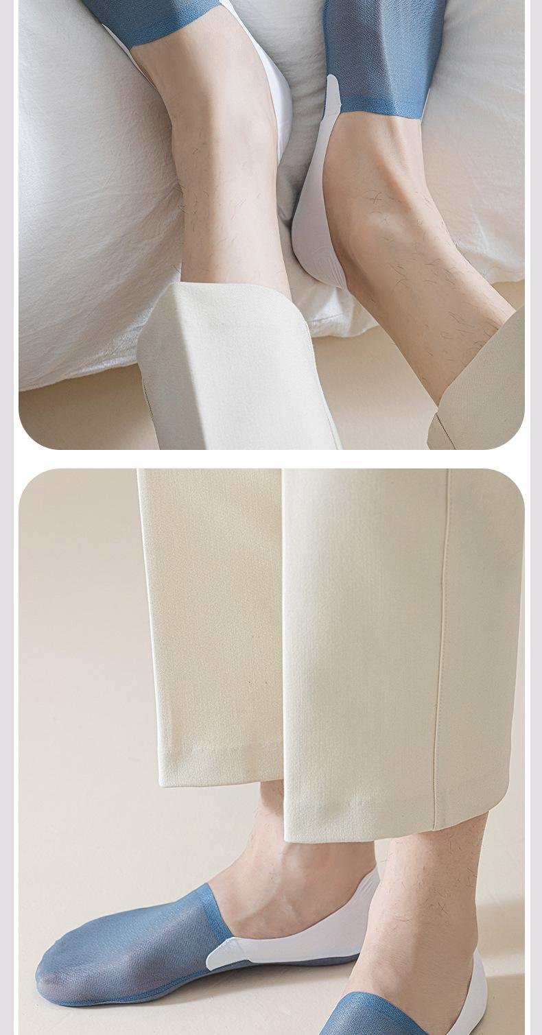 Calcetines de verano para hombre, calcetines náuticos finos de malla transpirable de verano, de seda de hielo, antideslizantes, a prueba de talón, de boca baja, invisibles, de algodón de color sólido.