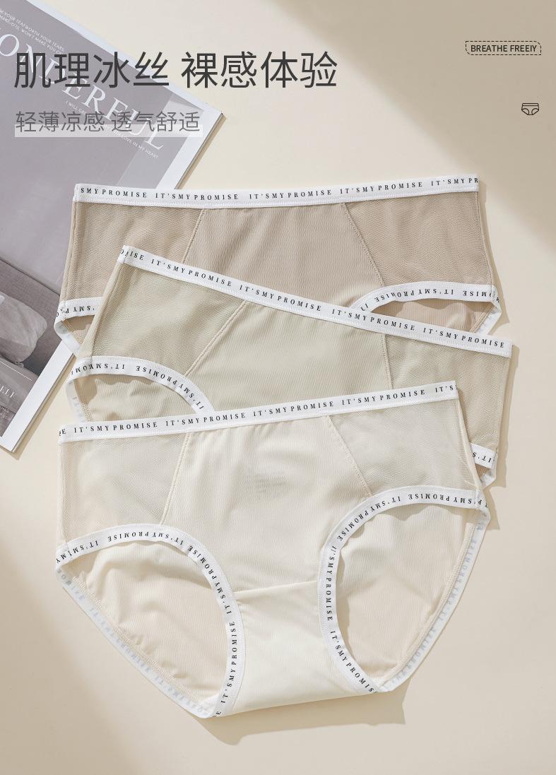 Ropa interior de malla de seda de hielo sin costuras para mujer, entrepierna antibacteriana de algodón puro, estilo para niñas, calzones sexys de talle medio