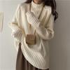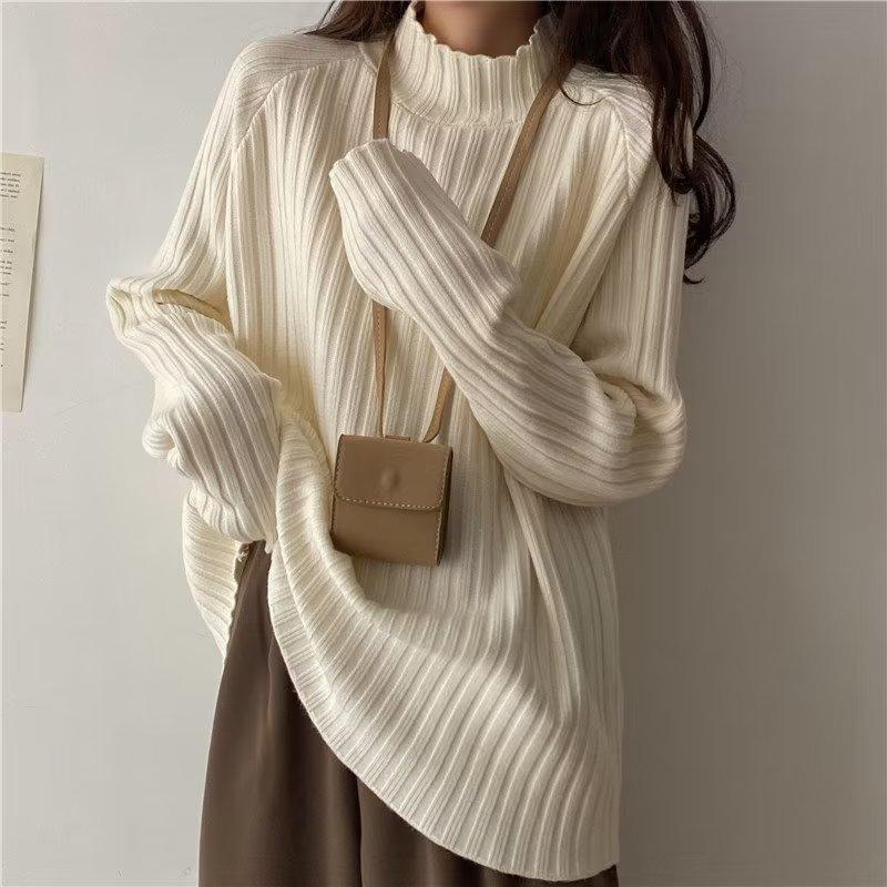 Suéter de cuello alto medio para mujer otoño e invierno estilo coreano holgado camisa base interior versátil punto top de manga larga