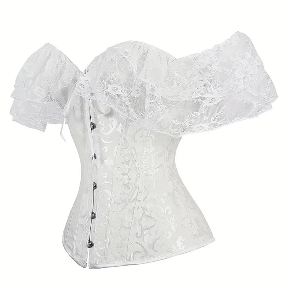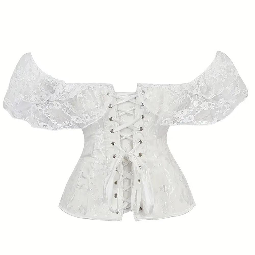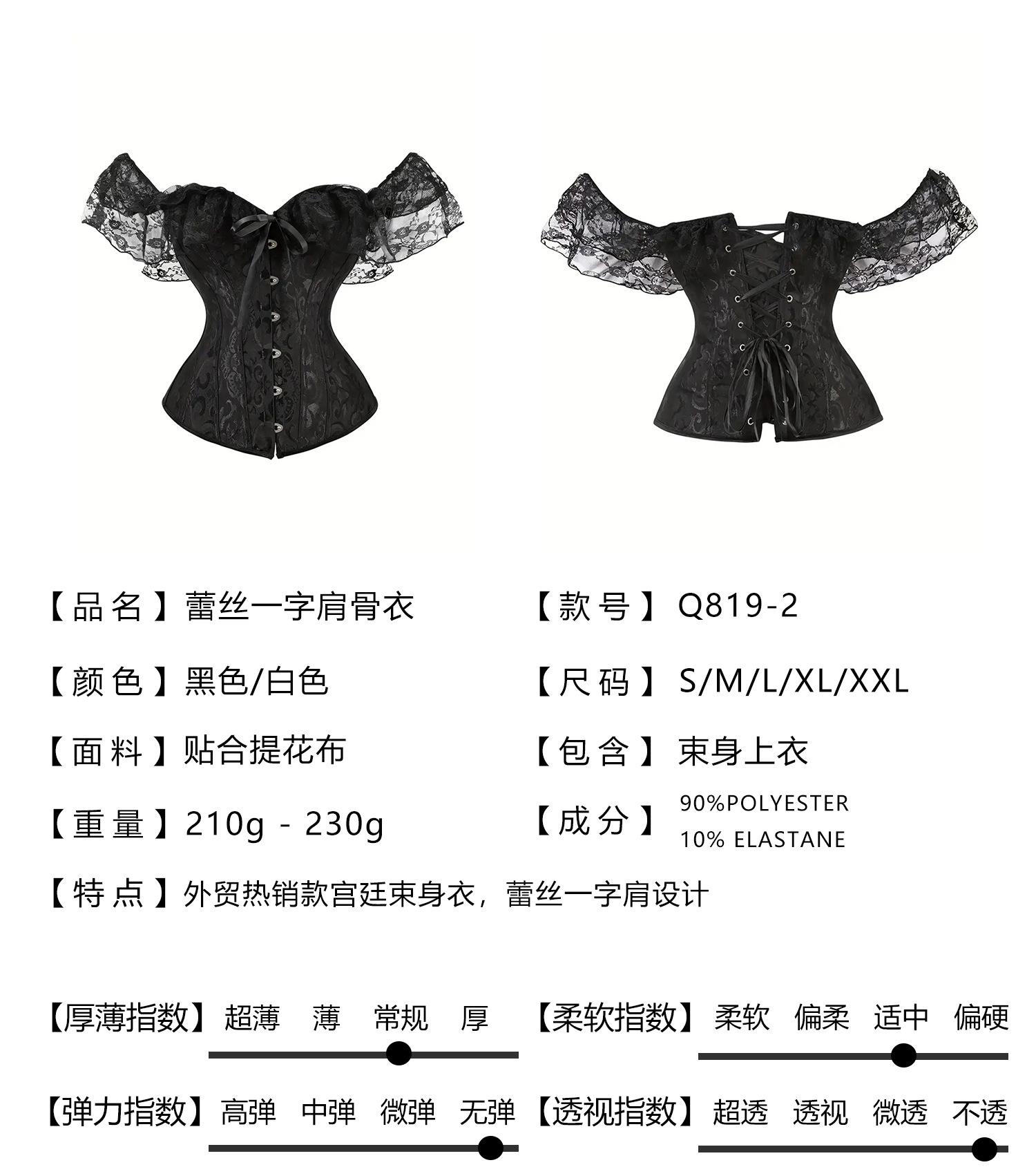Corsé cruzado, corsé de espiga, encaje con hombros descubiertos, palacio, top moldeador vintage, abdomen ajustado, chaqueta ajustada con hueso.