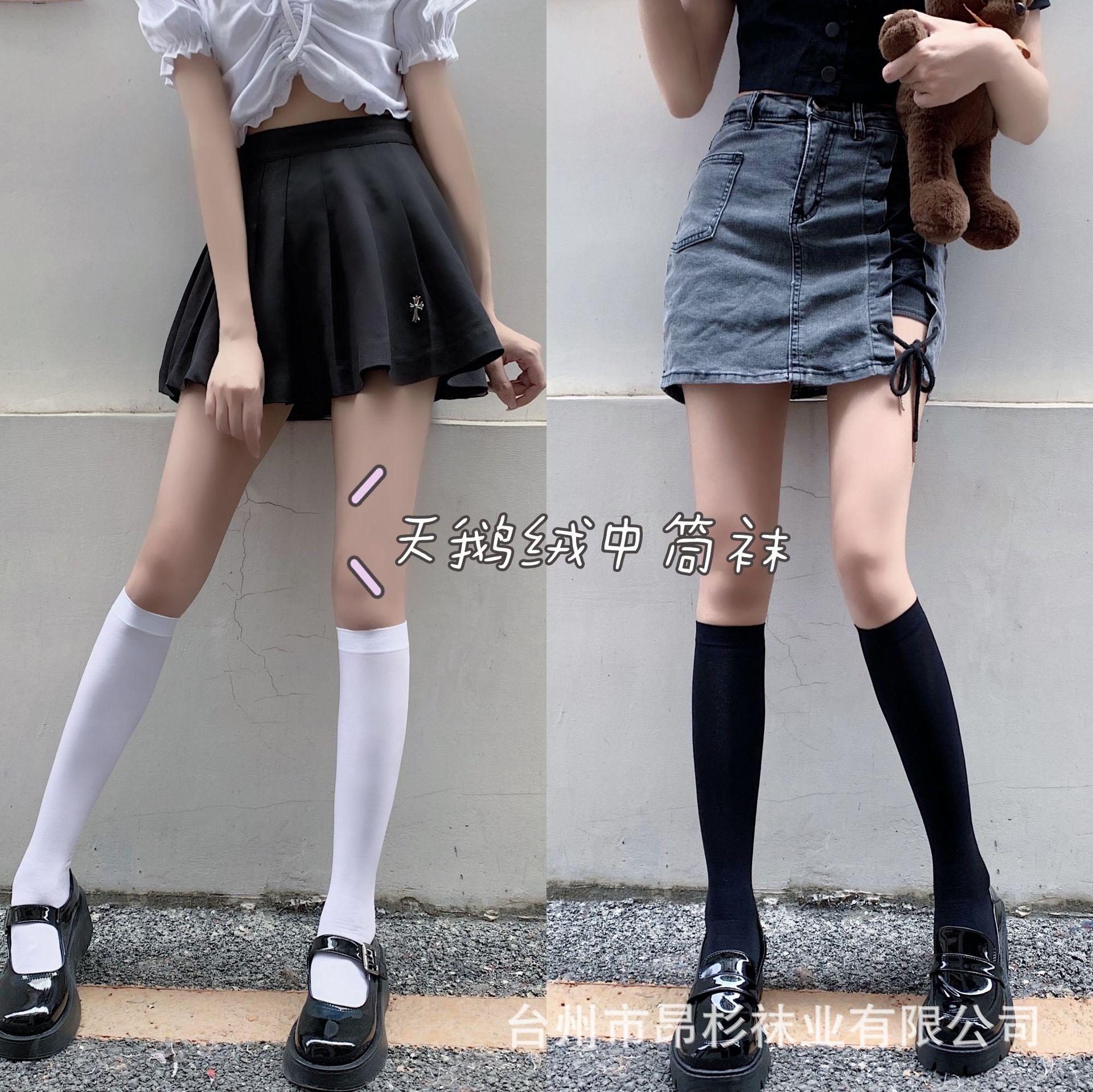 Calcetines de terciopelo blanco de media pierna jk estilo japonés hasta la rodilla, adelgazantes, de media caña, de moda para primavera, verano y otoño, para mujer.