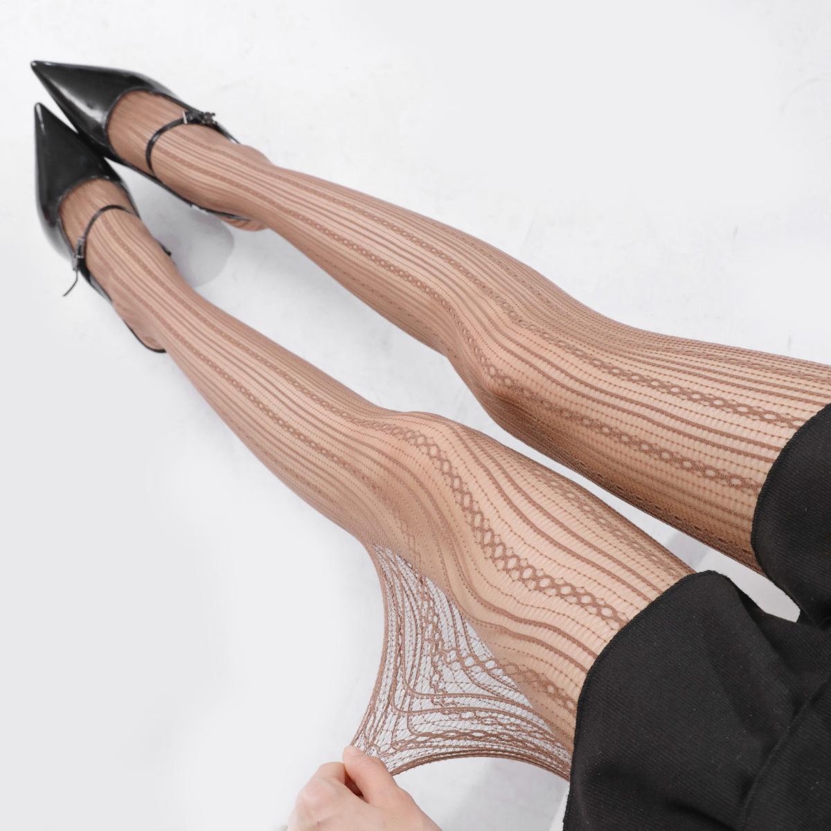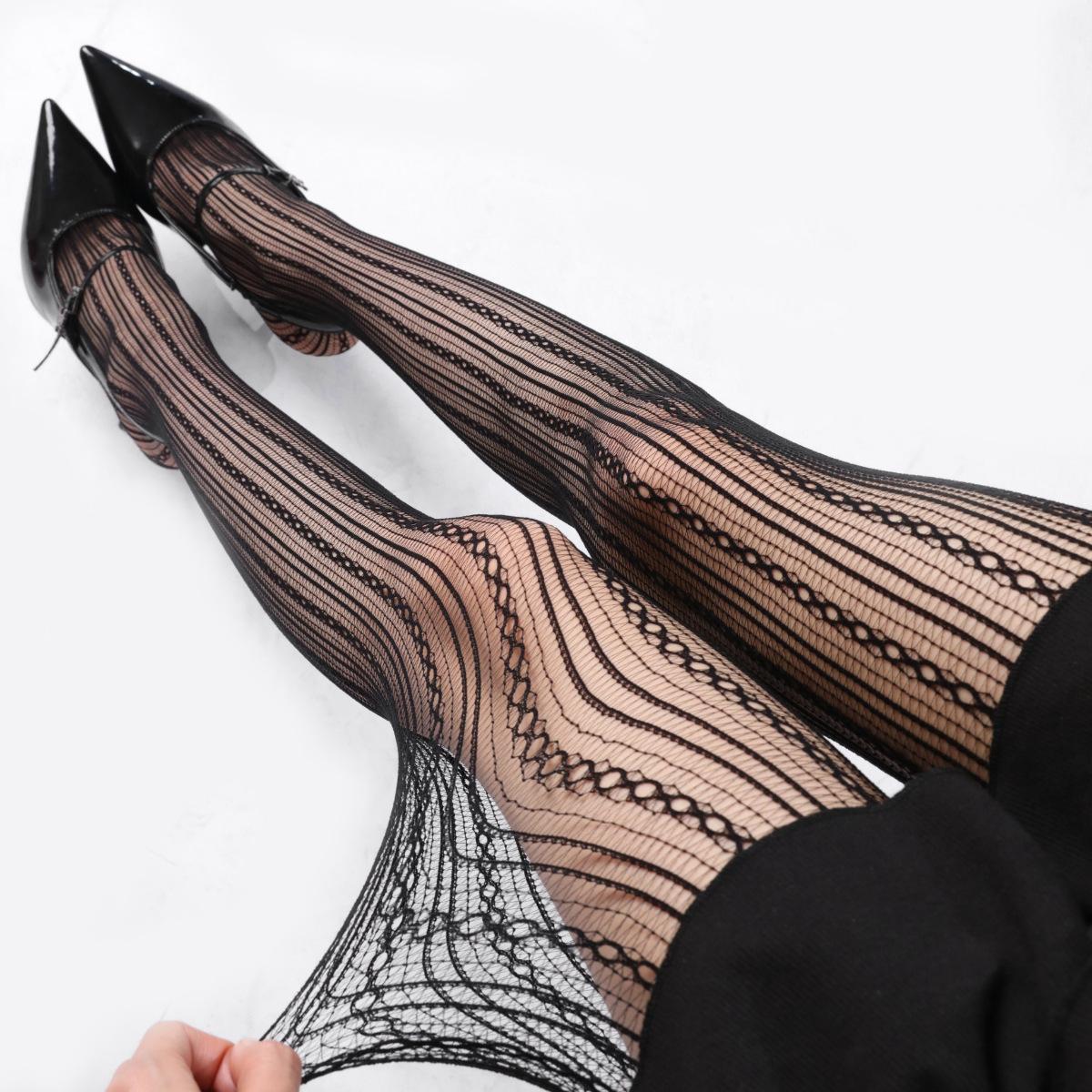 Medias de seda con rayas verticales huecas de encaje blanco fino de Spice Girl de primavera y verano, medias de rejilla, pantimedias adelgazantes