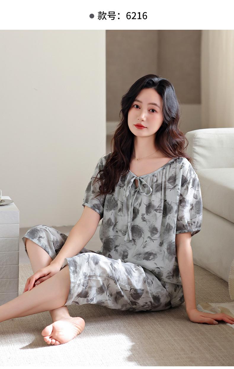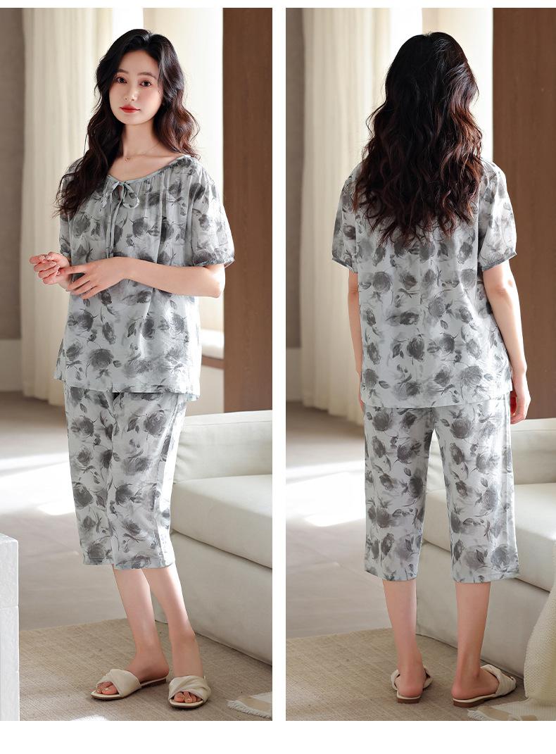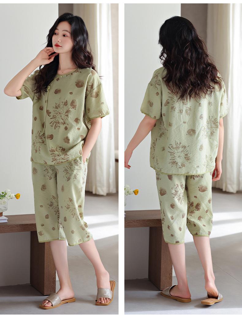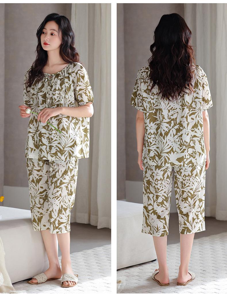 Pijama de verano para mujer, de algodón, tejido tipo capri, manga corta, informal, para el hogar
