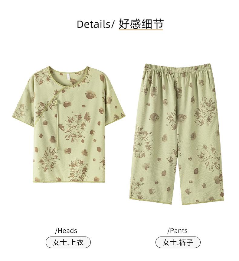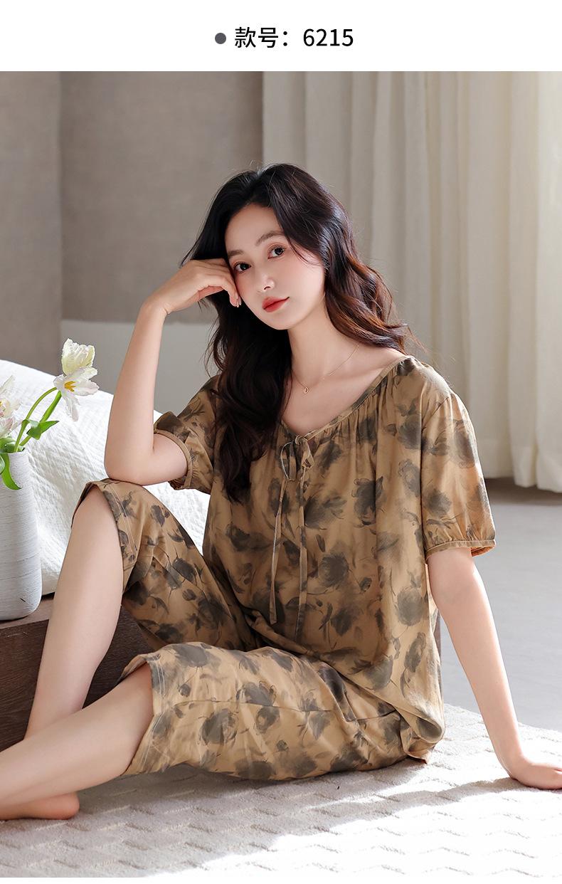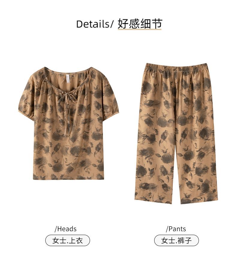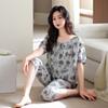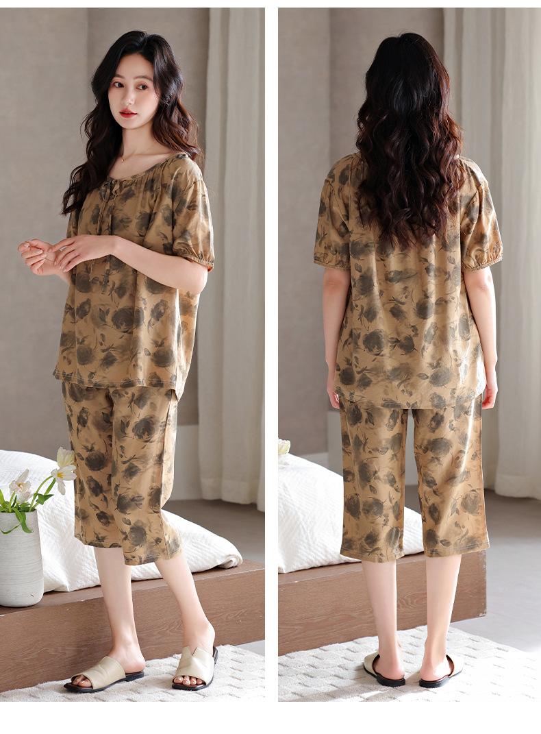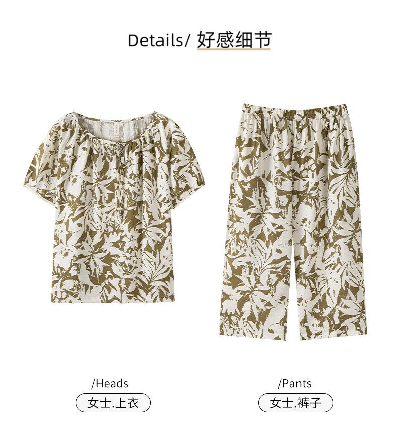 Pijama de verano para mujer, de algodón, tejido tipo capri, manga corta, informal, para el hogar