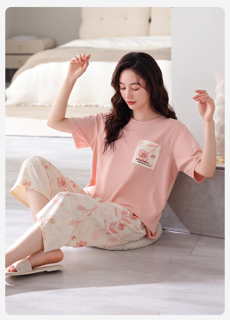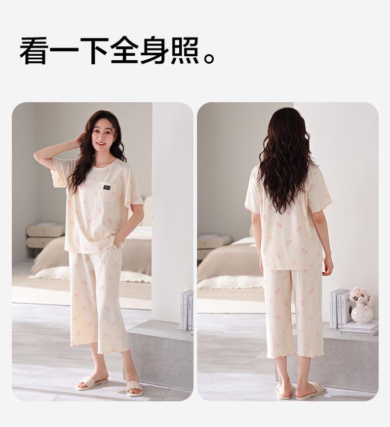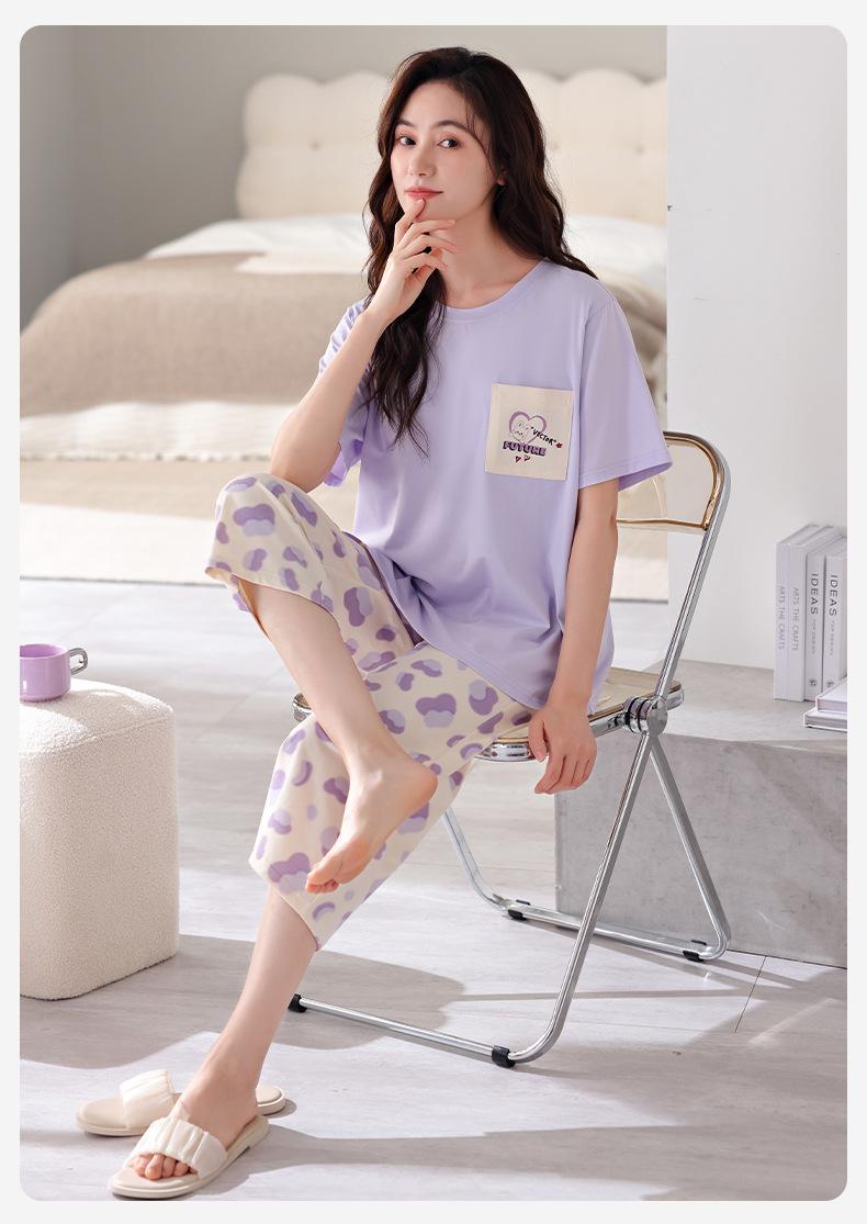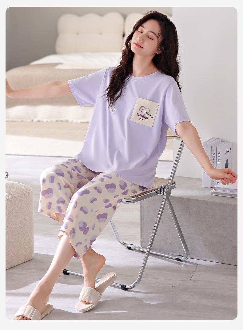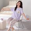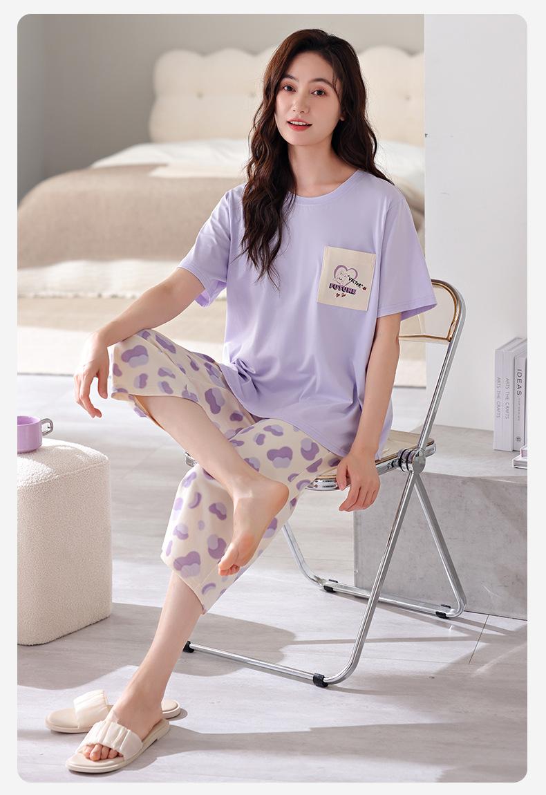 Pijama de algodón de estilo nuevo de verano para mujer, pantalones capri de manga corta, ropa informal cómoda para el hogar.