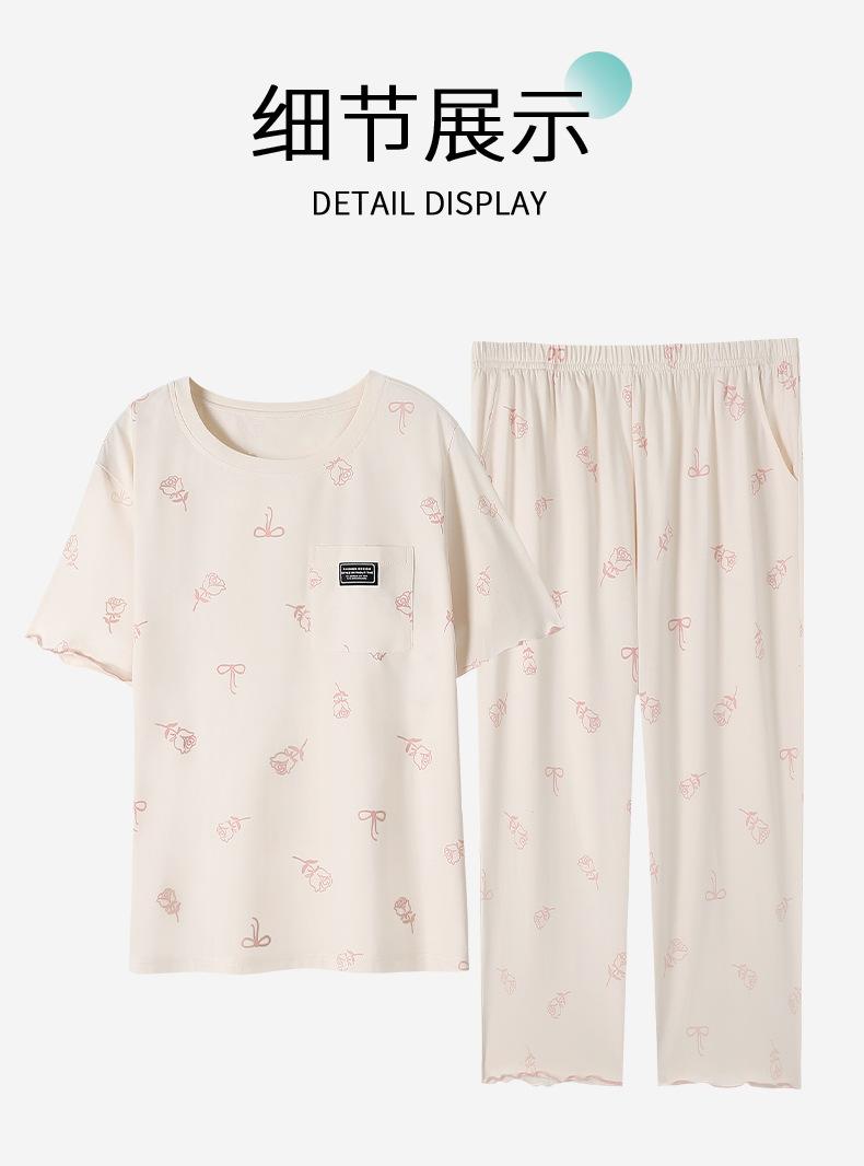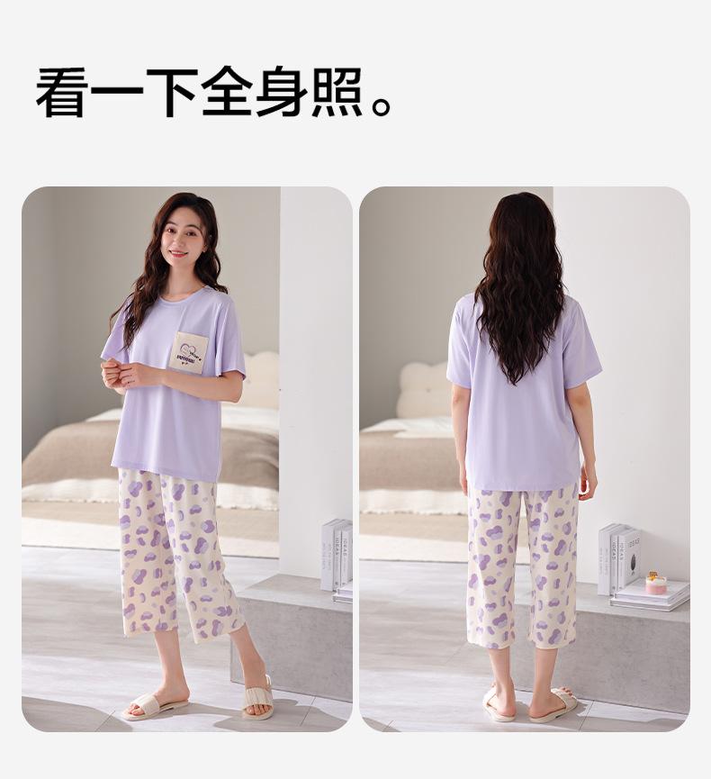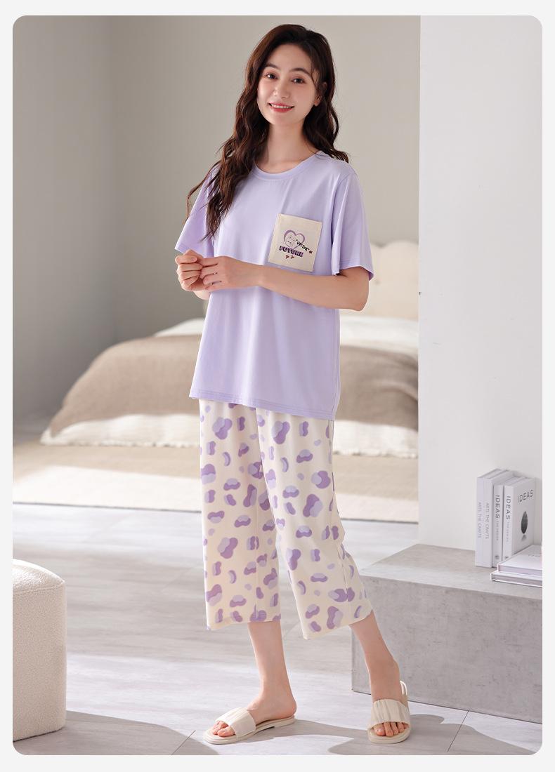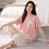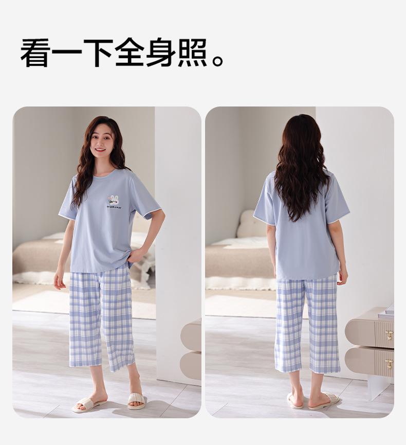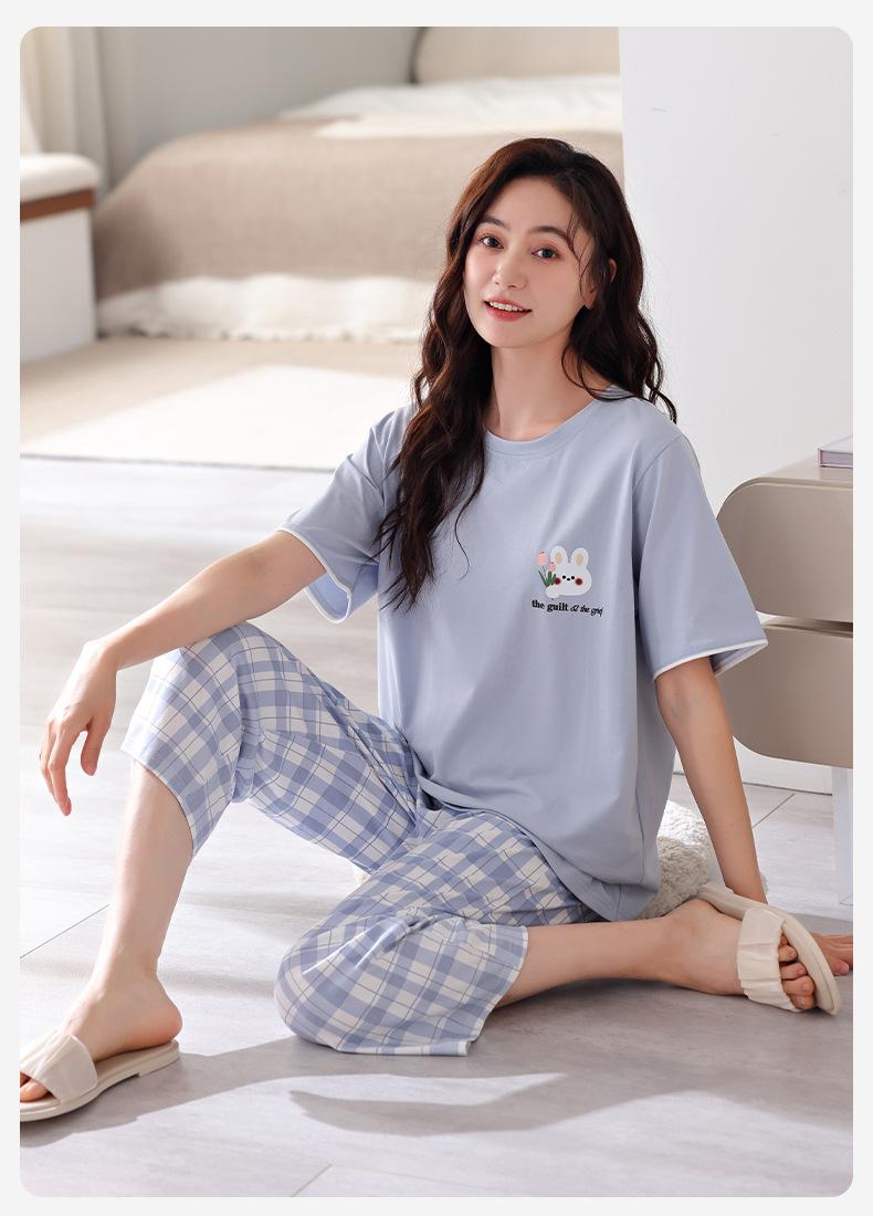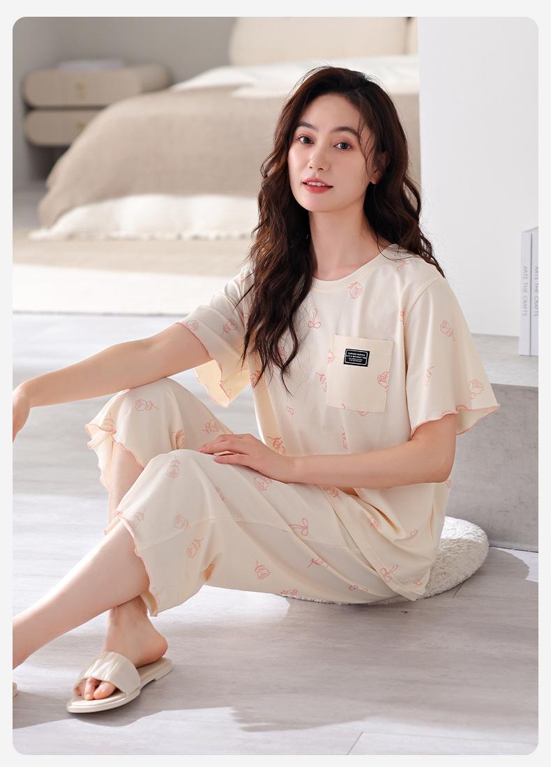 Pijama de algodón de estilo nuevo de verano para mujer, pantalones capri de manga corta, ropa informal cómoda para el hogar.