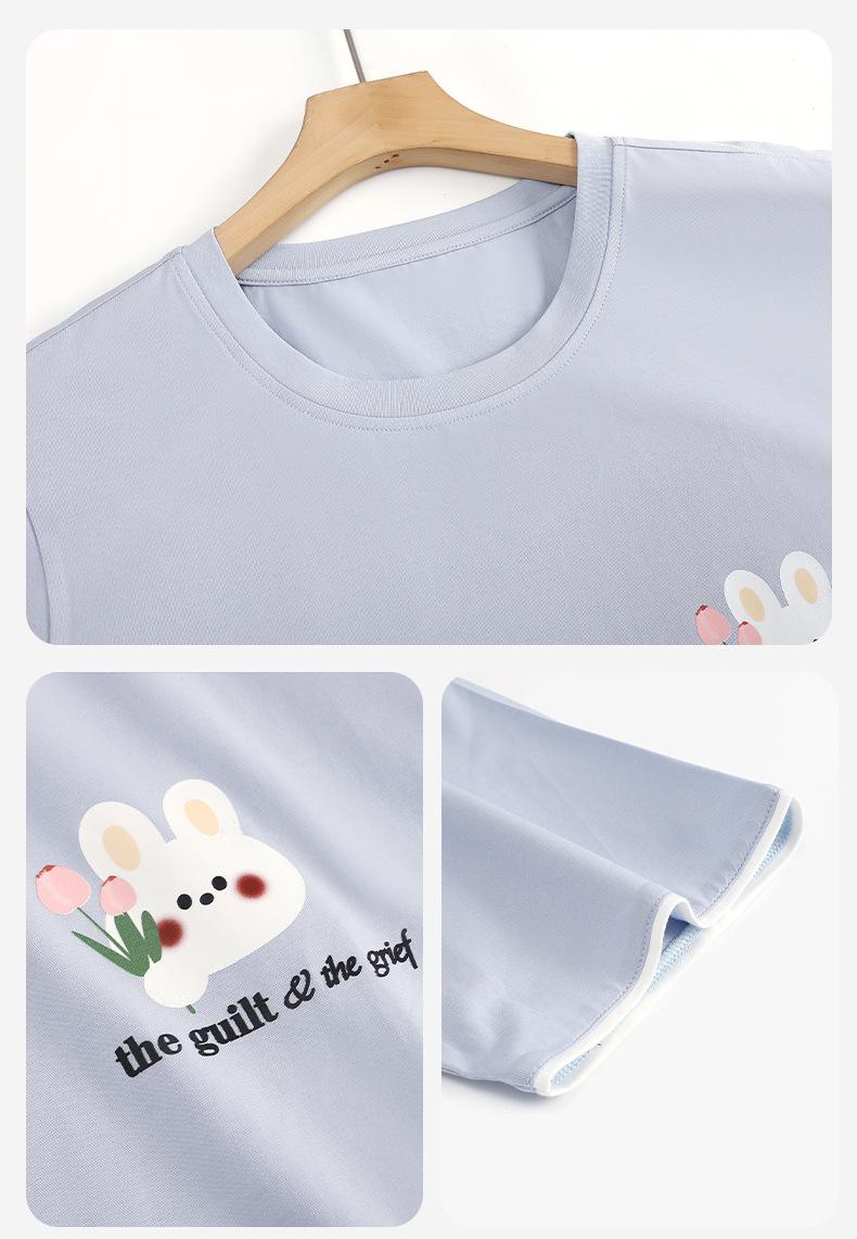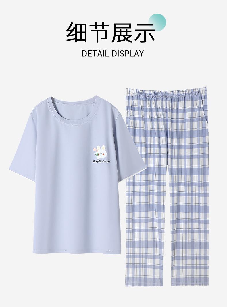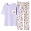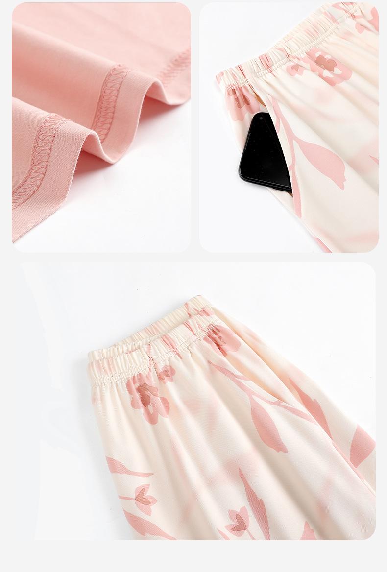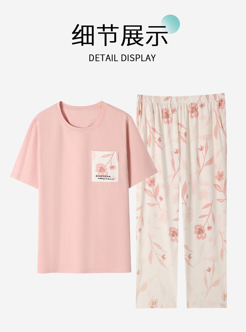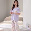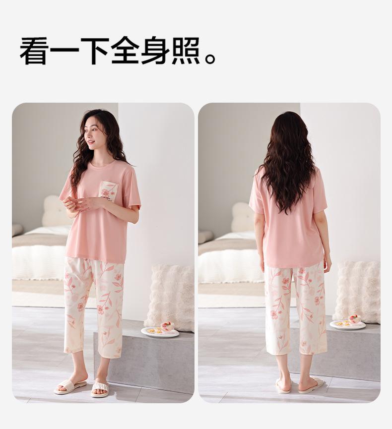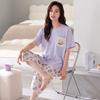 Pijama de algodón de estilo nuevo de verano para mujer, pantalones capri de manga corta, ropa informal cómoda para el hogar.