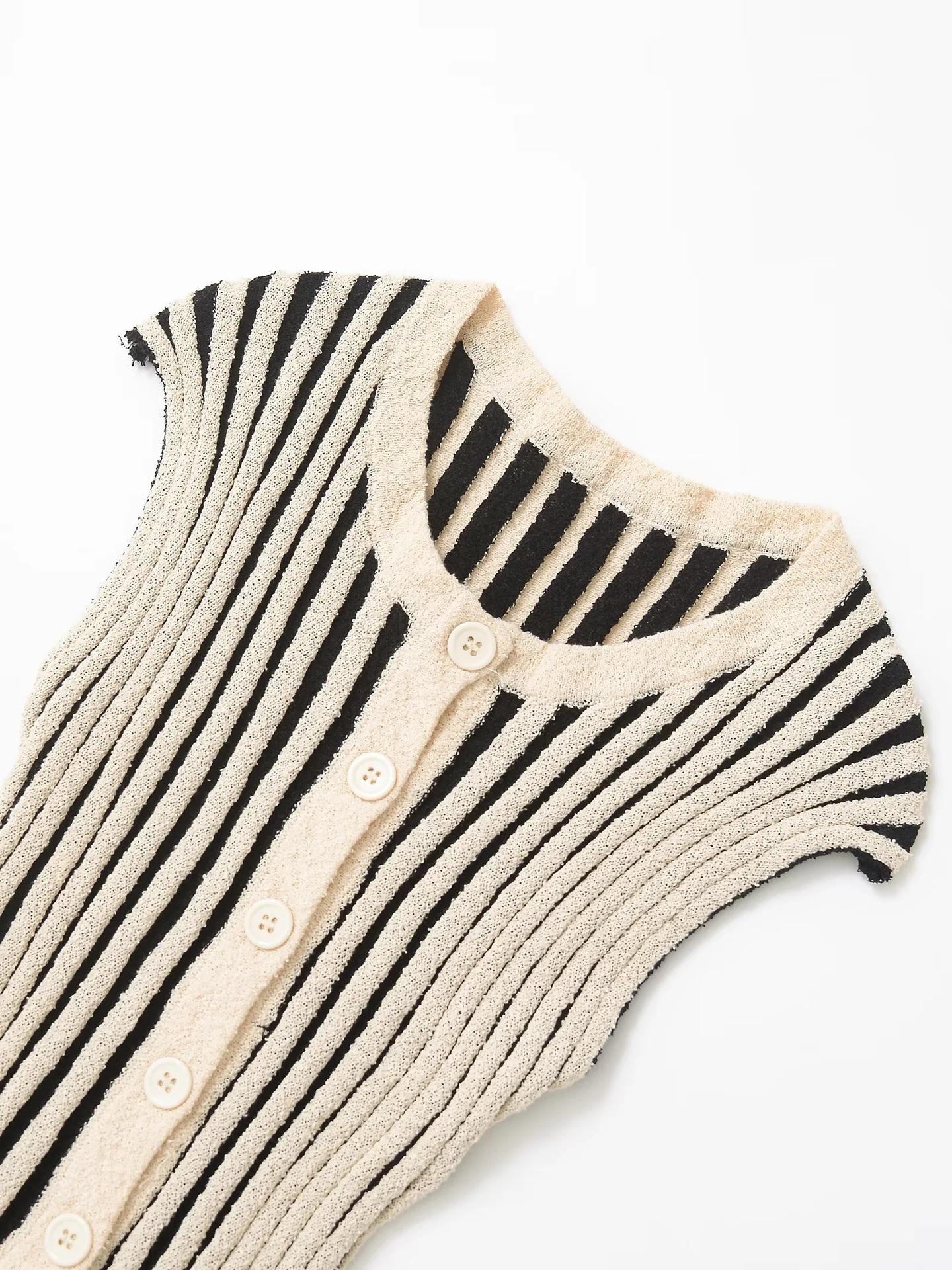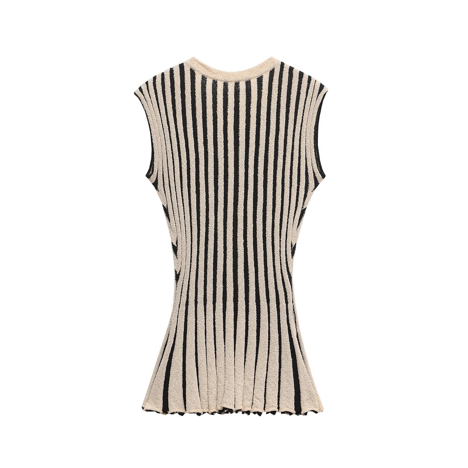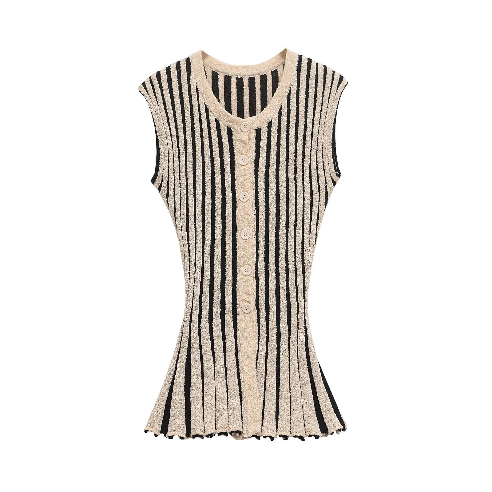 Chaleco de punto sin mangas con cuello redondo y botonadura sencilla para mujer, top elástico de estilo europeo y americano para primavera y verano 2025.