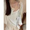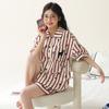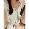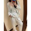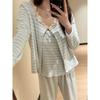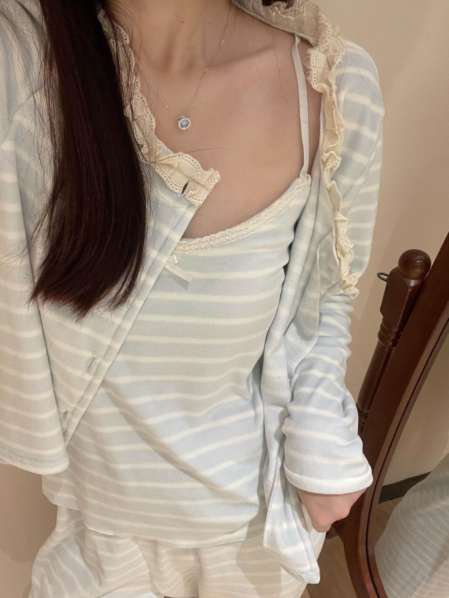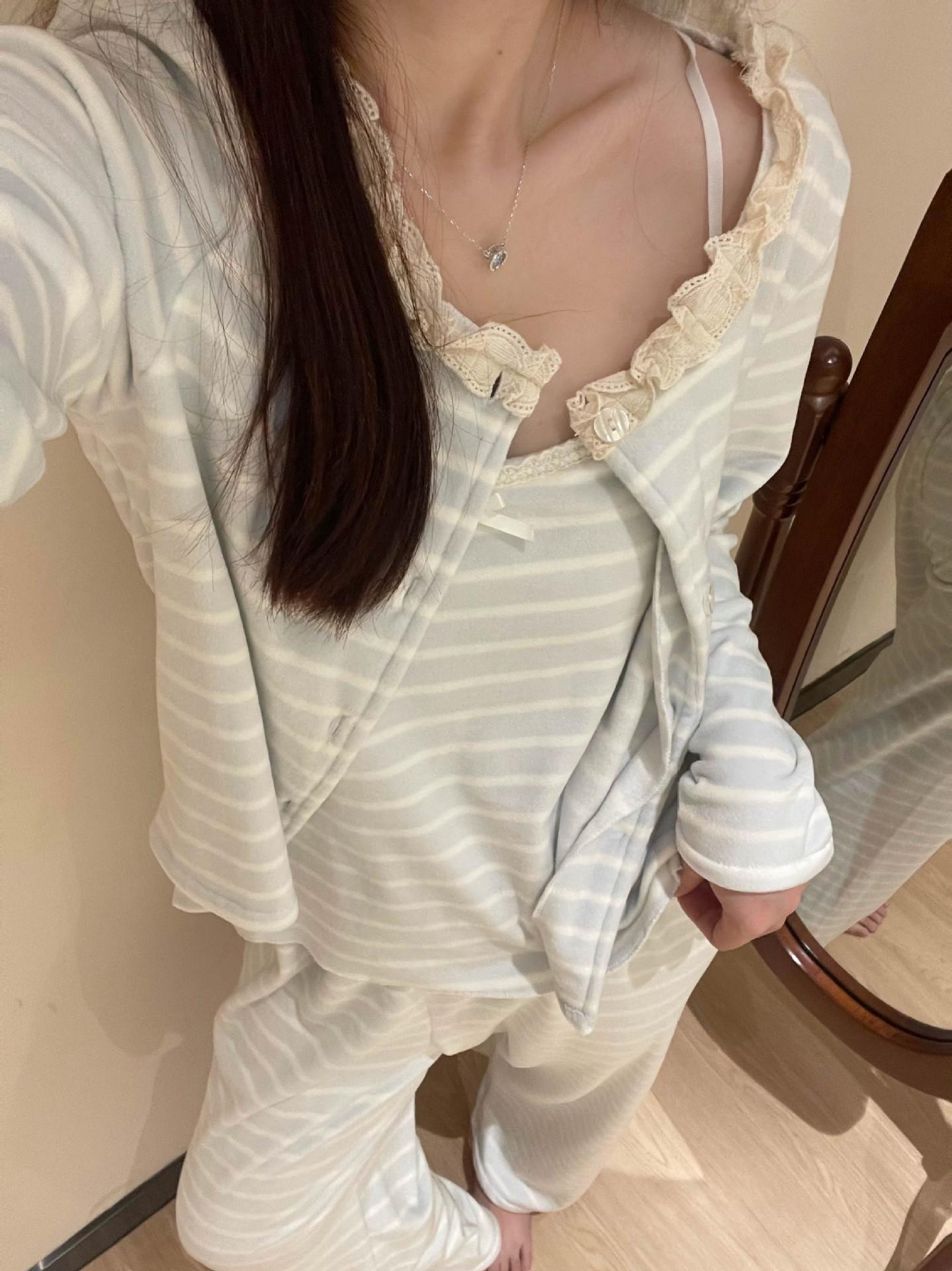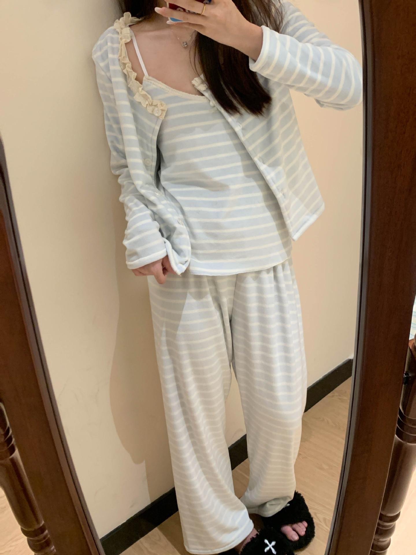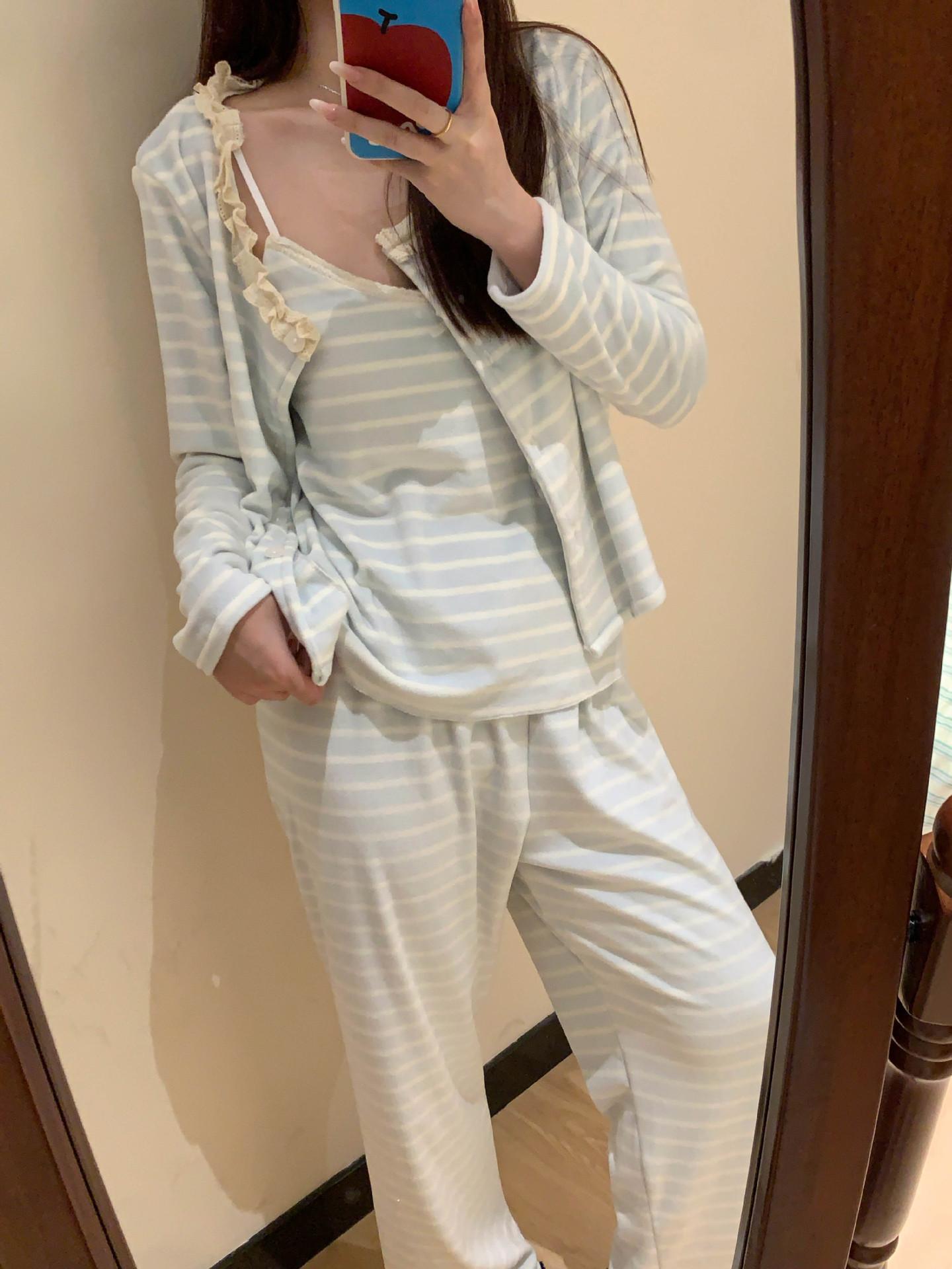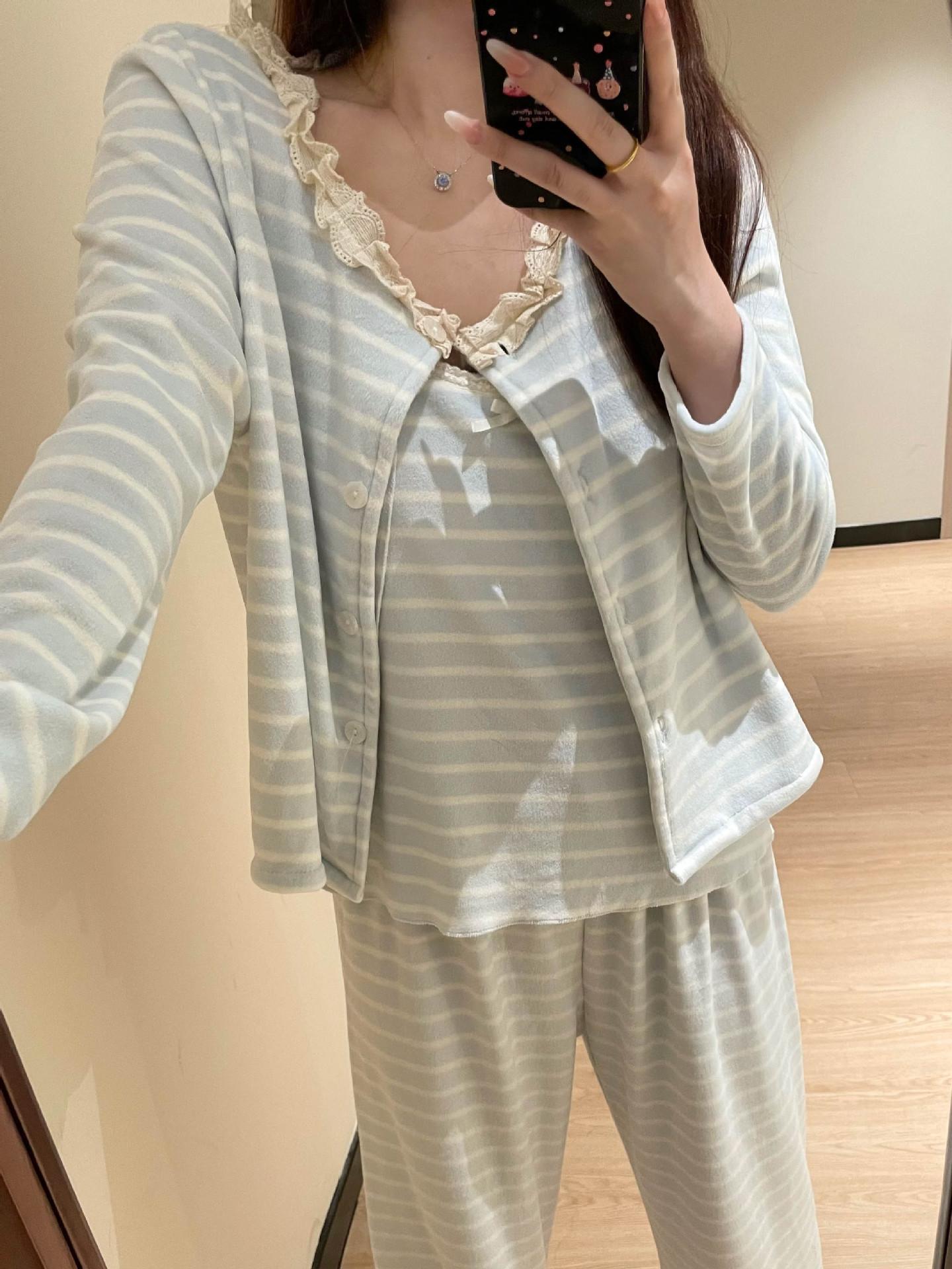 Pijama de terciopelo de talla grande con rayas simples de estilo coreano para mujer, conjunto de tres piezas para el hogar, ropa fresca y pequeña, para principios de primavera 2025