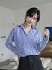 Otoño 2024 Nueva Camisa Elegante Azul a Rayas para el Lugar de Trabajo Diseño de Nicho Femenino Camisa de Manga Larga a Rayas Verticales Trendy