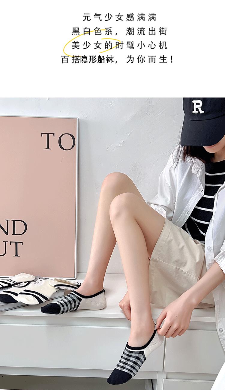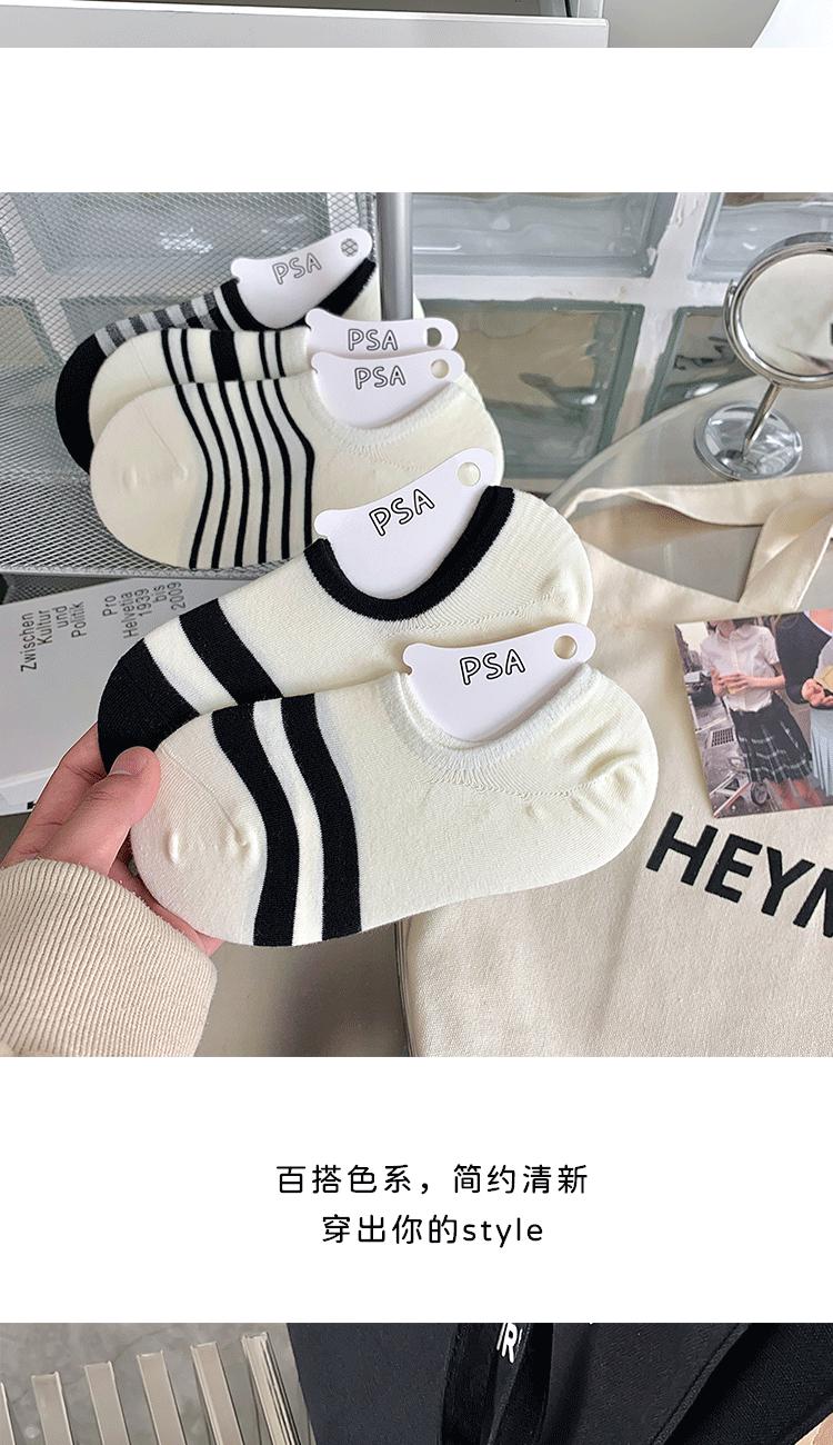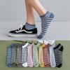 Calcetines a rayas, calcetines náuticos para mujer, calcetines de algodón de moda, calcetines cortos finos de verano universitarios en blanco y negro, estilo japonés y coreano, calcetines invisibles de primavera y verano.