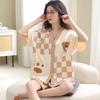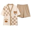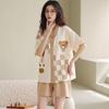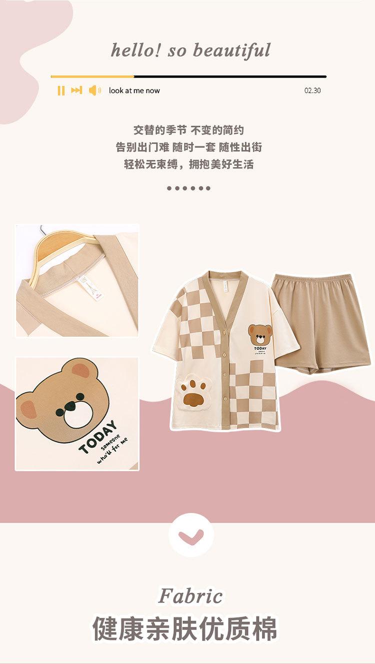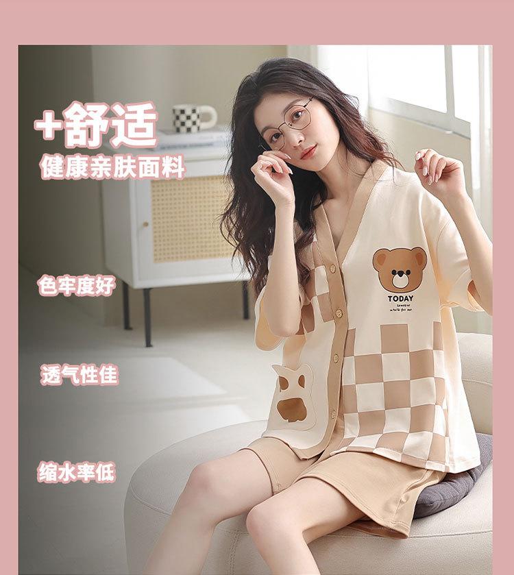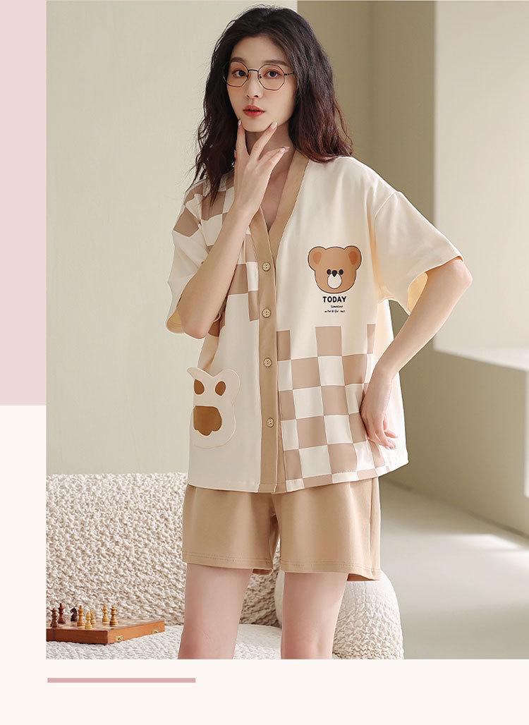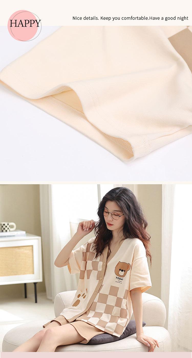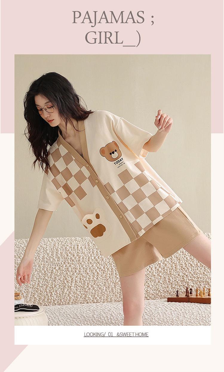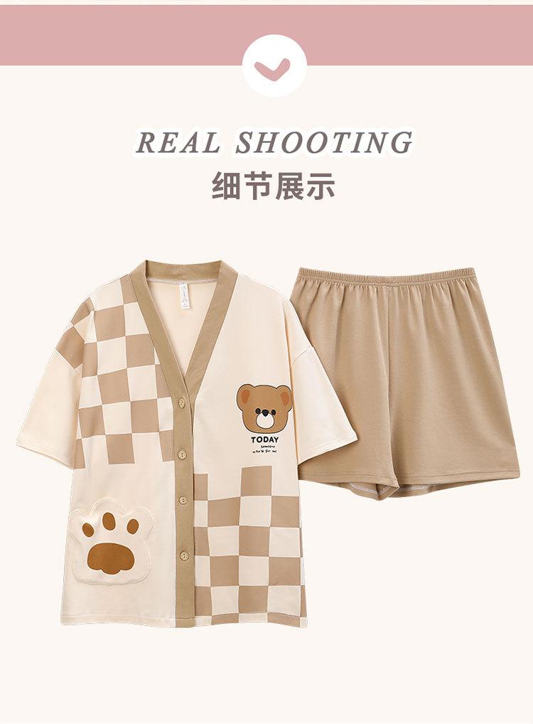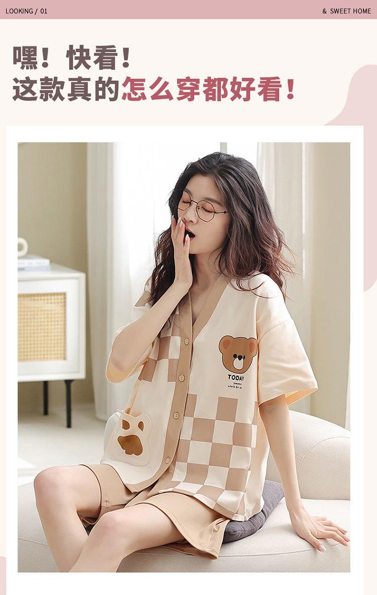Pijama de algodón puro para mujer, de verano, con dibujos animados, de manga corta, estilo coreano, para el hogar, de dos piezas, para llevar al aire libre.