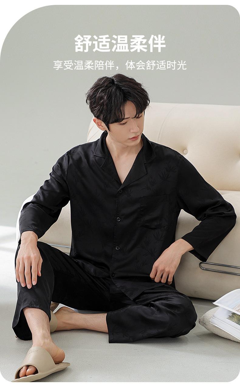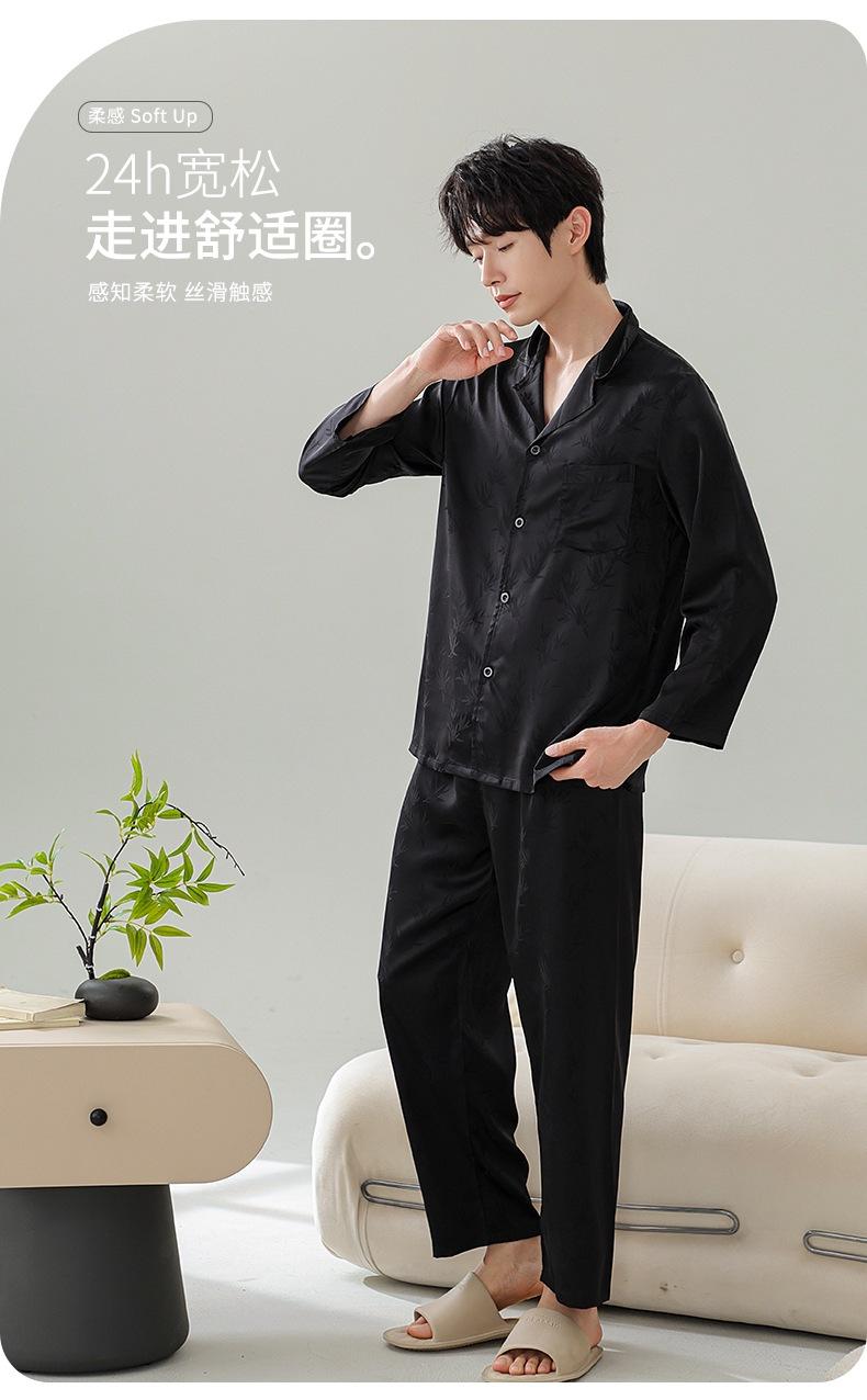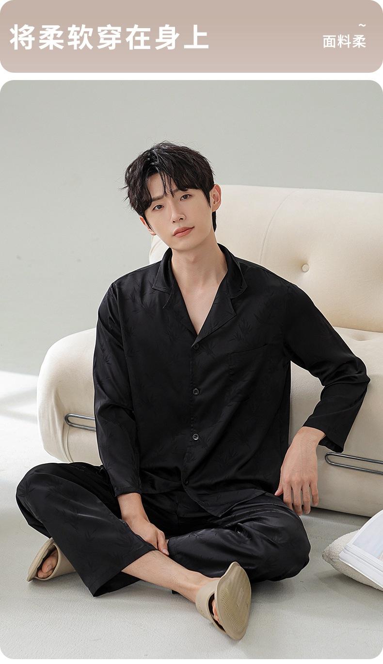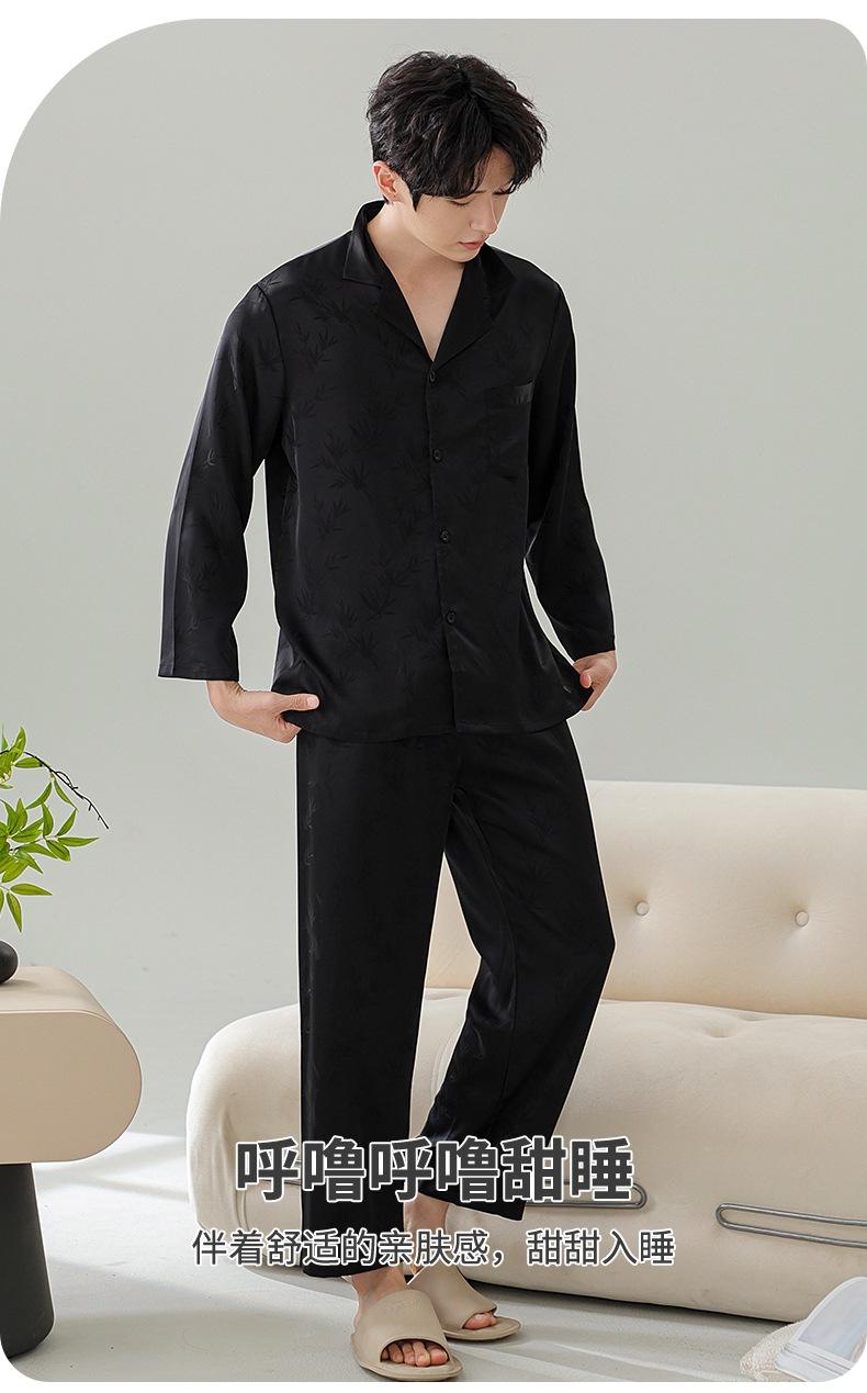 Tienda física primavera y otoño nuevos pijamas de hombre hielo y nieve seda doble largo ropa de casa se puede usar seda imitación seda textura