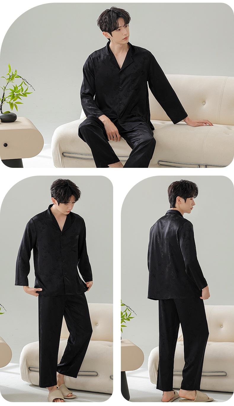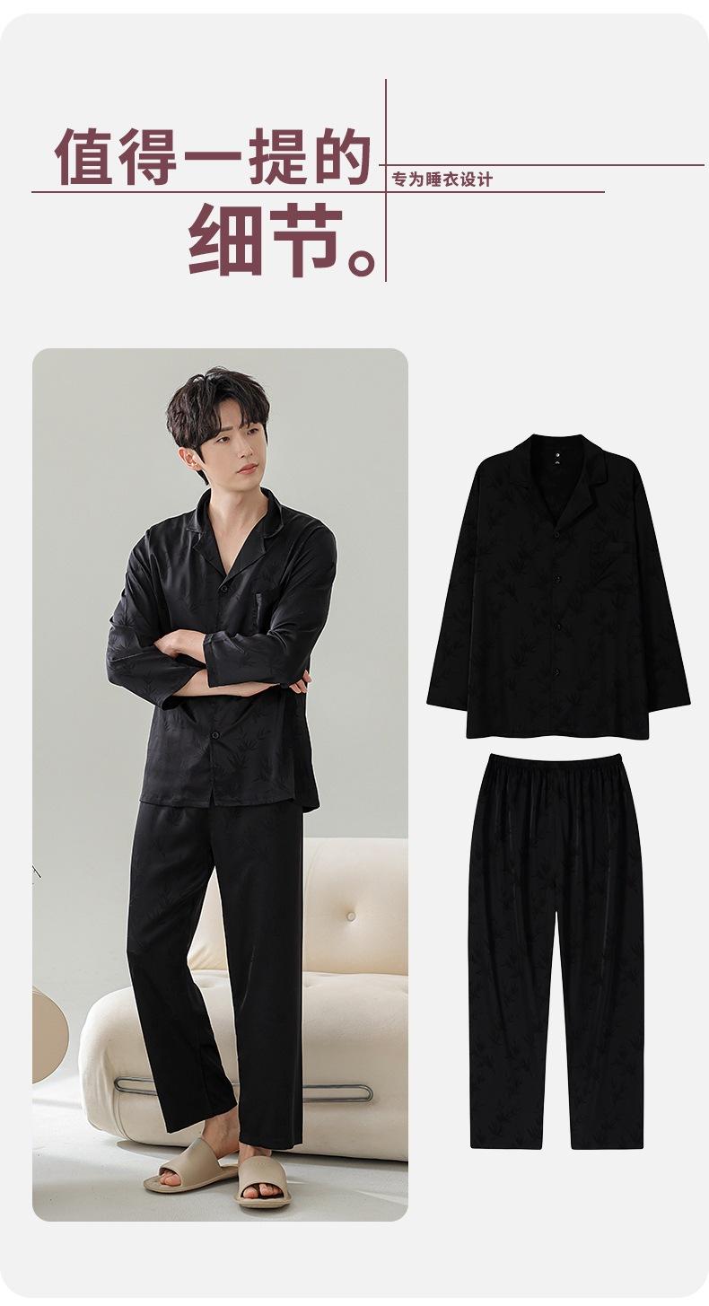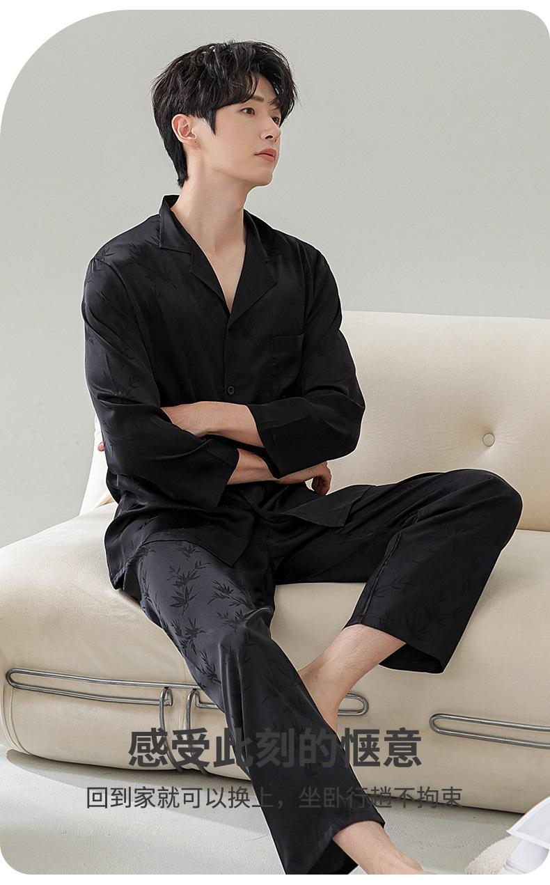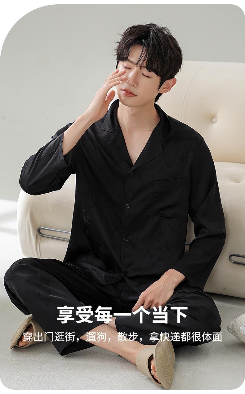 Tienda física primavera y otoño nuevos pijamas de hombre hielo y nieve seda doble largo ropa de casa se puede usar seda imitación seda textura