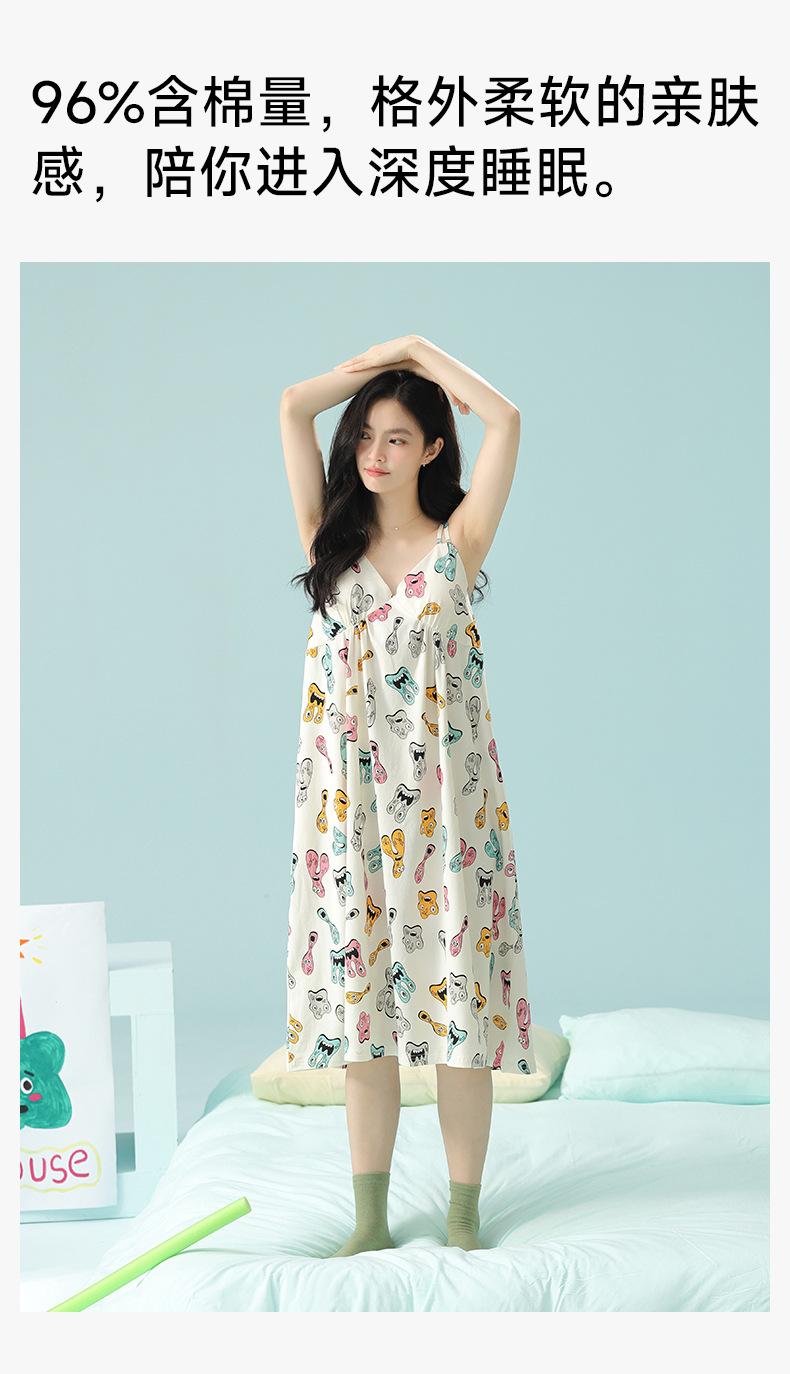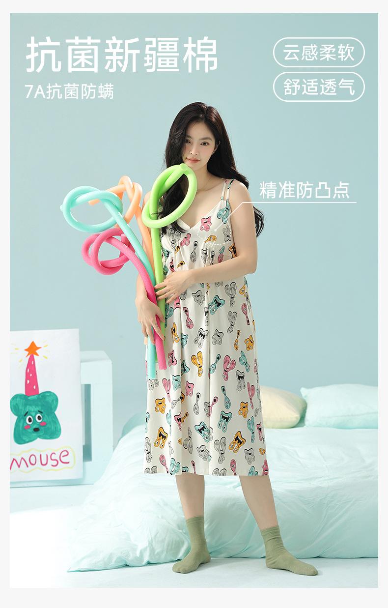 [Algodón Antibacterial de Xinjiang] Camisón de Verano sin Mangas de Algodón Puro Clase A para Mujer, Largo, Ropa de Casa con Almohadilla en el Pecho, Talla Grande
