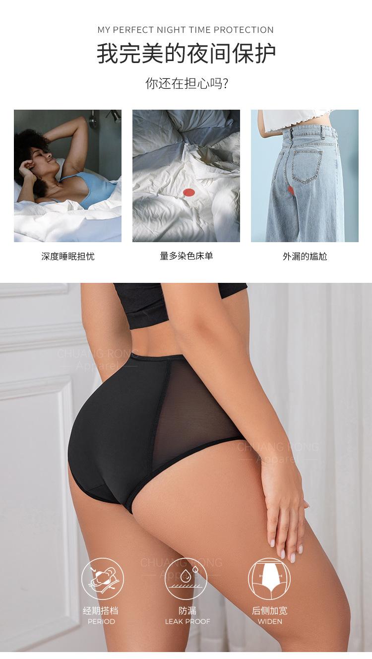 Pantalones Menstruales Sexy Empalme de Encaje Europeo y Americano Antifugas Laterales Antibacterianos Ropa Interior Especial para el Período Menstrual de Mujer Transpirable