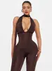 Mono ajustado sin espalda con cuello en U de color puro de moda de verano 2025 de estilo europeo y americano transfronterizo 3387
