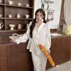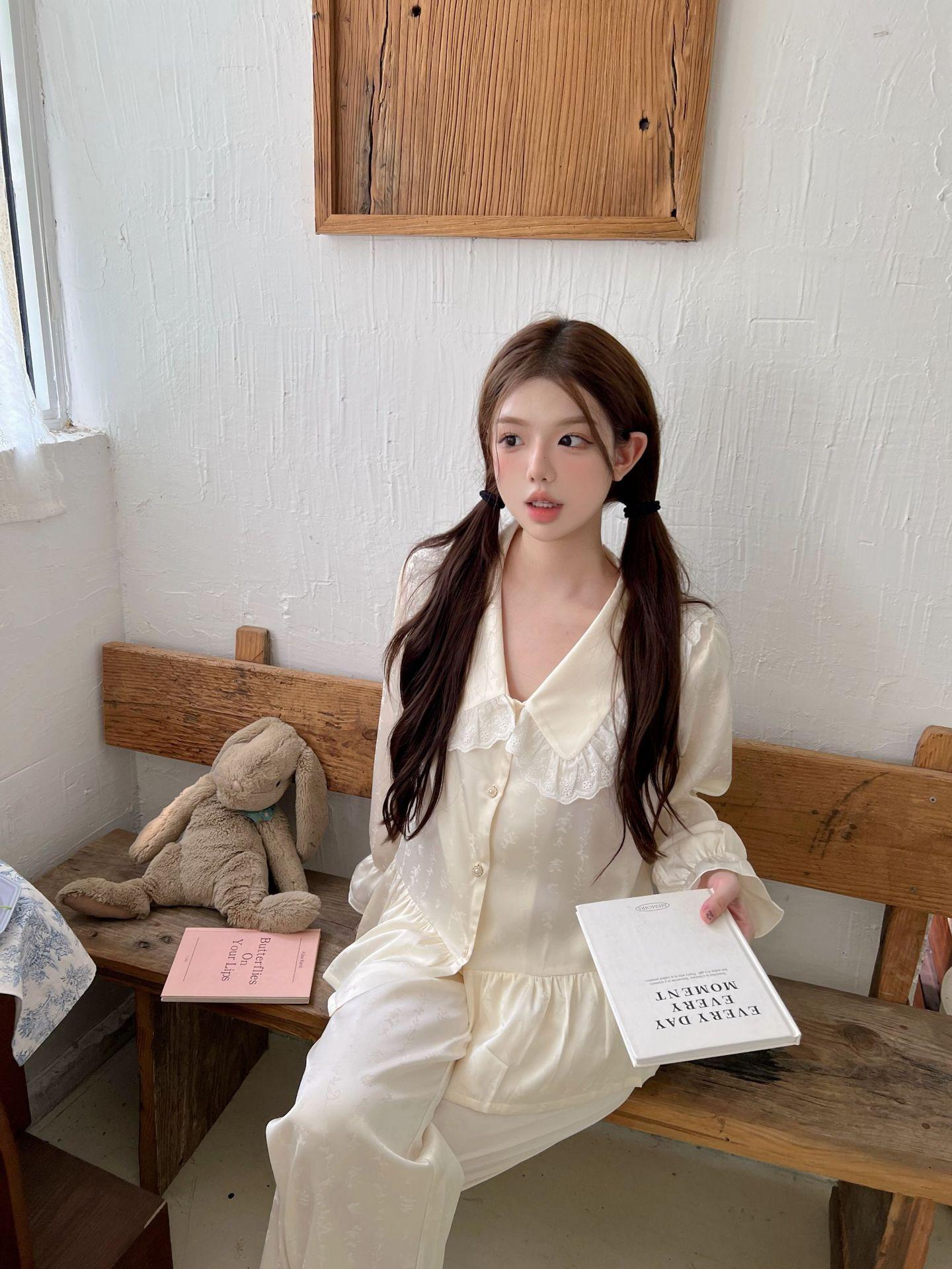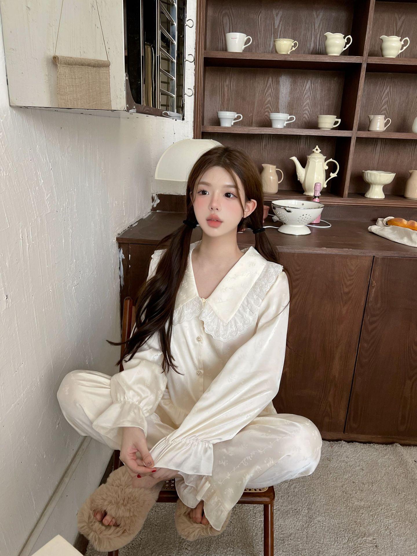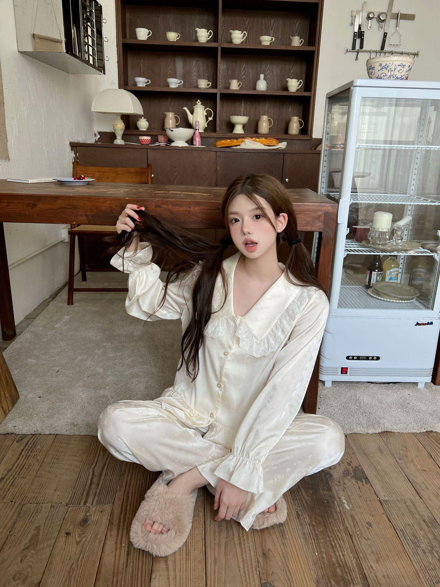 Pijama de otoño nuevo de seda de hielo Jacquard para mujer, de alta gama, con lazo, manga larga, estilo cortesano, ropa de casa para niña, estilo Chanel