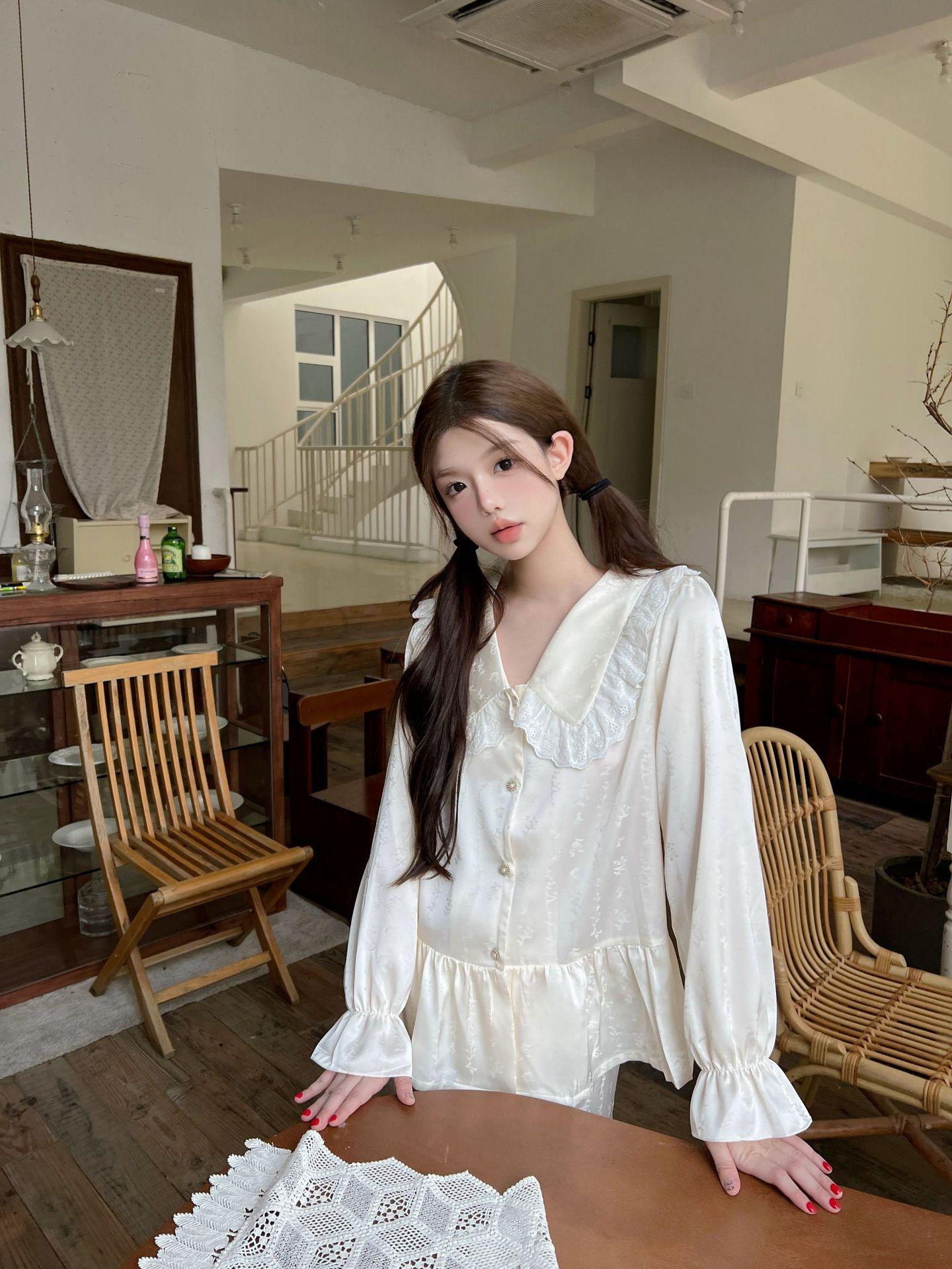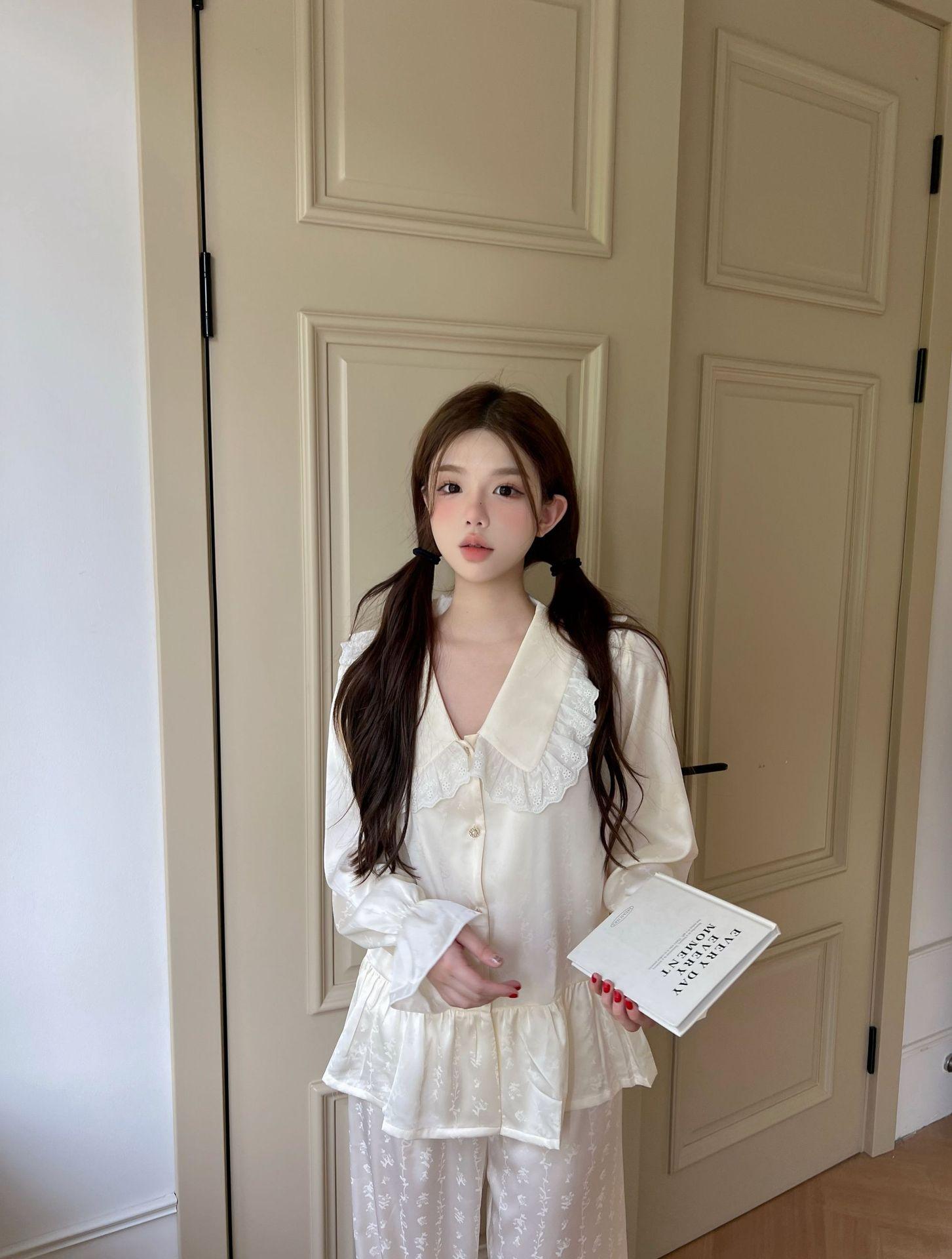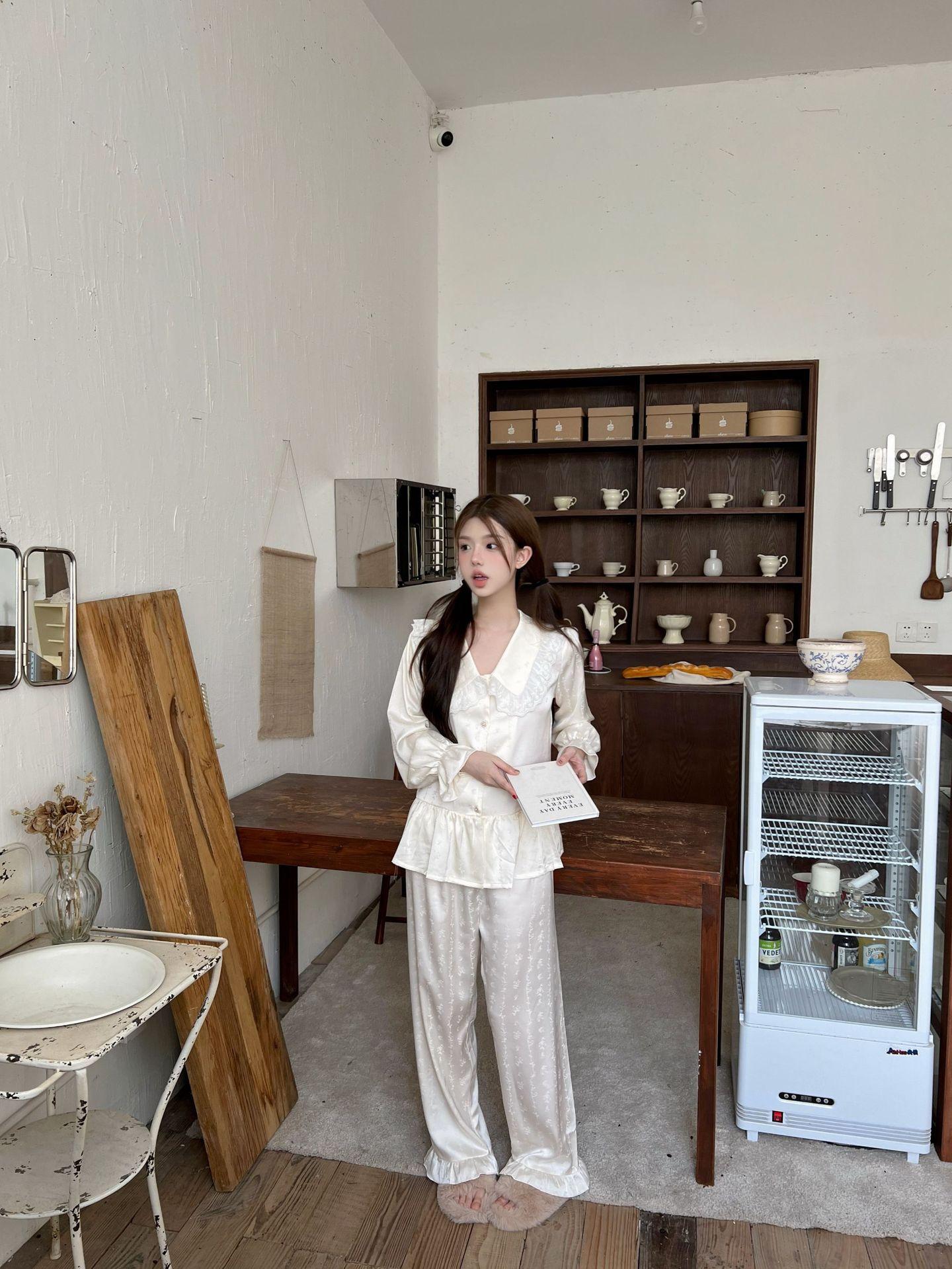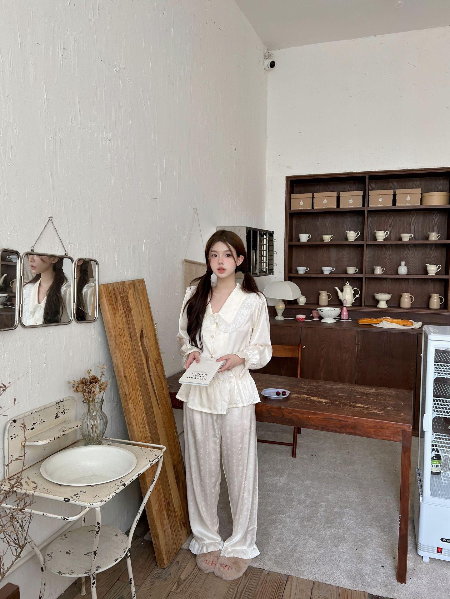 Pijama de otoño nuevo de seda de hielo Jacquard para mujer, de alta gama, con lazo, manga larga, estilo cortesano, ropa de casa para niña, estilo Chanel