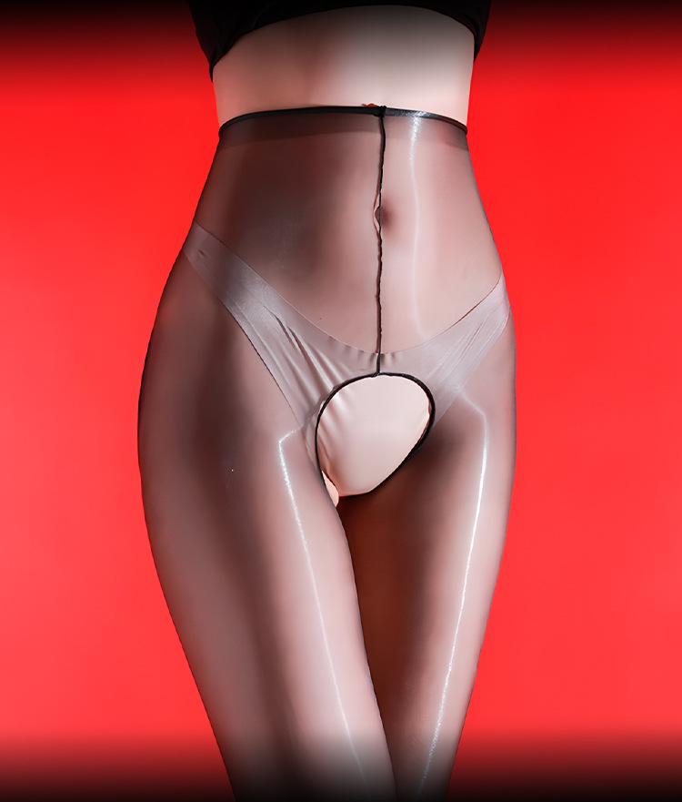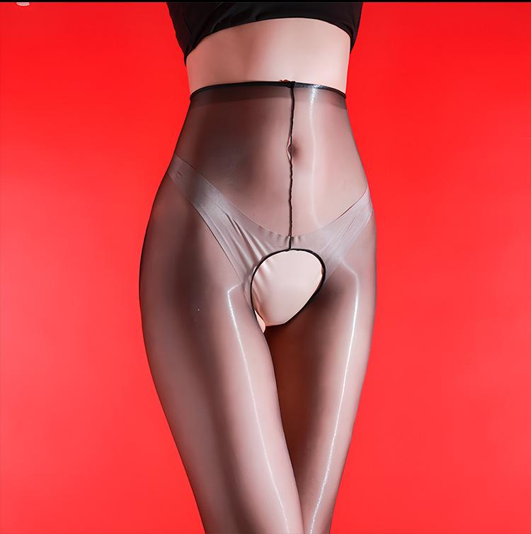 Medias de seda Aurora ultrafinas, brillantes como el aceite, de entrepierna abierta grande, para mujer, sexys, transparentes, tentación gratuita, pasión, sedosas, reflectantes, divertidas, seda negra