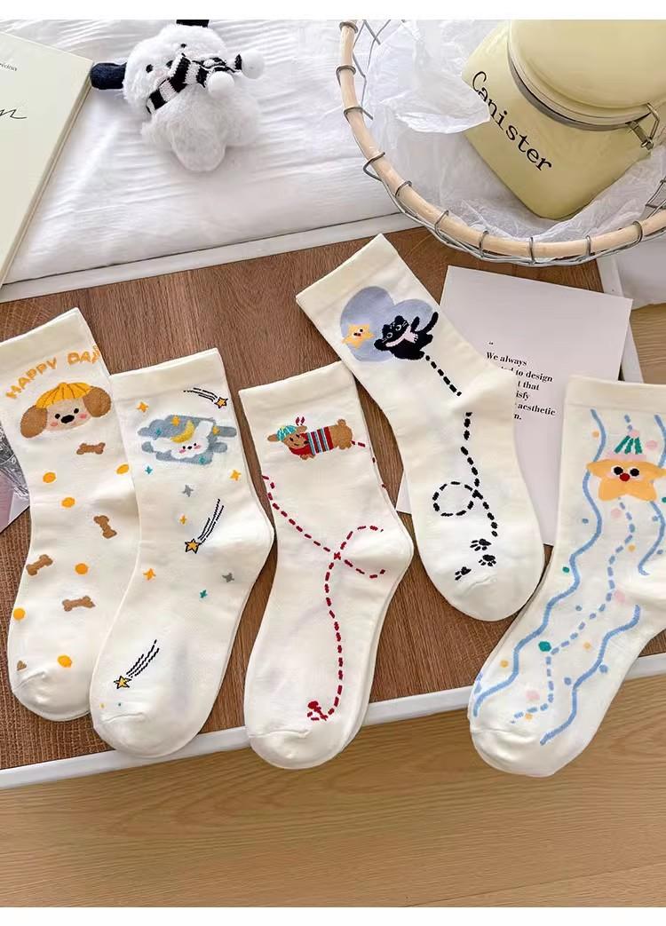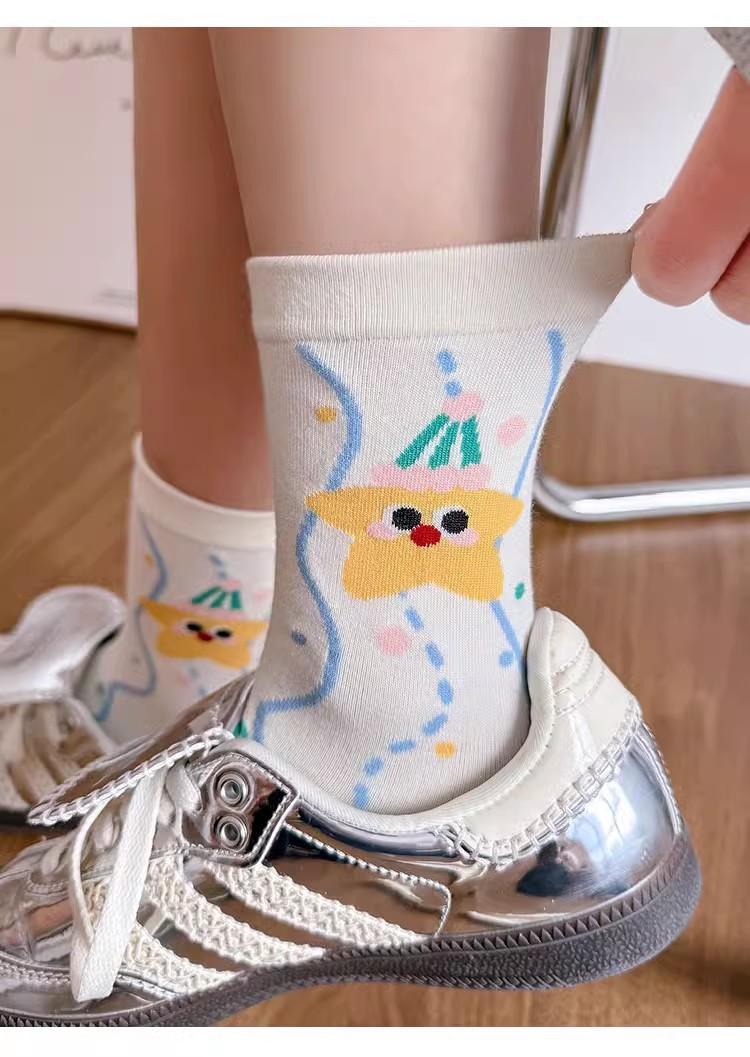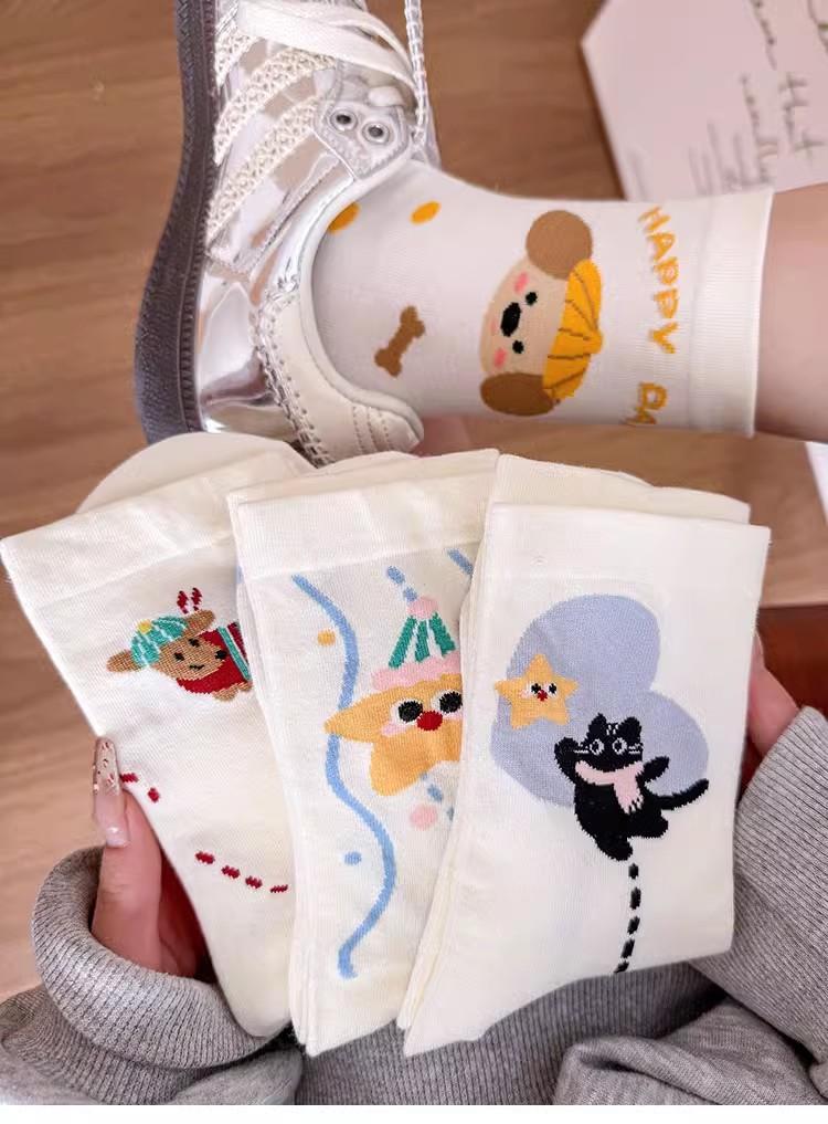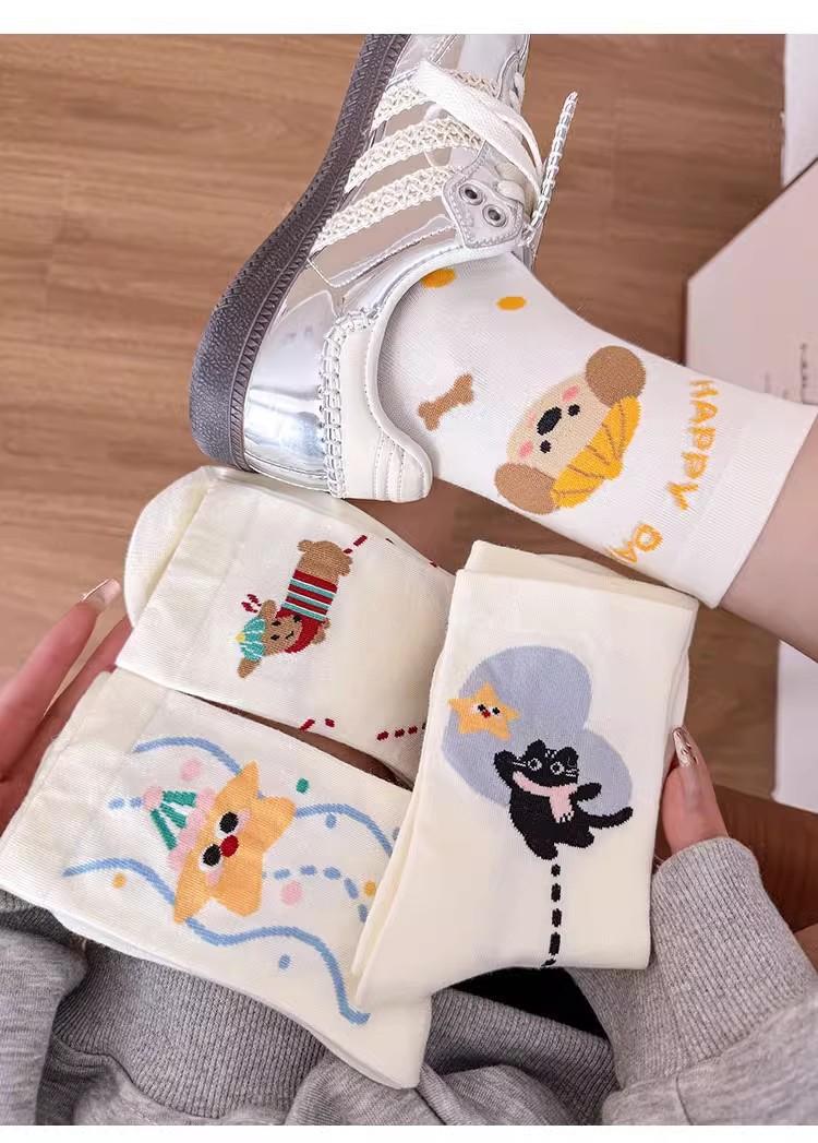 Calcetines Blancos de Algodón de Dibujos Animados Lindos de Media Caña Ins Primavera y Verano Casual Estudiante Delgados Estilo Preppy Calcetines Medias