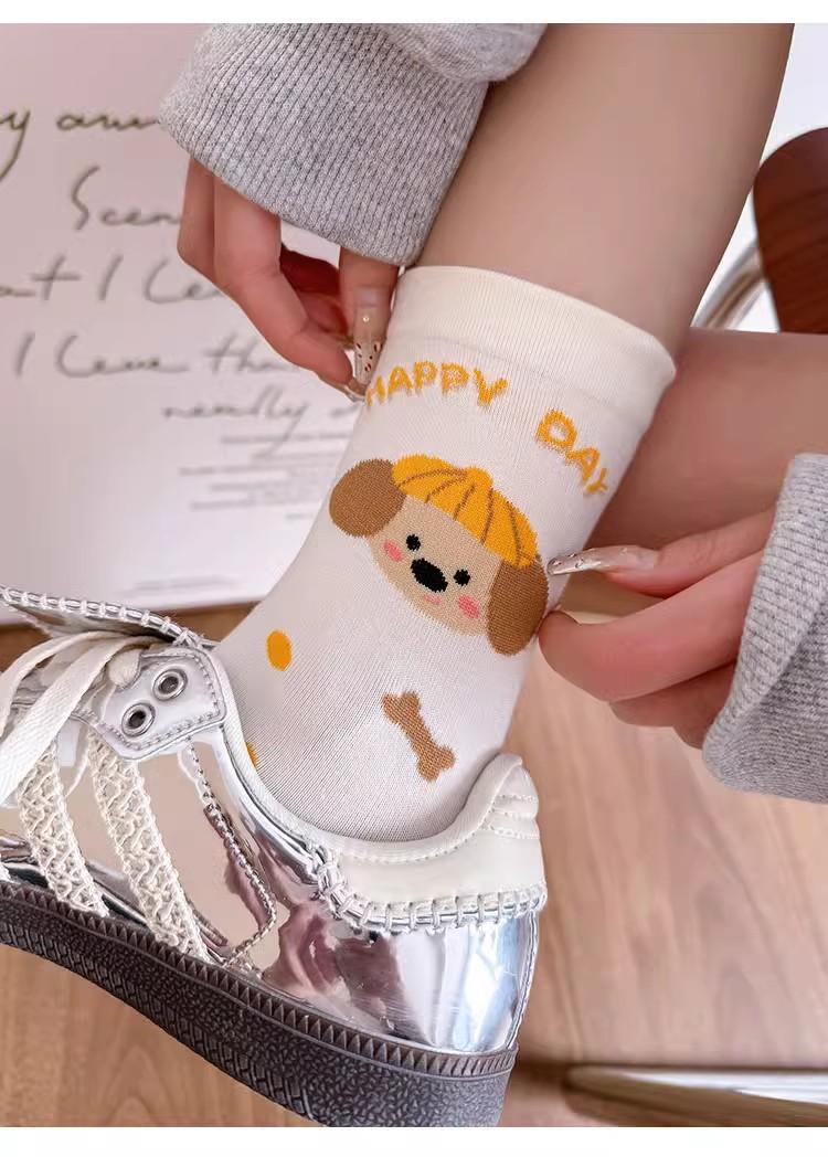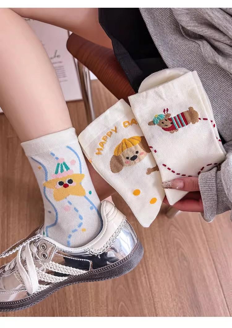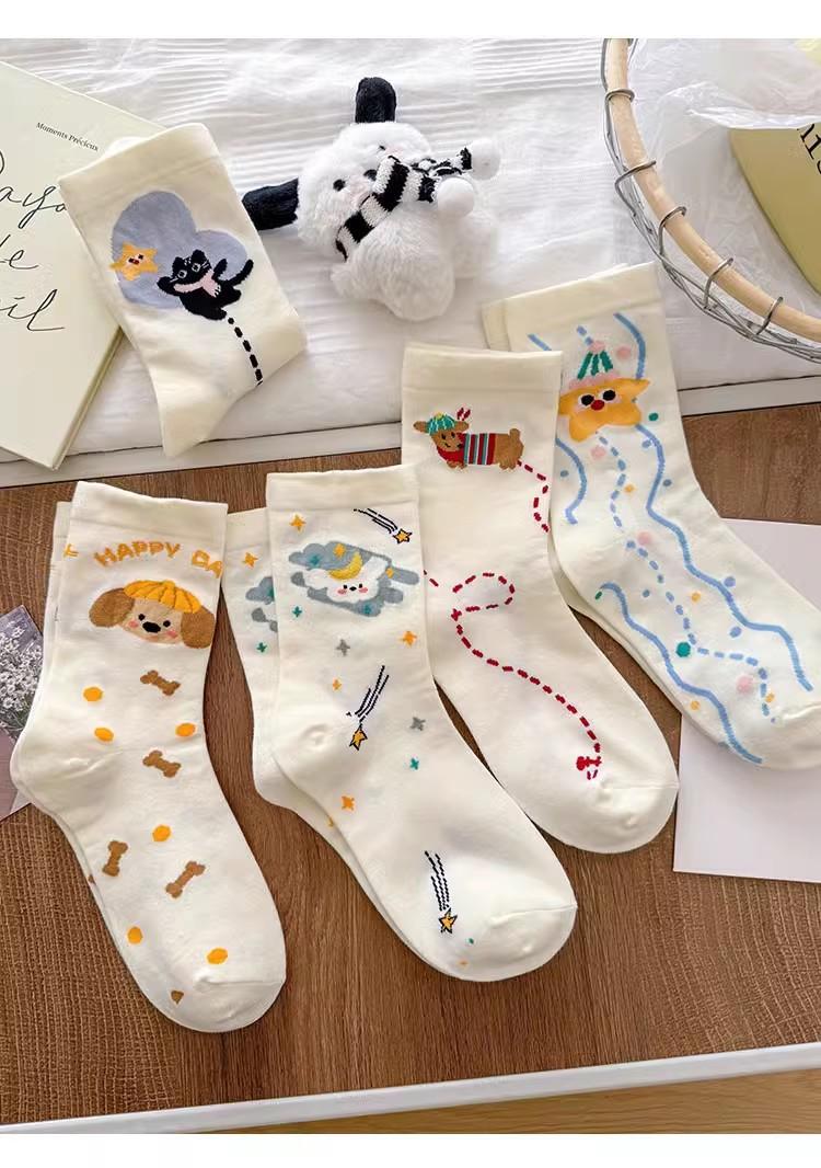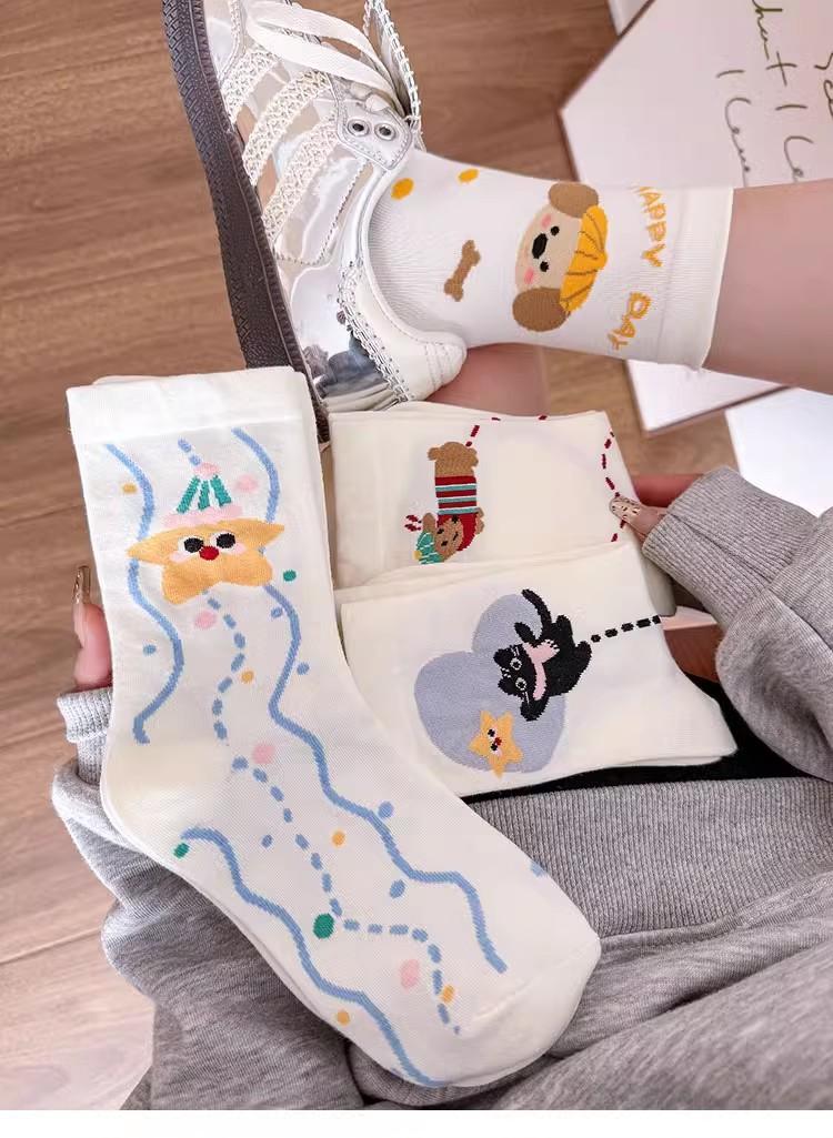 Calcetines Blancos de Algodón de Dibujos Animados Lindos de Media Caña Ins Primavera y Verano Casual Estudiante Delgados Estilo Preppy Calcetines Medias
