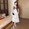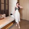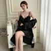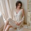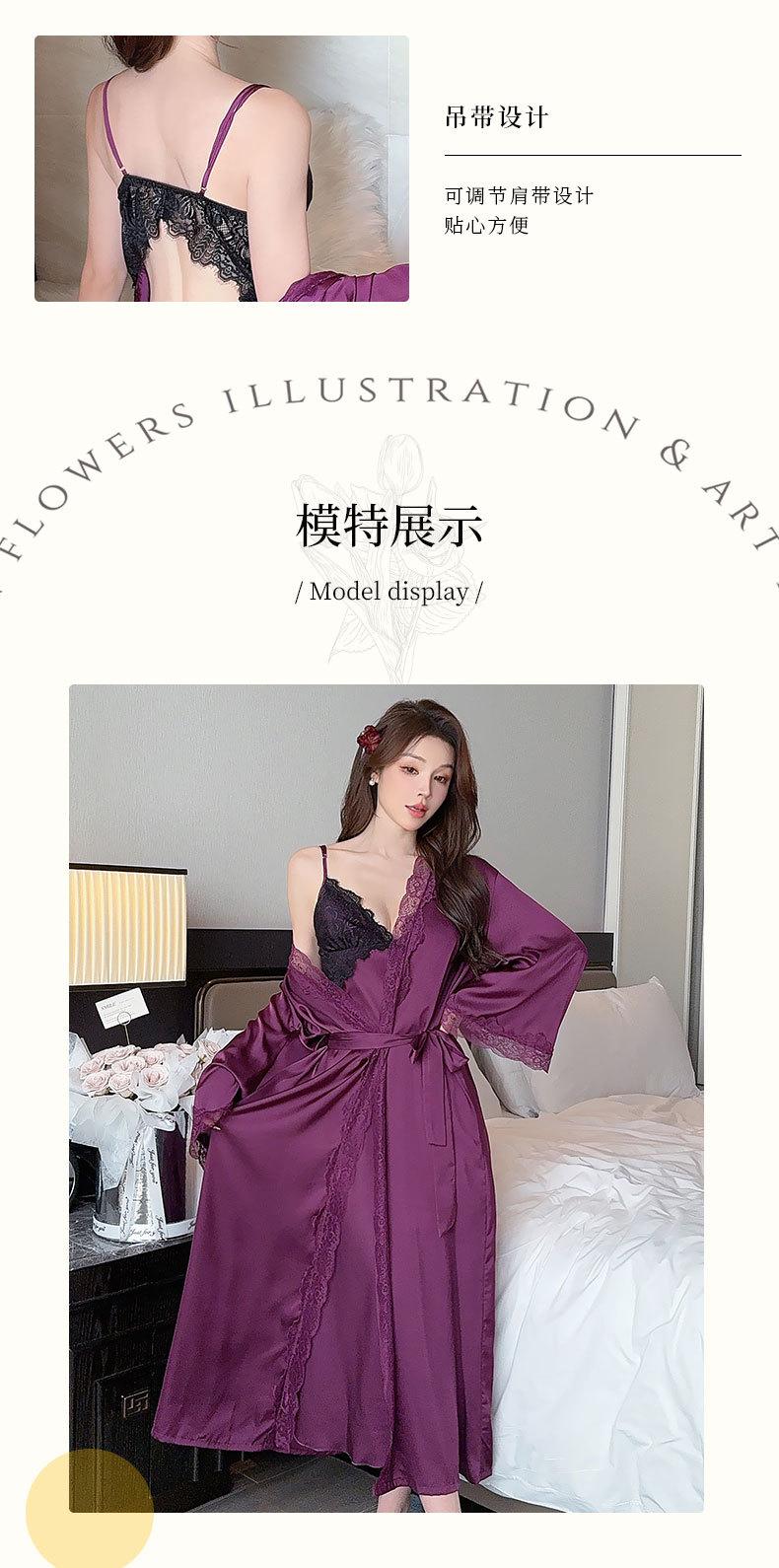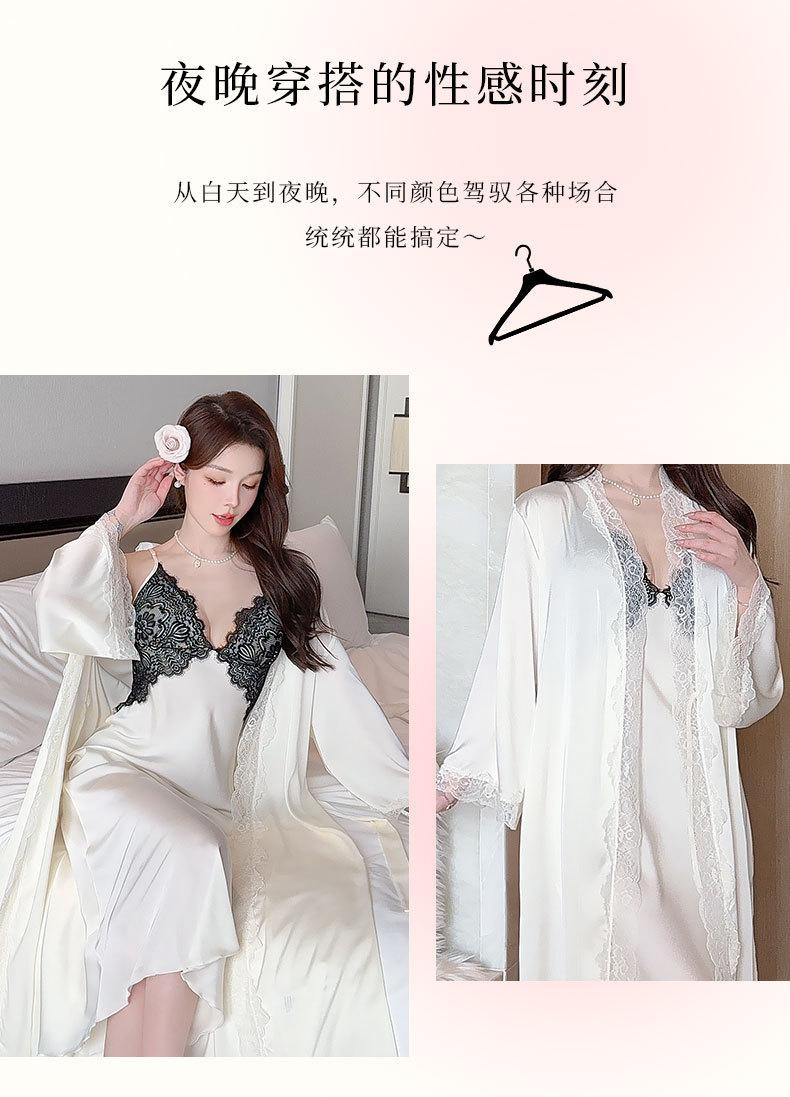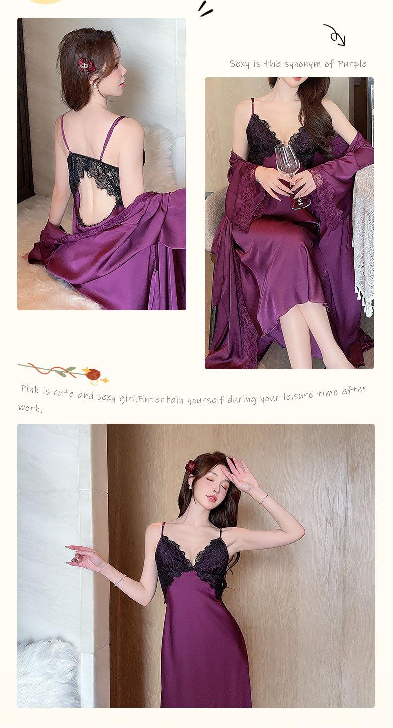 Camisón francés con copas para el busto, Seda de hielo, Alta gama, Sexy camisón de encaje con tirantes y espalda descubierta en V profunda, Estilo lujurioso puro falda larga