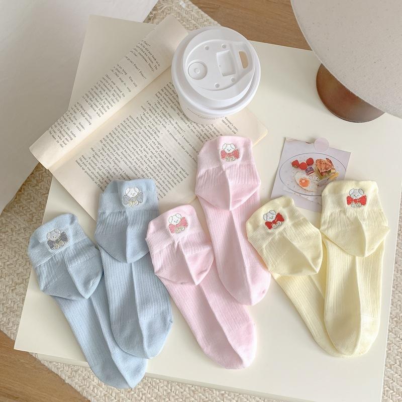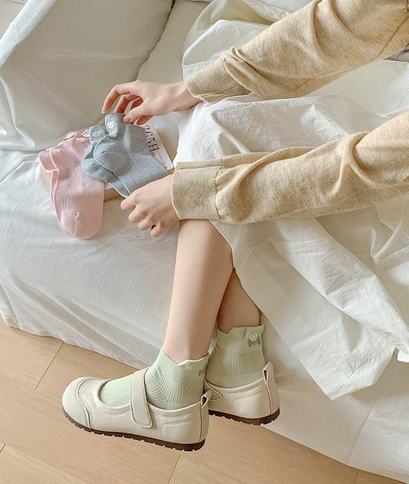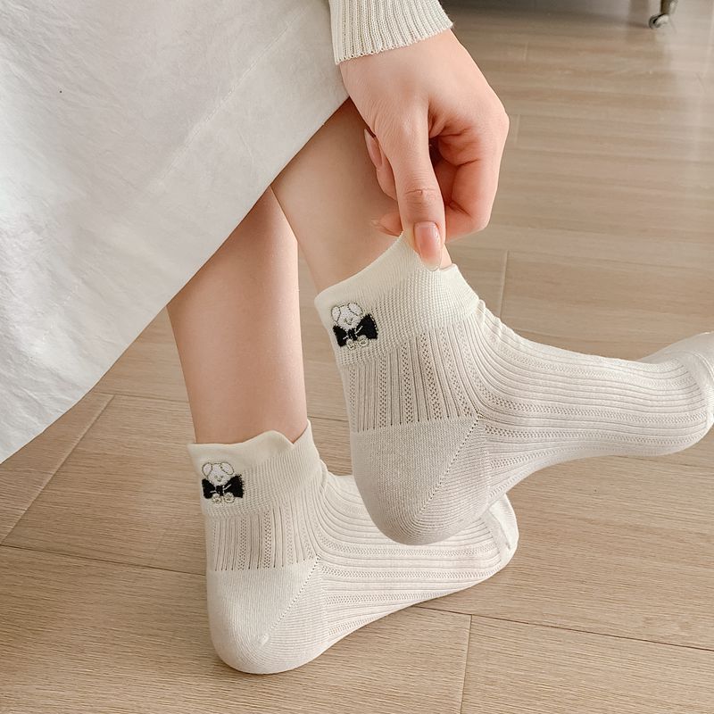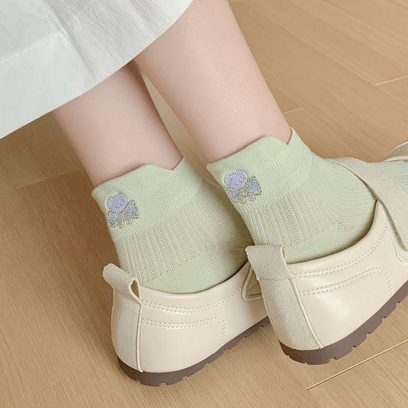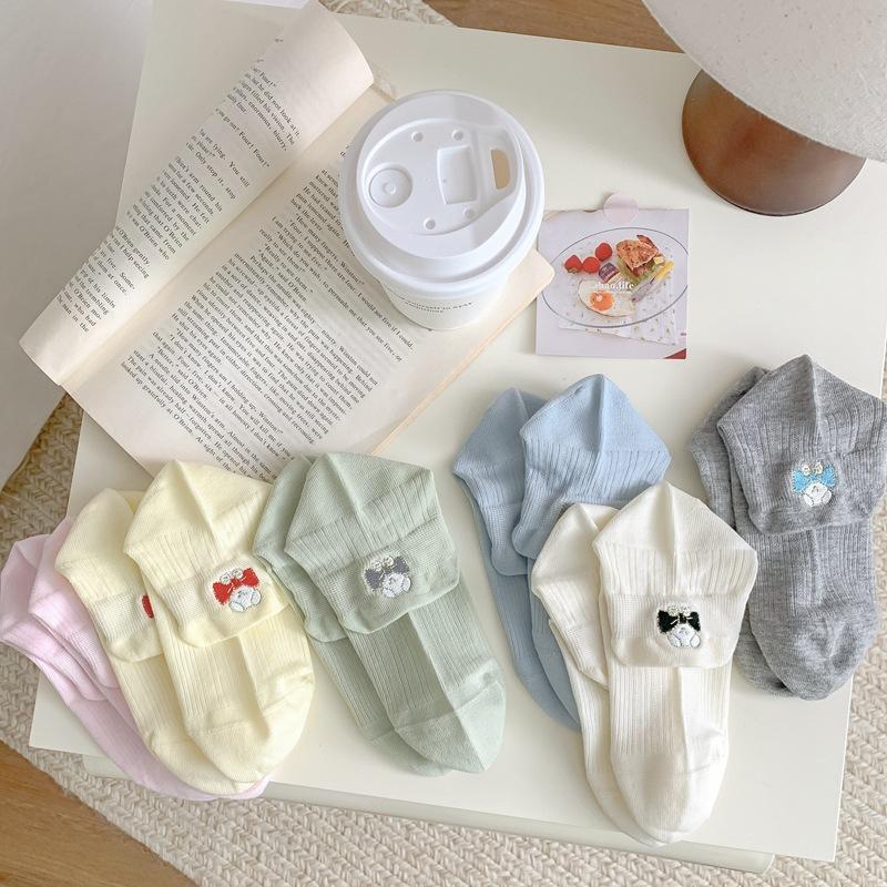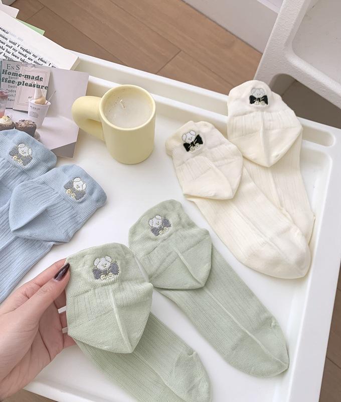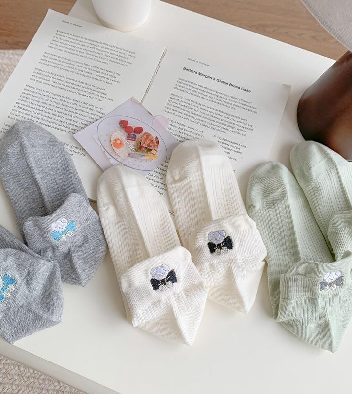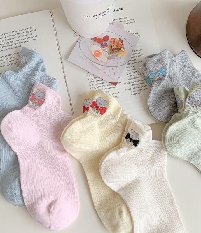 Calcetines mujer primavera y verano nuevos lazo bordado oso protección talón orejas tridimensionales calcetines cortos calcetines de barco de dibujos animados al por mayor