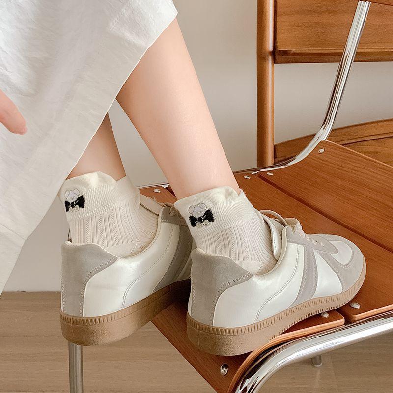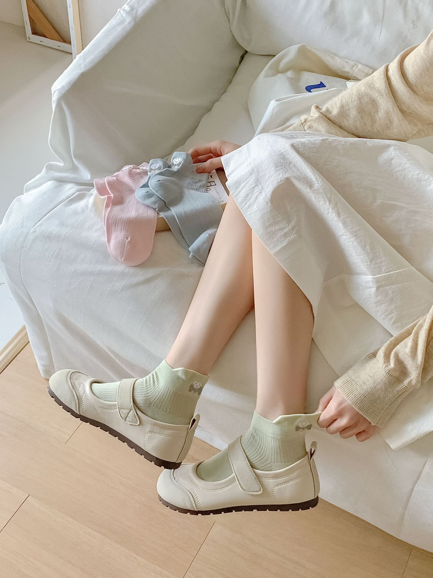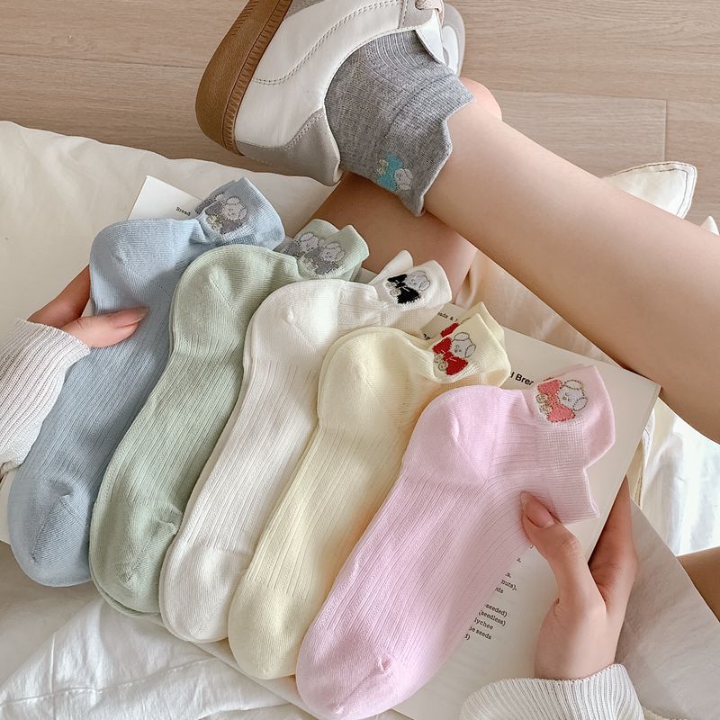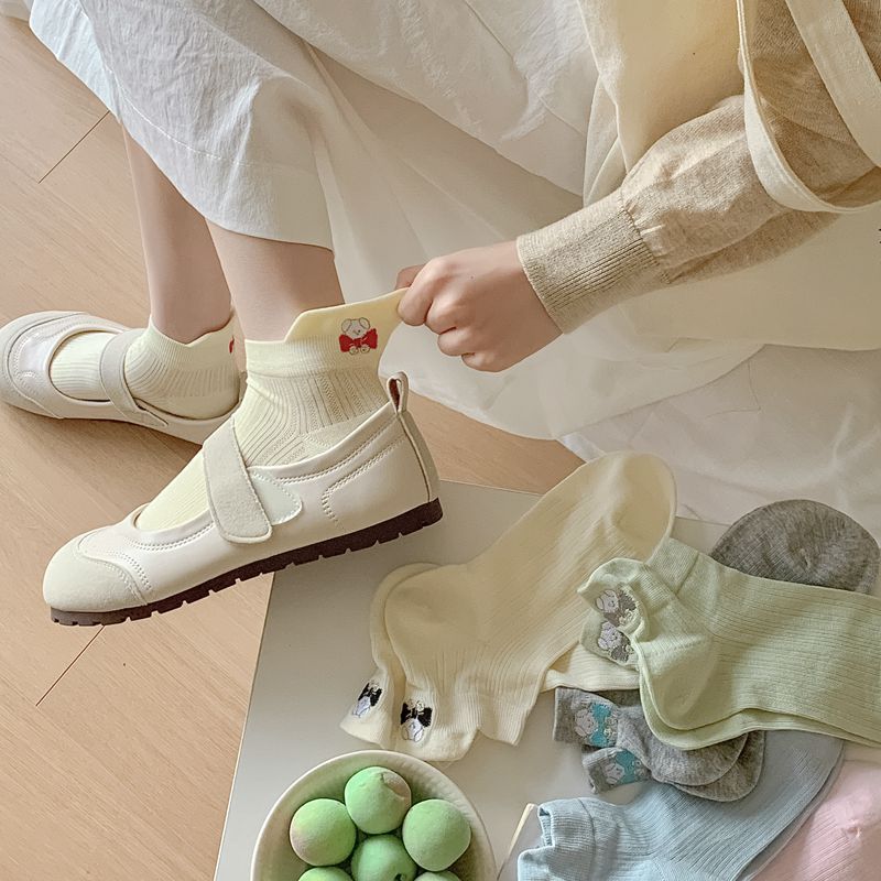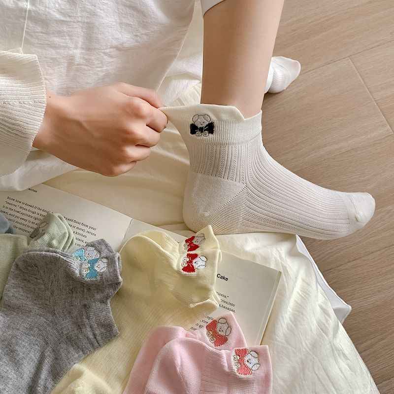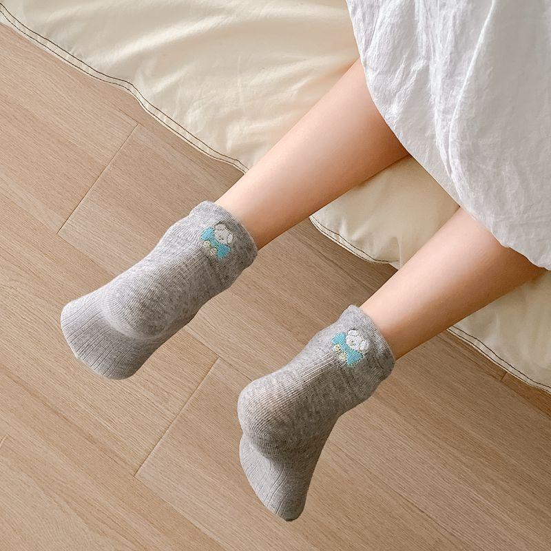 Calcetines mujer primavera y verano nuevos lazo bordado oso protección talón orejas tridimensionales calcetines cortos calcetines de barco de dibujos animados al por mayor
