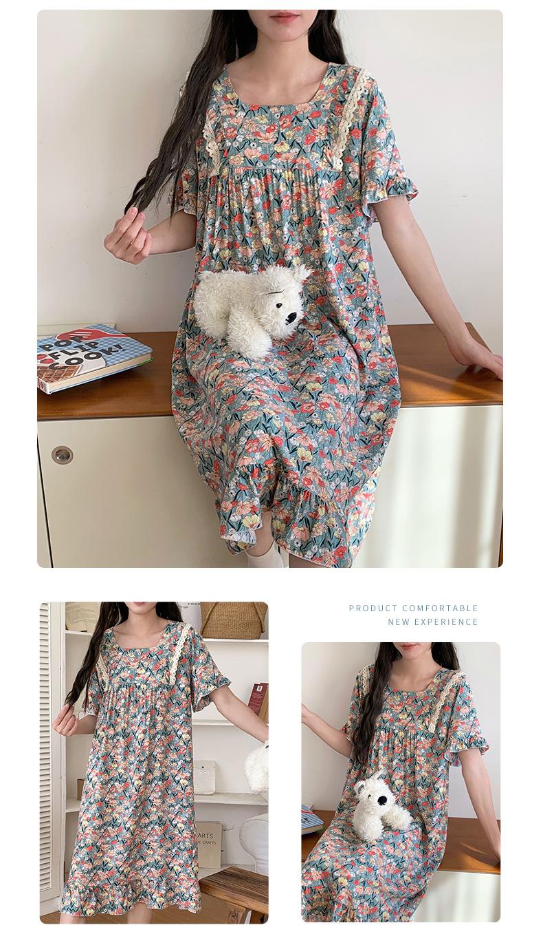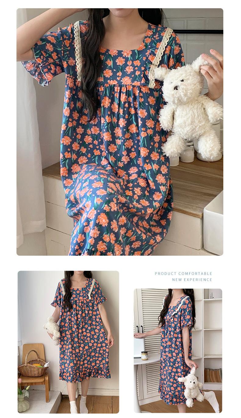 Camisón de seda floral estilo Summer Fresh famoso en Internet para mujer, verano, algodón artificial talla grande, vestido de alta gama para uso exterior