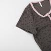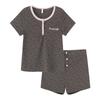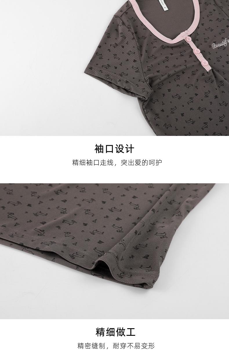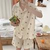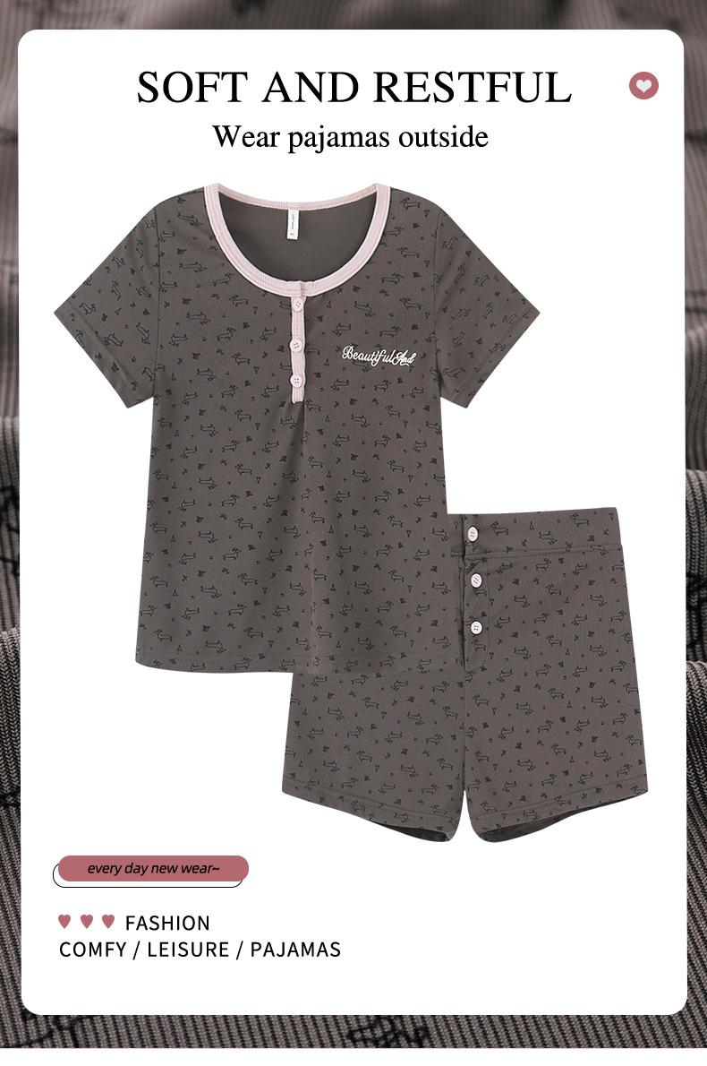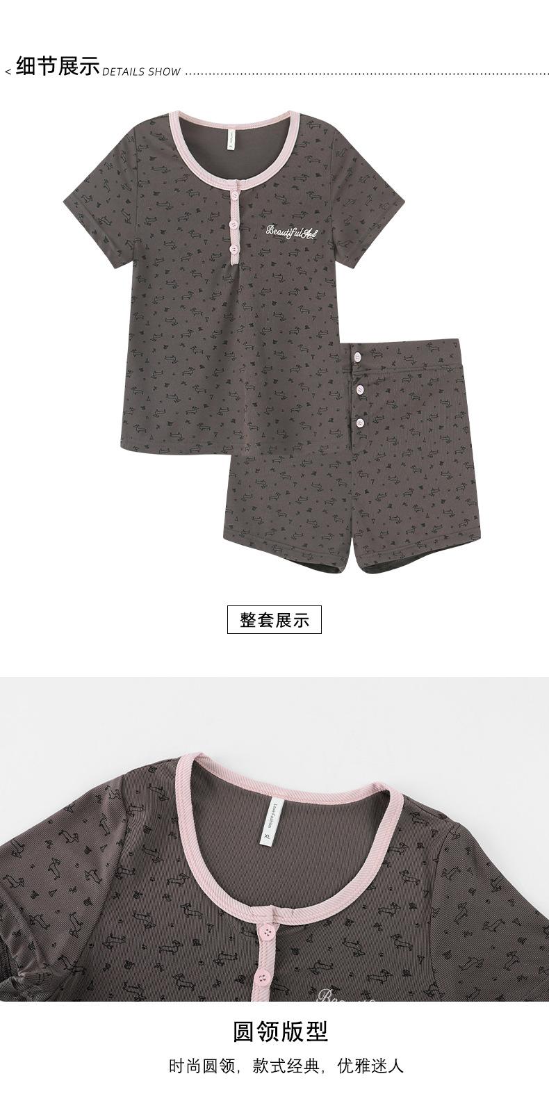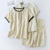 Pijama de mujer con cuello redondo y estampado floral de manga corta para primavera y verano. Pantalones cortos ajustados.
